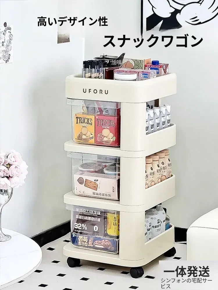 スタイリッシュなスナック収納カート!移動可能な多層引き出し付き、リビングルームの整理整頓に最適な家用ラック。おしゃれで機能的、あなたの生活空間を美しく演出します!