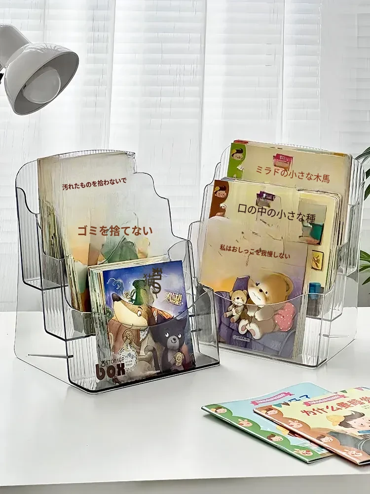 おしゃれで機能的な絵本収納ボックス!デスクトップにぴったりなアクリル透明ブックスタンド。子供の本や読み物を整理整頓!寝室やベッドサイドにも最適なアイテムです。