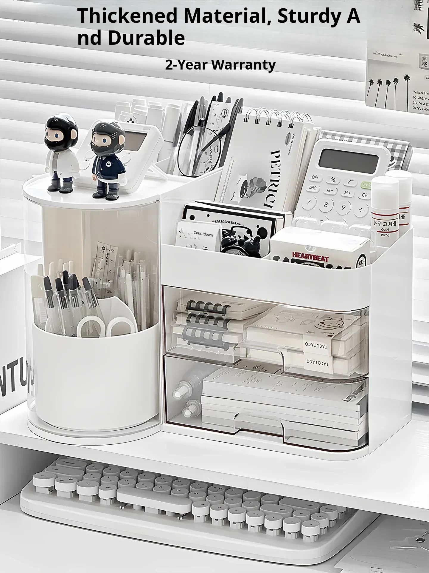 Large Capacity Desktop Organizer with Drawer - Office Desk Storage Box for Pens, Stationery, and Miscellaneous Items - Perfect for Keeping Your Workspace Tidy and Efficient!
