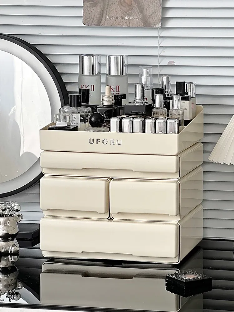 Premium Desktop Makeup Organizer - Large Capacity Drawer Storage for Skincare Products, Elegant Vanity Storage Box