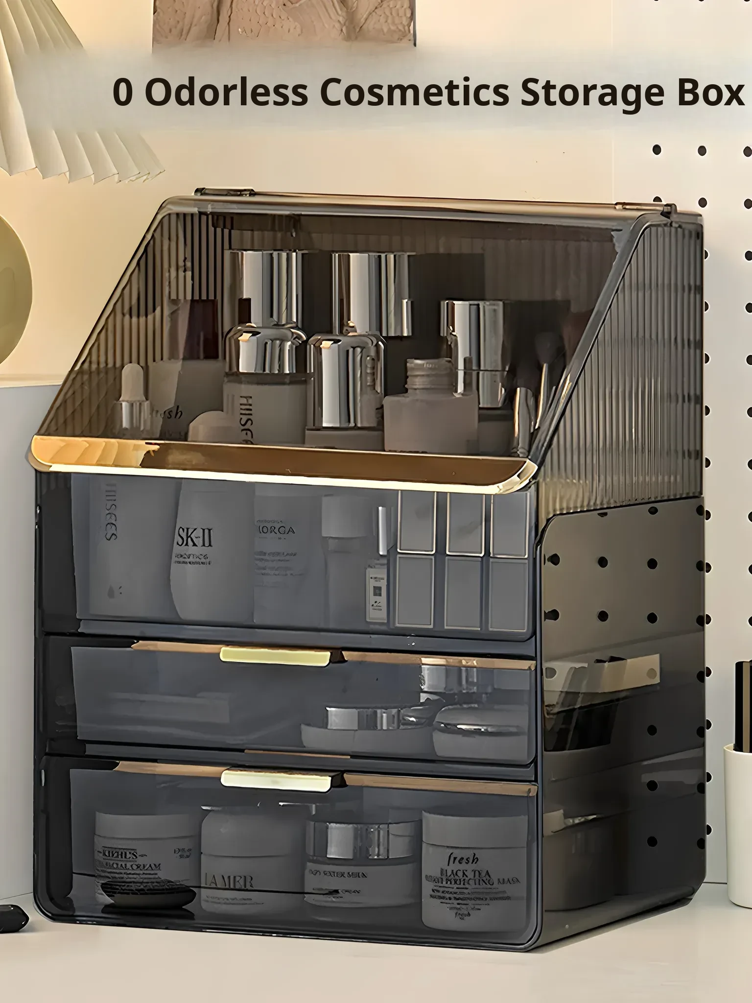 Luxury Cosmetic Storage Box - Elegant Makeup Organizer for Vanity, Dust-Proof Acrylic Display Stand for Skincare Products, Lipsticks, and Perfumes. Perfect for Keeping Your Beauty Essentials Stylishly Organized!