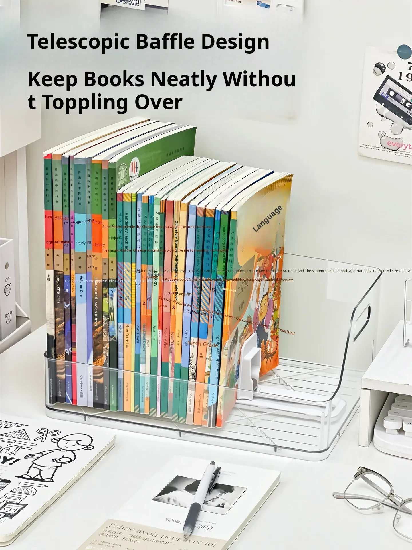 Desktop Book Organizer with Adjustable Dividers - Perfect for Students to Keep Textbooks in Place and Tidy Up Your Study Space, Multi-Functional Storage for Stationery and Supplies