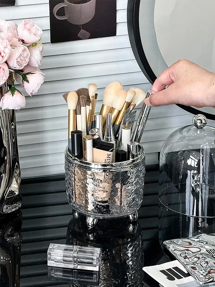 Rotating Transparent Makeup Brush Organizer - Dustproof Cosmetic Storage Box for Lipsticks and Eyeshadows - Stylish Vanity Display Stand