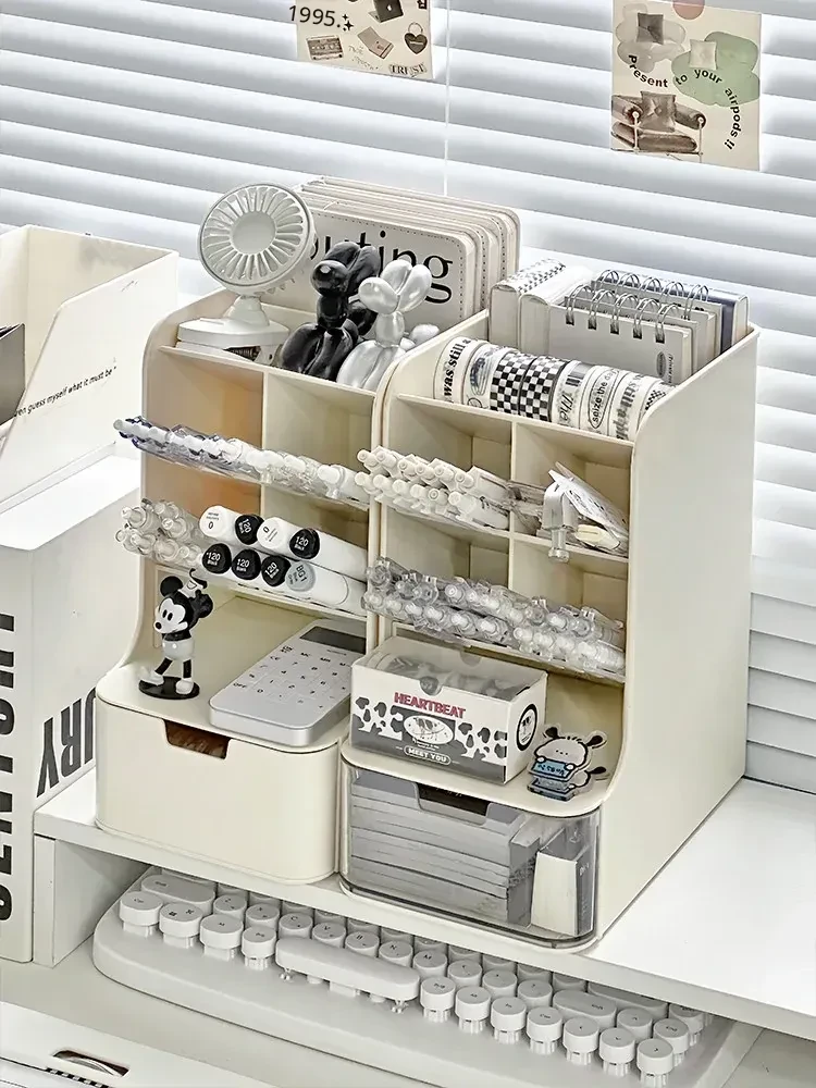 Large Capacity Desktop Organizer with Drawer - Stylish Pencil Holder and Storage Rack for Office Desk, Perfect for Keeping Your Workspace Tidy and Efficient!