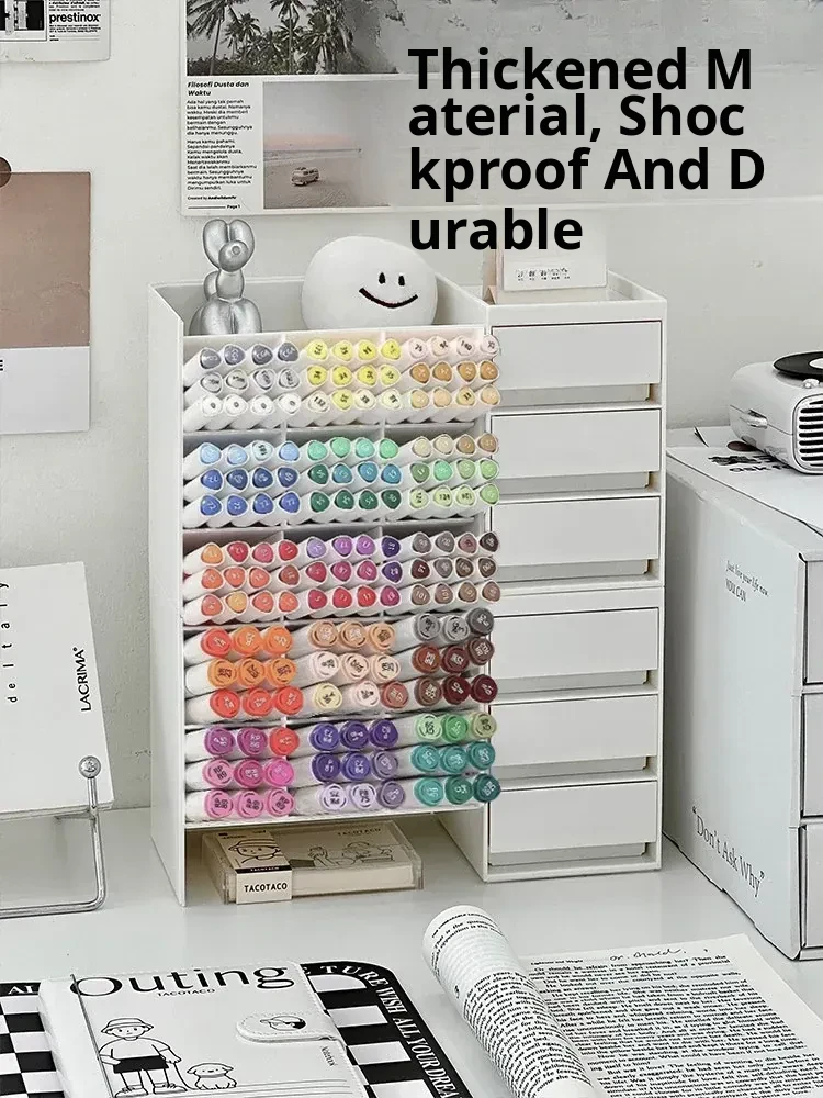 Creative Desk Organizer for Markers - Slanted Pencil Holder with Drawer Storage, Perfect for Office and Students, Stylish Stationery Stand