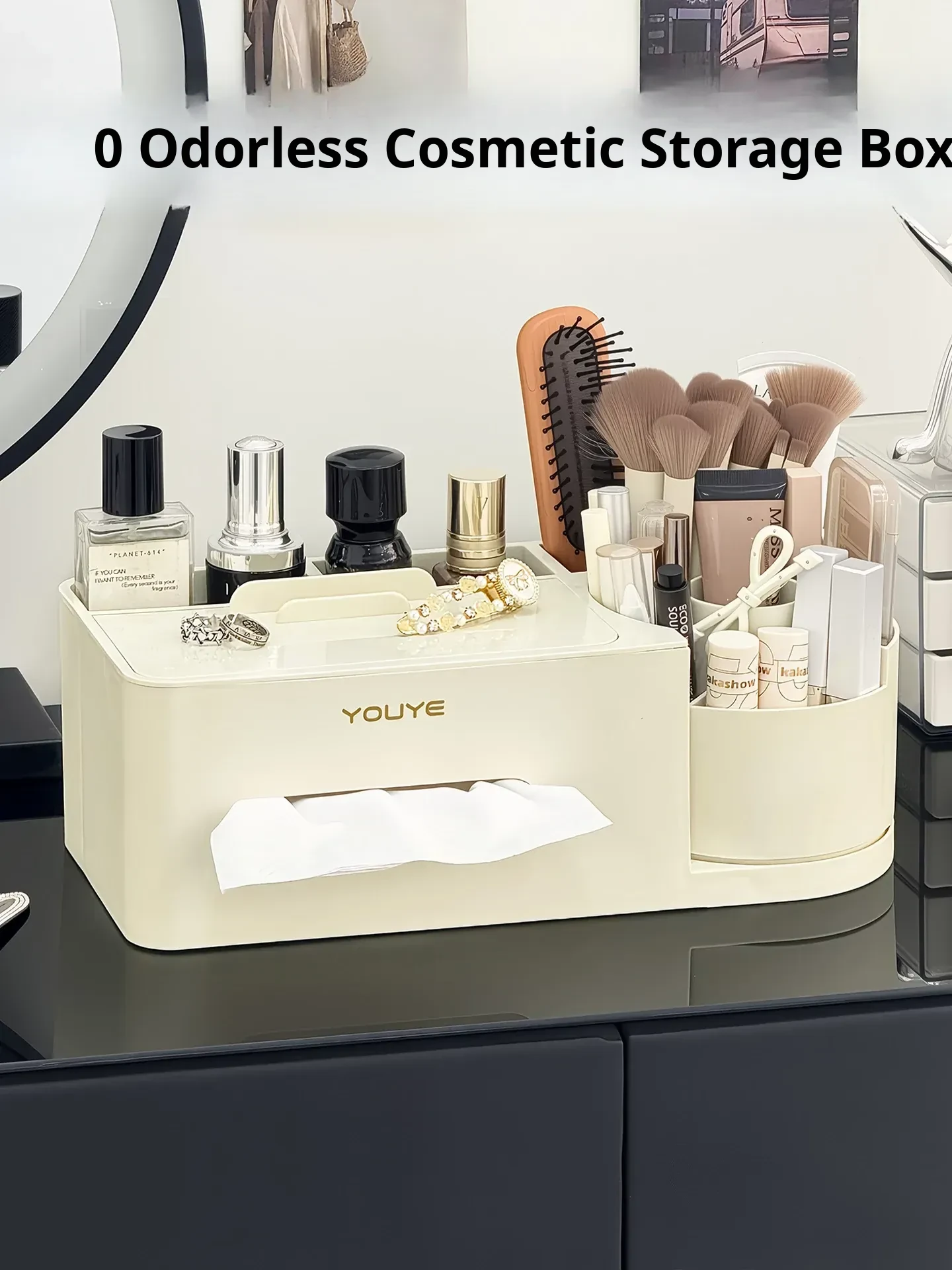 Elegant Makeup Organizer Box - Stylish Desktop Storage for Skincare Products, Dustproof Lipstick and Perfume Organizer, Perfect for Your Vanity Table.
