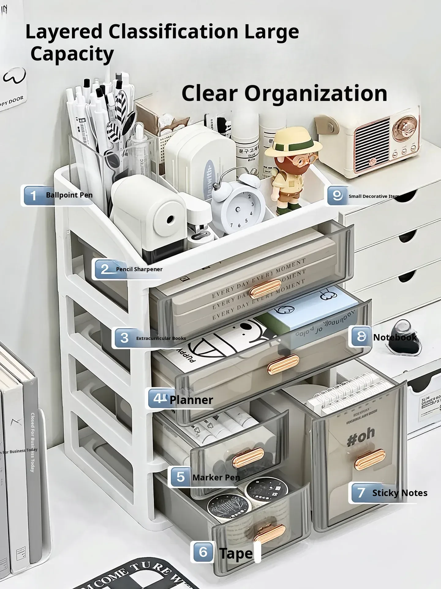 Desktop Drawer Organizer for Students - Multi-Compartment Storage Box for Stationery, Books, and Office Supplies - Perfect for Keeping Your Desk Tidy and Clutter-Free!
