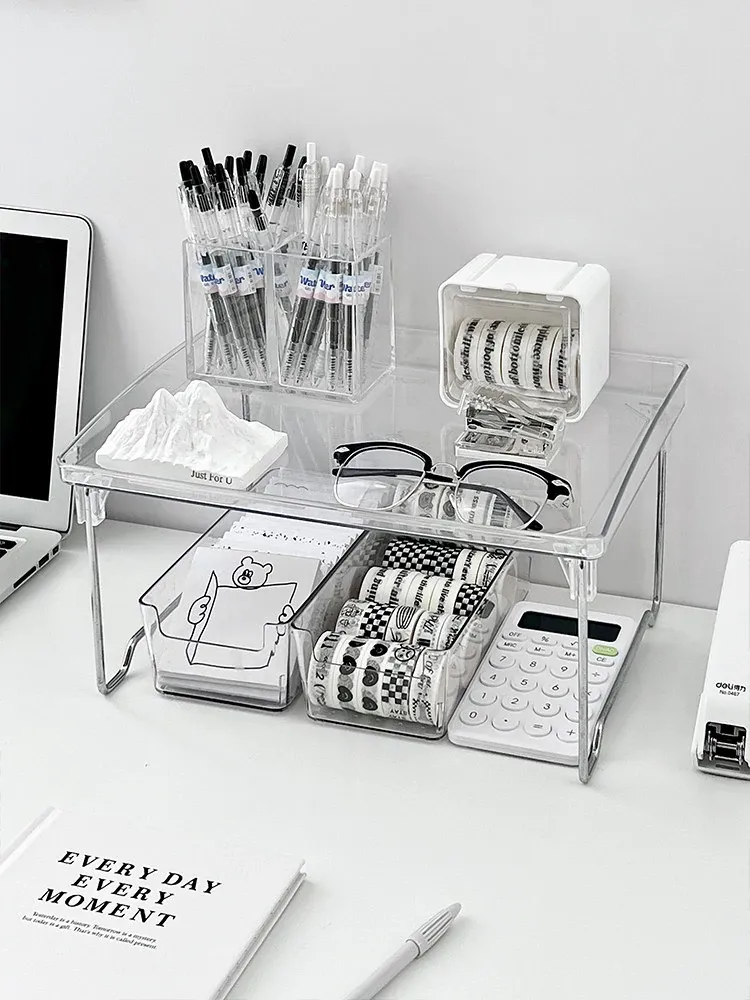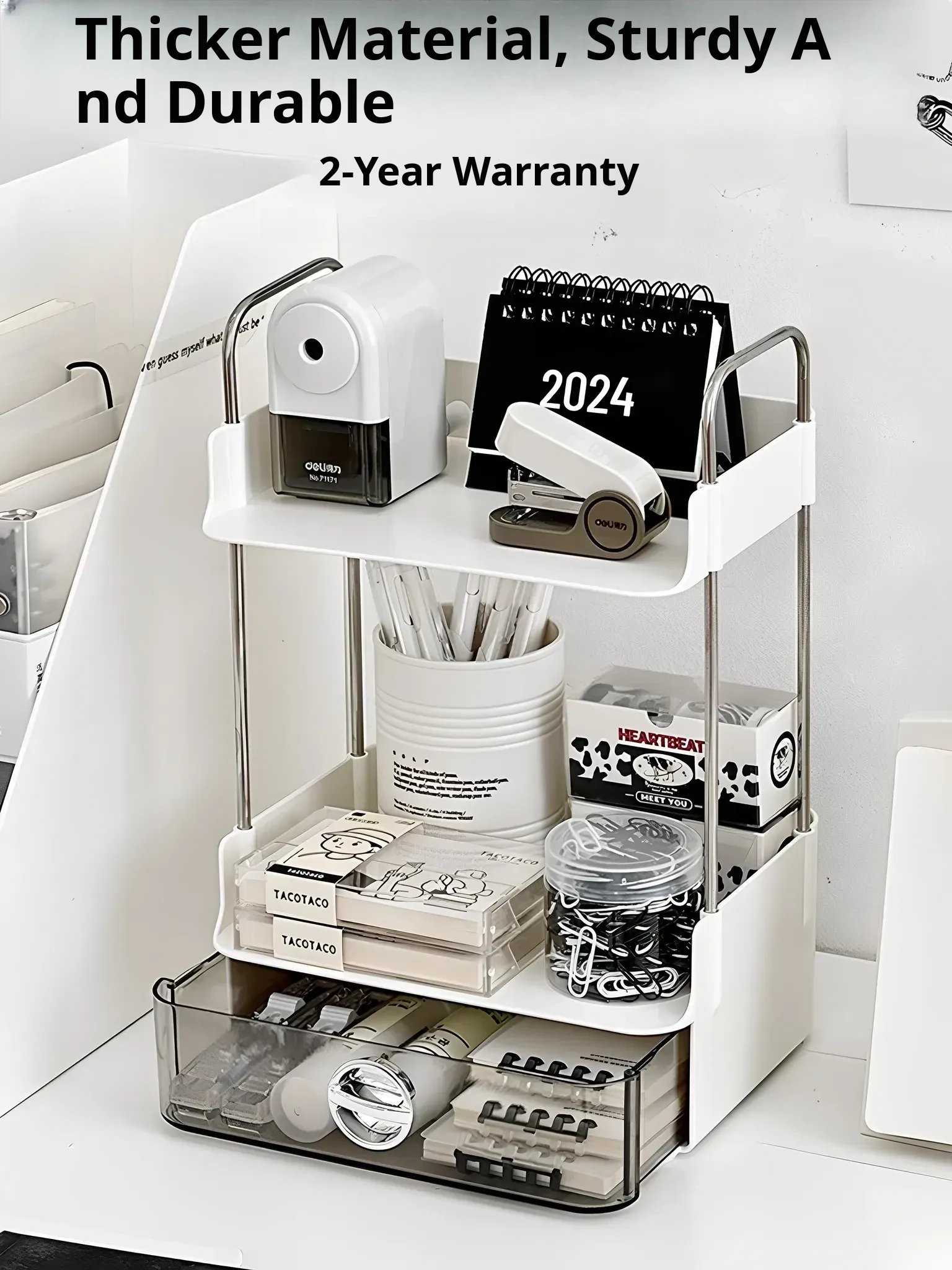 Multi-Layer Desk Organizer for Students - Versatile Storage Rack for Office Supplies and Miscellaneous Items, Perfect for Dorm Rooms and Desks, Includes Convenient Drawer Storage Box