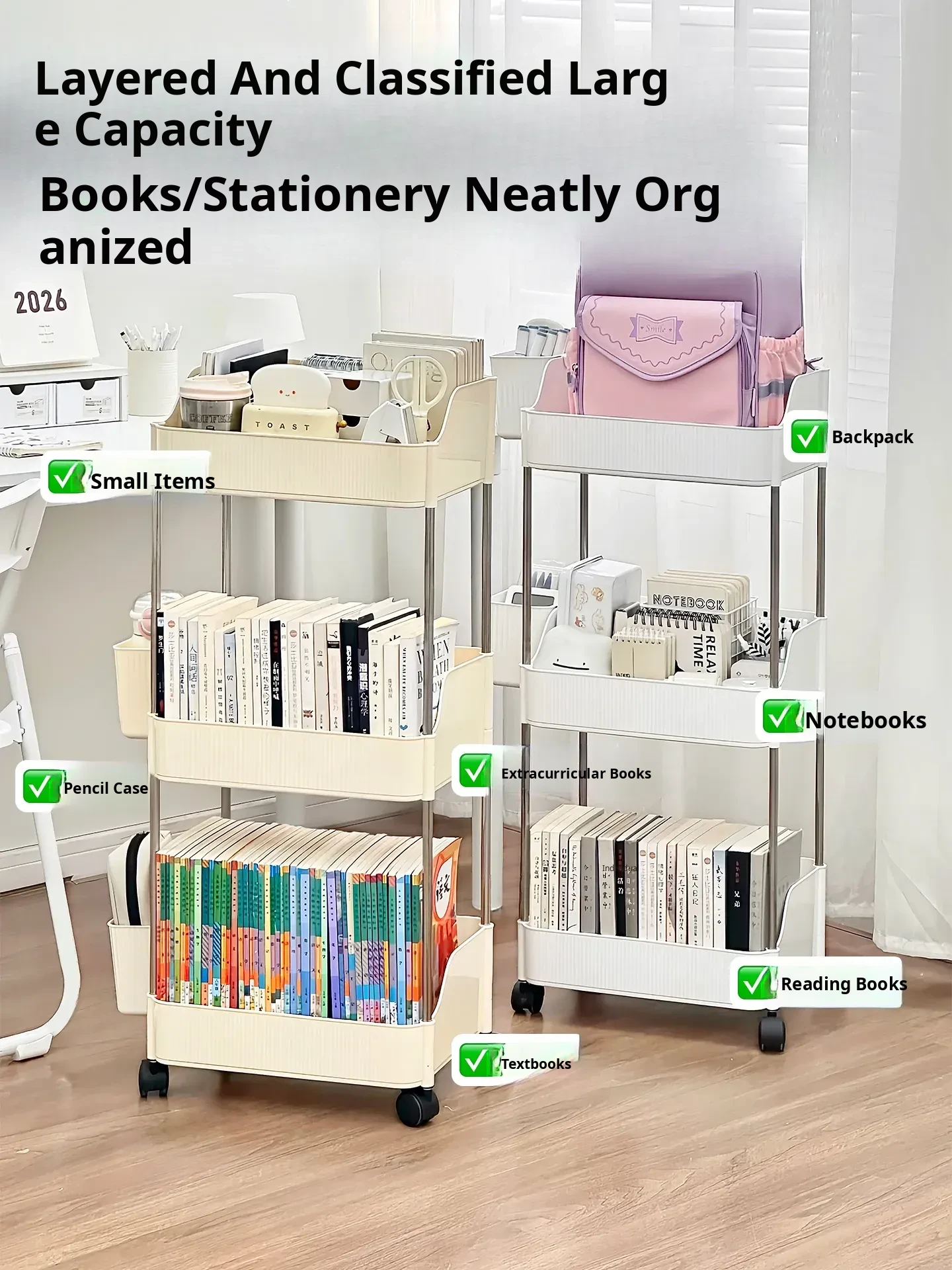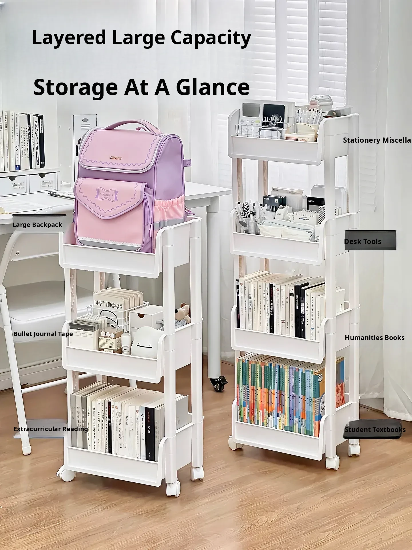 Multi-Layer Bookshelf and Stationery Organizer - Stylish Rolling Storage Cart for Dorms, Perfect for Students to Organize Books, Toys, and More!