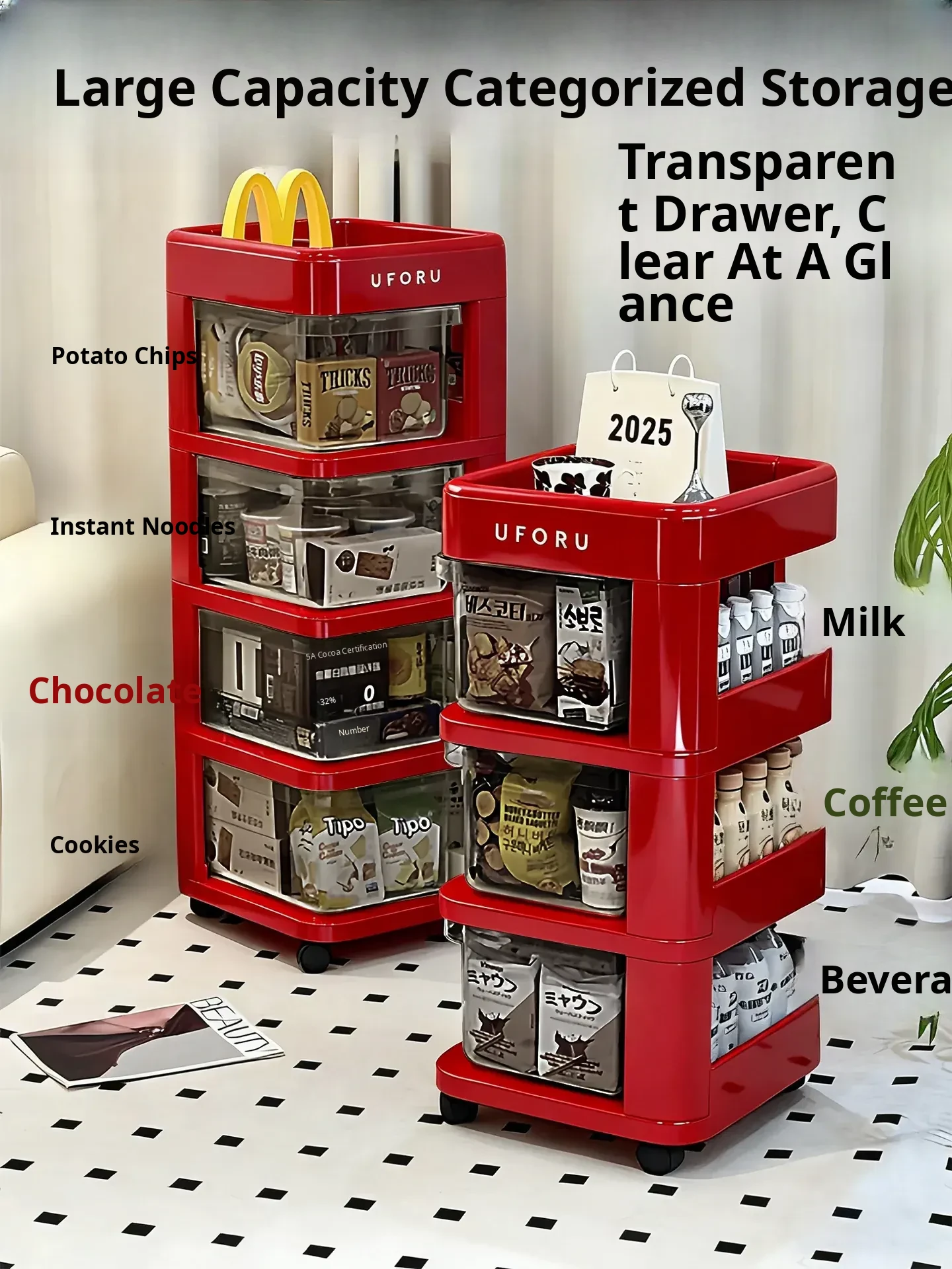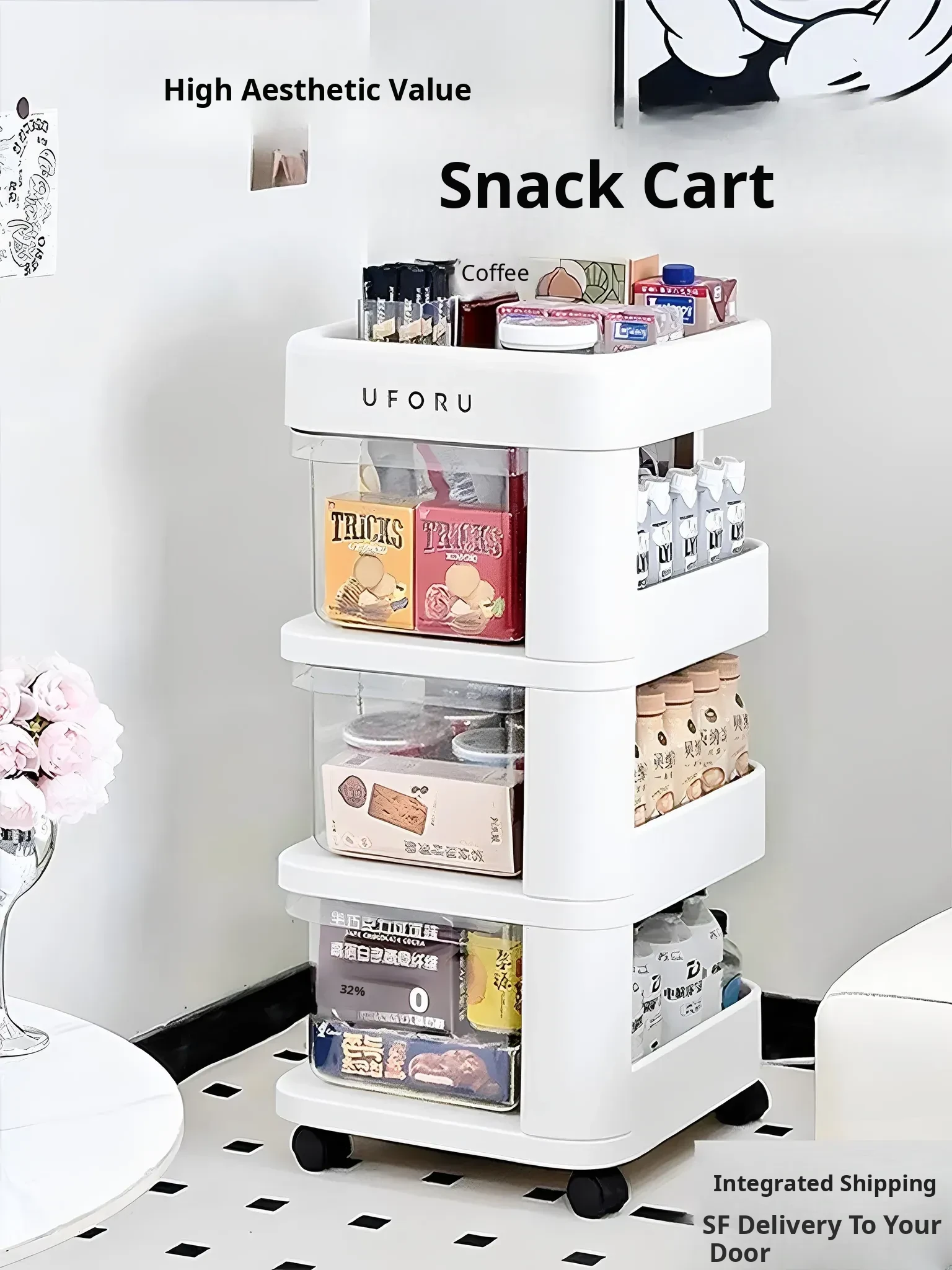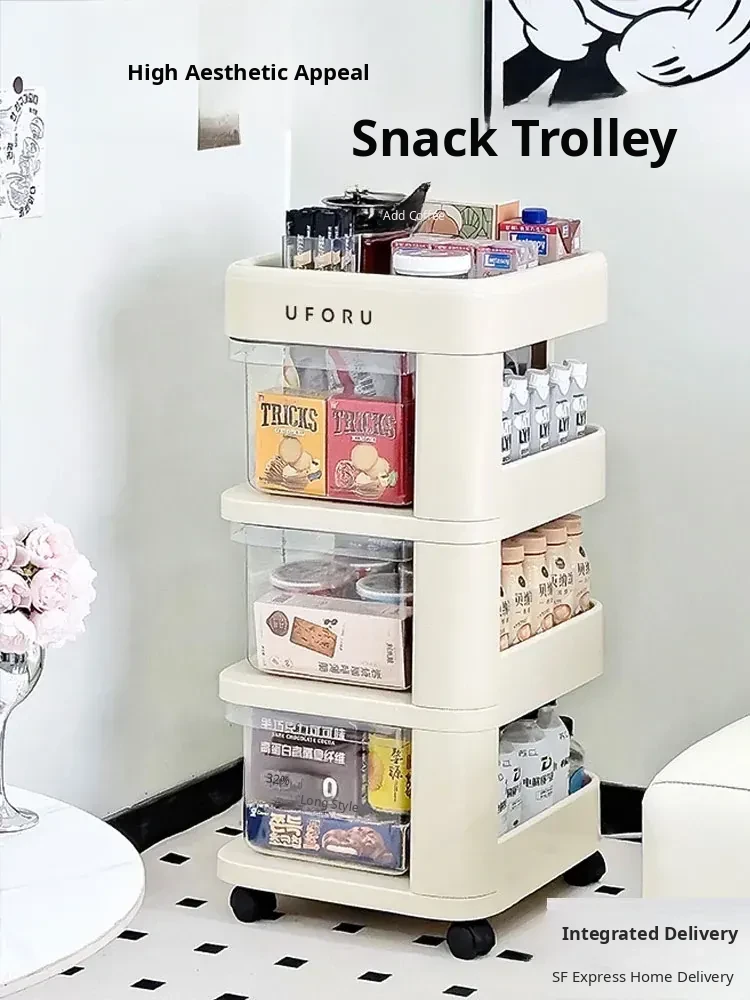 Stylish Snack Storage Cart - Multi-Layer Mobile Shelving Unit with Drawers for Home Organization, Perfect for Living Room Clutter Management!