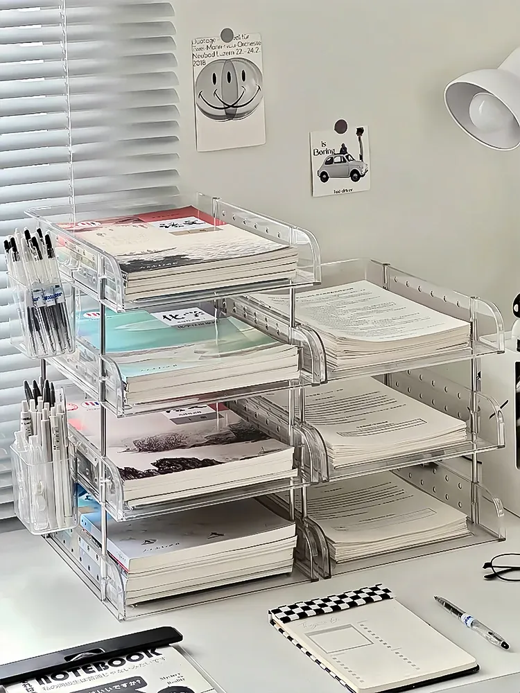 Foldable Acrylic Desktop Organizer - Ideal for Dorms & Offices, Perfect for Storing Books, Files, and Snacks. Maximize Your Space with Style!
