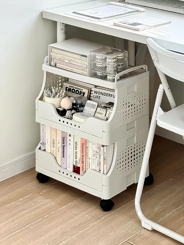 Multi-Tiered Rolling Storage Cart for Students - Under Desk Book and Stationery Organizer, Perfect for Home Use, Ideal for Keeping Your Study Space Tidy and Efficient!