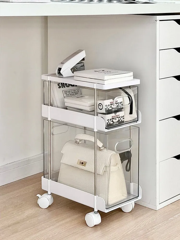 "Multilayer Rolling Storage Cart - Office Under-Desk Organizer for Bags and Essentials, Portable and Space-Saving Solution for Efficient Workspace Organization"