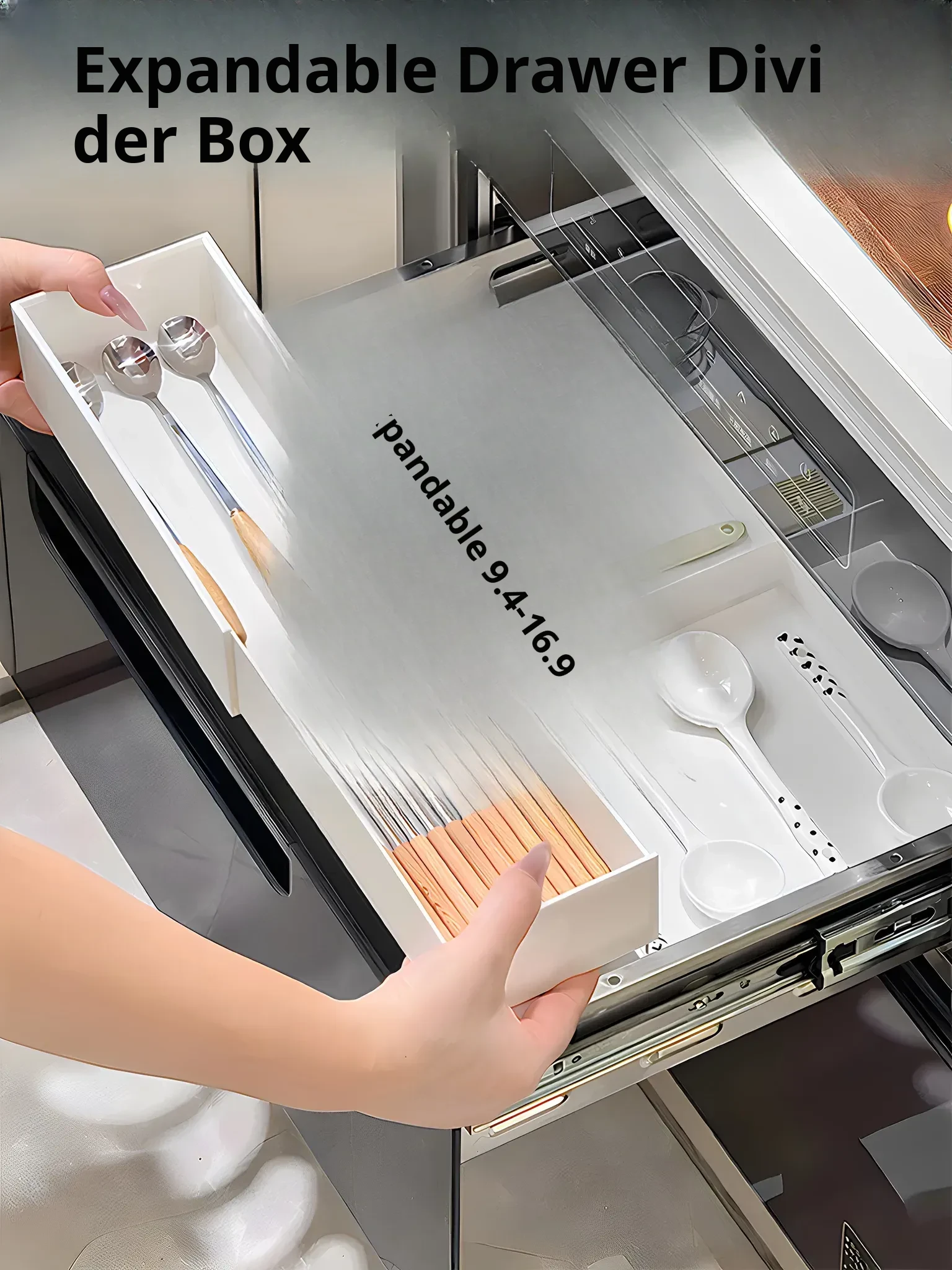 Expandable Kitchen Drawer Organizer - Cutlery, Chopsticks, Spoons, Knives, Forks & Makeup Storage Box with Dividers for Efficient Organization