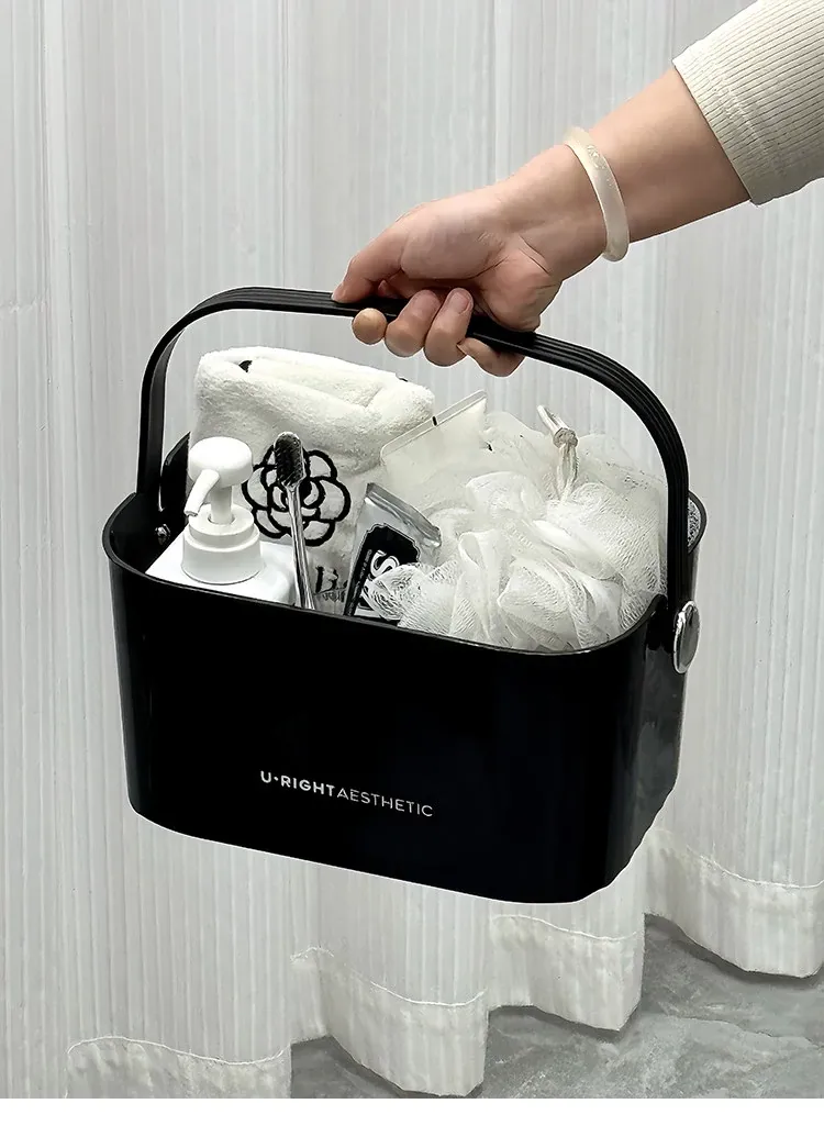 2025 New Plastic Shower Caddy with Lid - Portable Bathroom Storage Basket for Toiletries, Perfect for Women, Draining Design for Easy Use