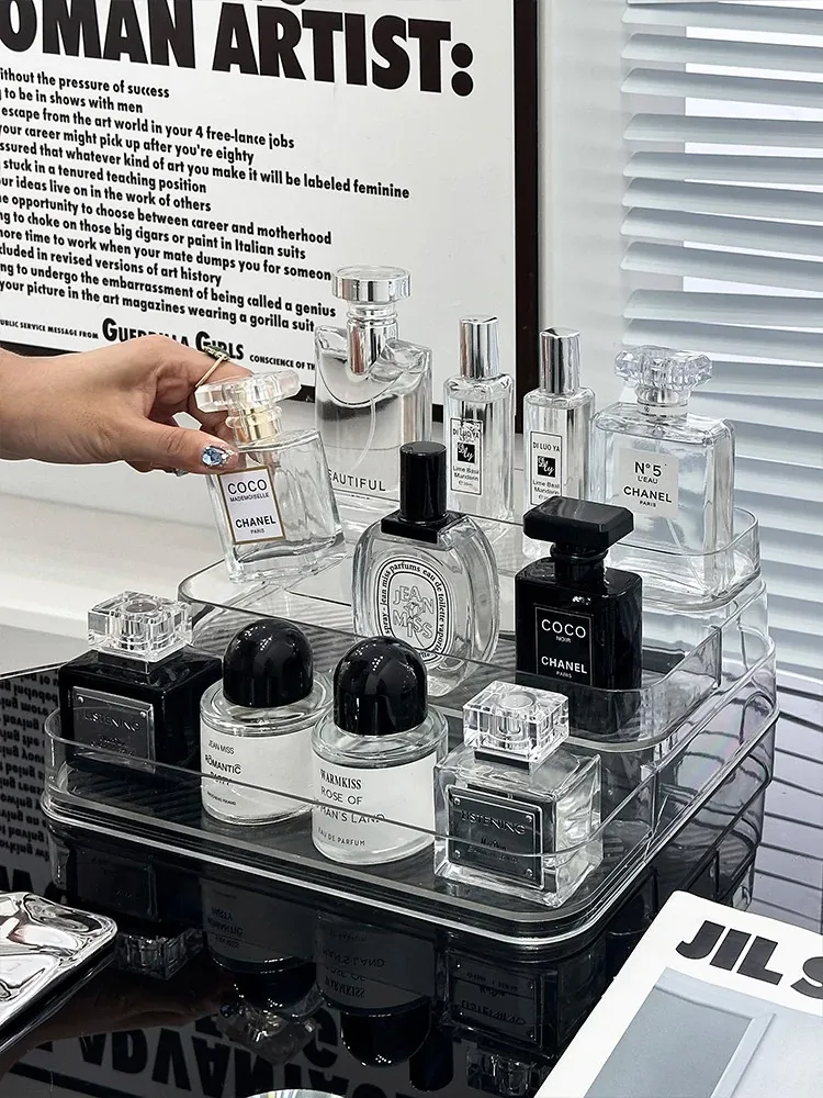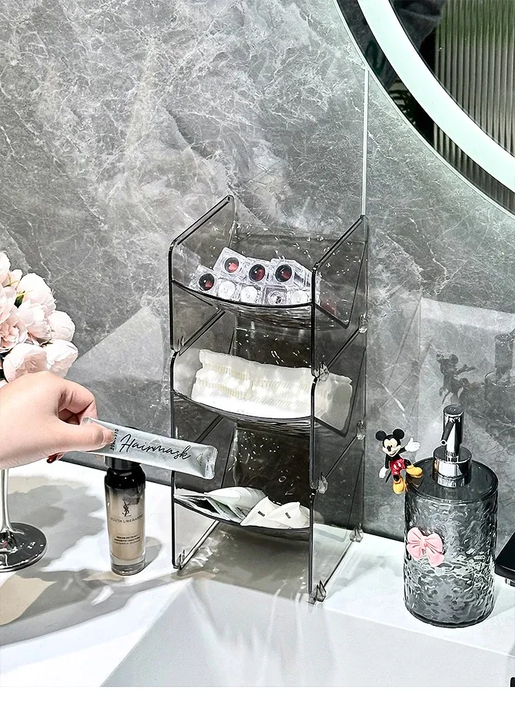 Elegant Acrylic Makeup Organizer for Bathroom - Multi-Layer Skincare & Lipstick Storage Box, Perfect for Desktop Display and Clutter-Free Living