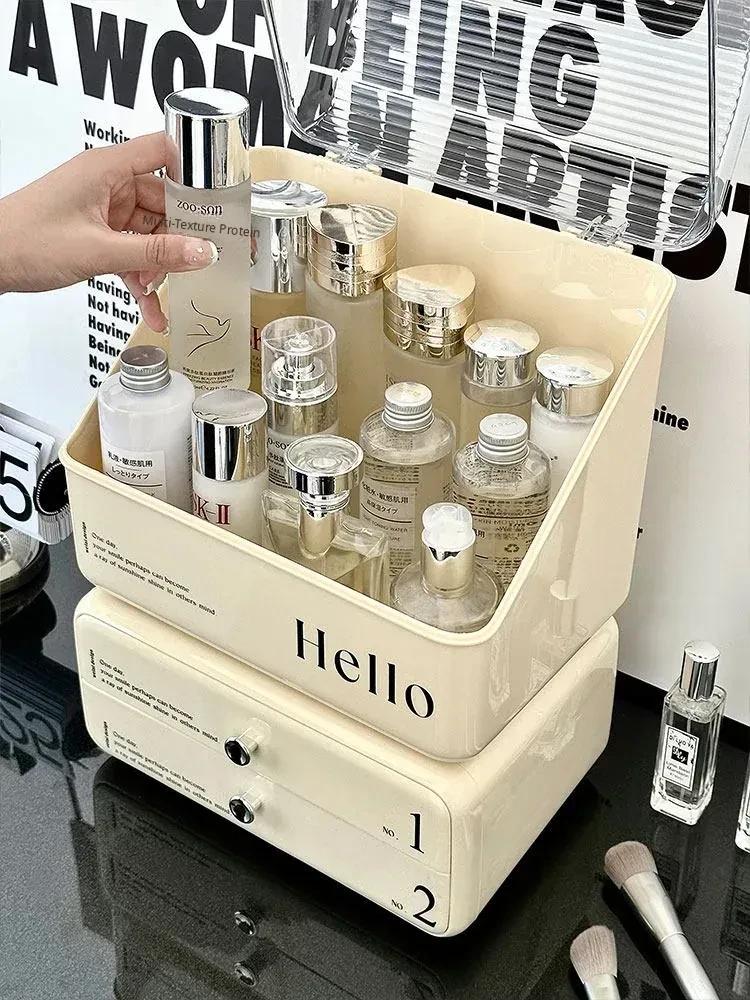 Elegant Acrylic Makeup Organizer with Dustproof Lid - Stylish Storage Box for Cosmetics, Skincare Products, and Perfumes - Perfect for Your Vanity Table