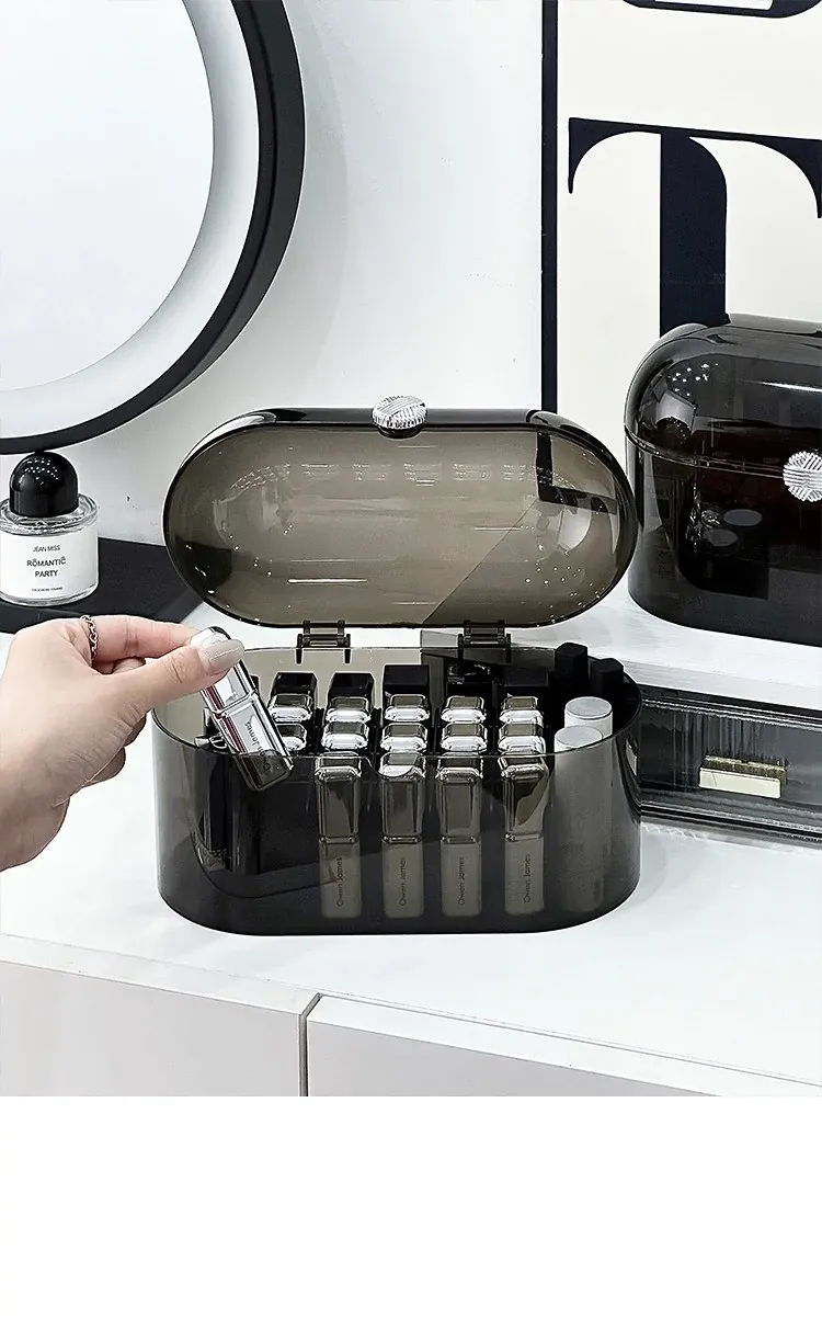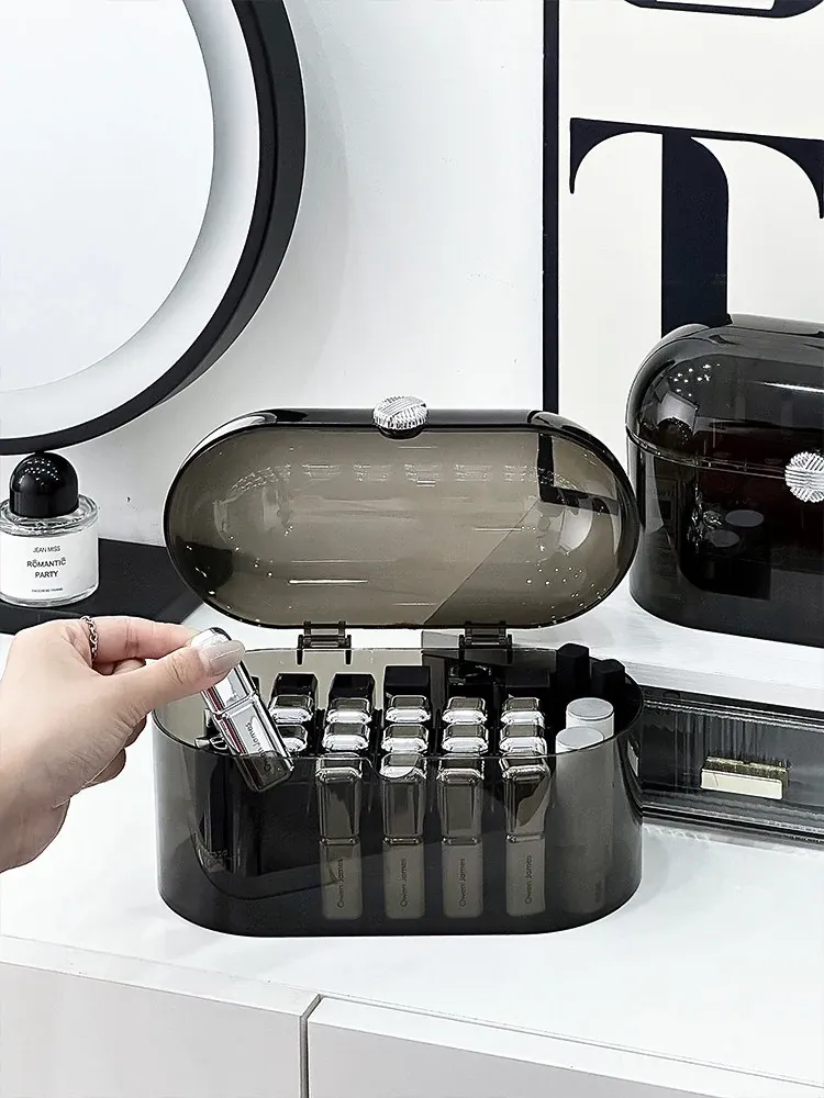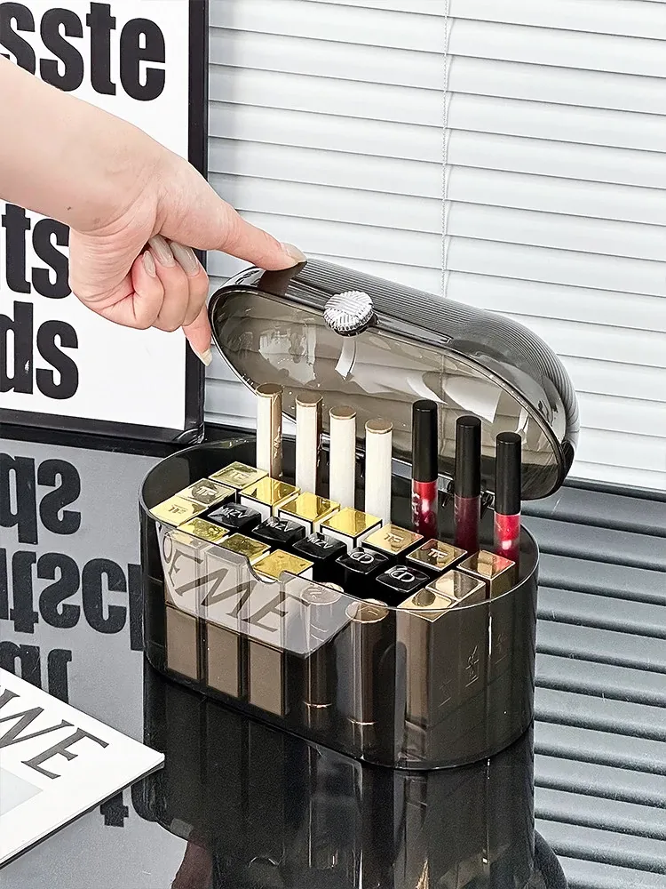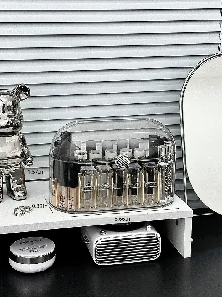 Elegant Dust-Proof Lipstick Organizer Box - Versatile Makeup and Perfume Storage with Dividers for Desktop Vanity, Perfect for Lip Gloss and Cosmetics Organization