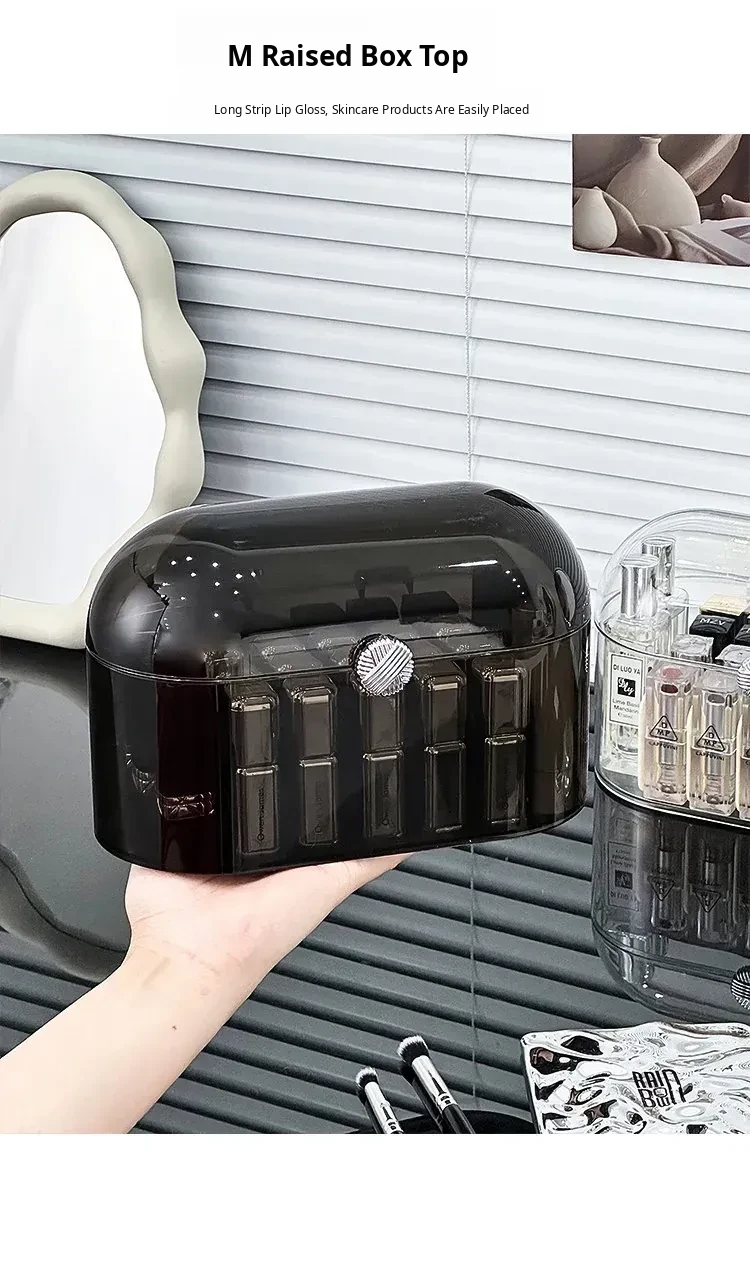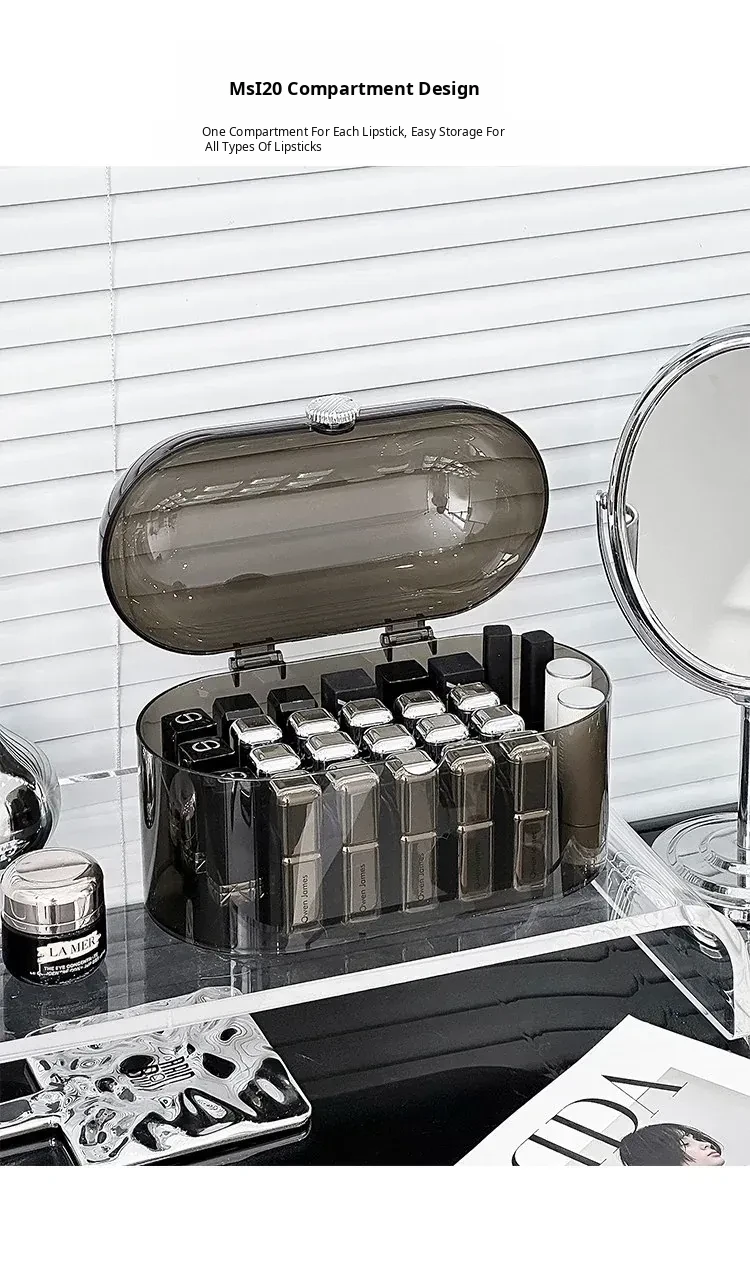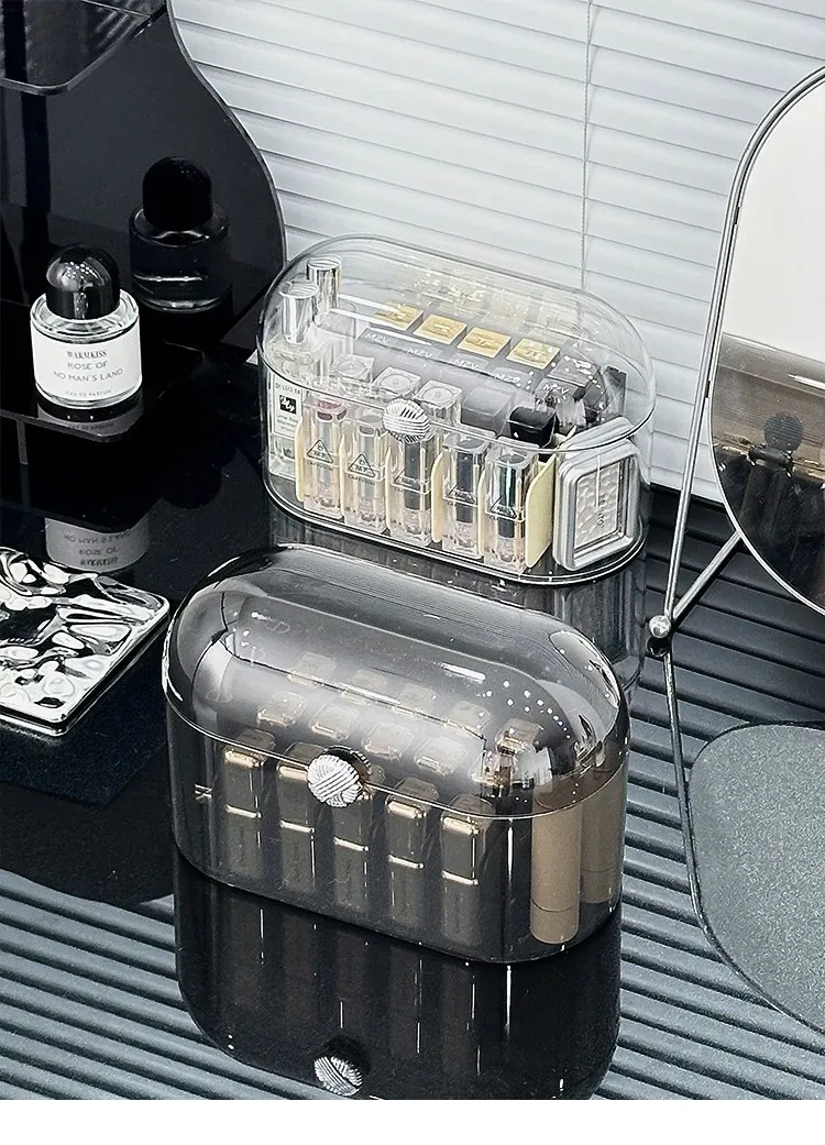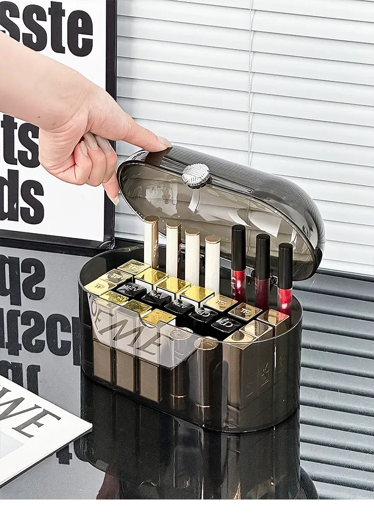 Elegant Dust-Proof Lipstick Organizer Box - Versatile Makeup and Perfume Storage with Dividers for Desktop Vanity, Perfect for Lip Gloss and Cosmetics Organization