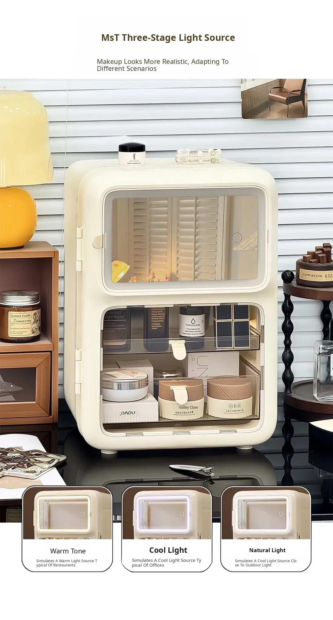 [Makeup Case with Mirror] 3 Types of Lights✅Dustproof and Large Capacity