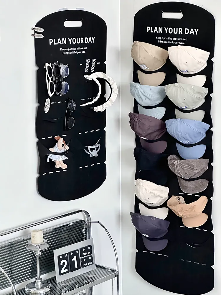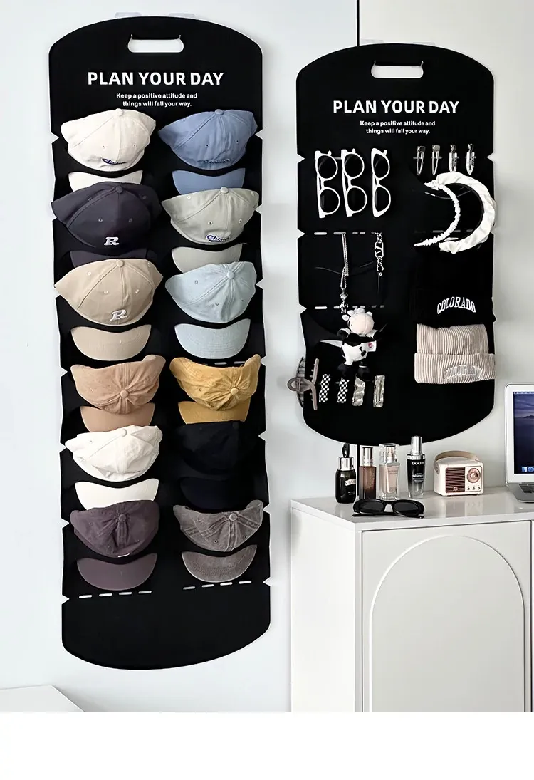Hat Organizer for Closet Doors - No Drill, Perfect for Dorms! Store Your Baseball Caps and Duckbill Hats with This Felt Wall-Mounted Rack. Stylish and Space-Saving Solution for a Clutter-Free Home!