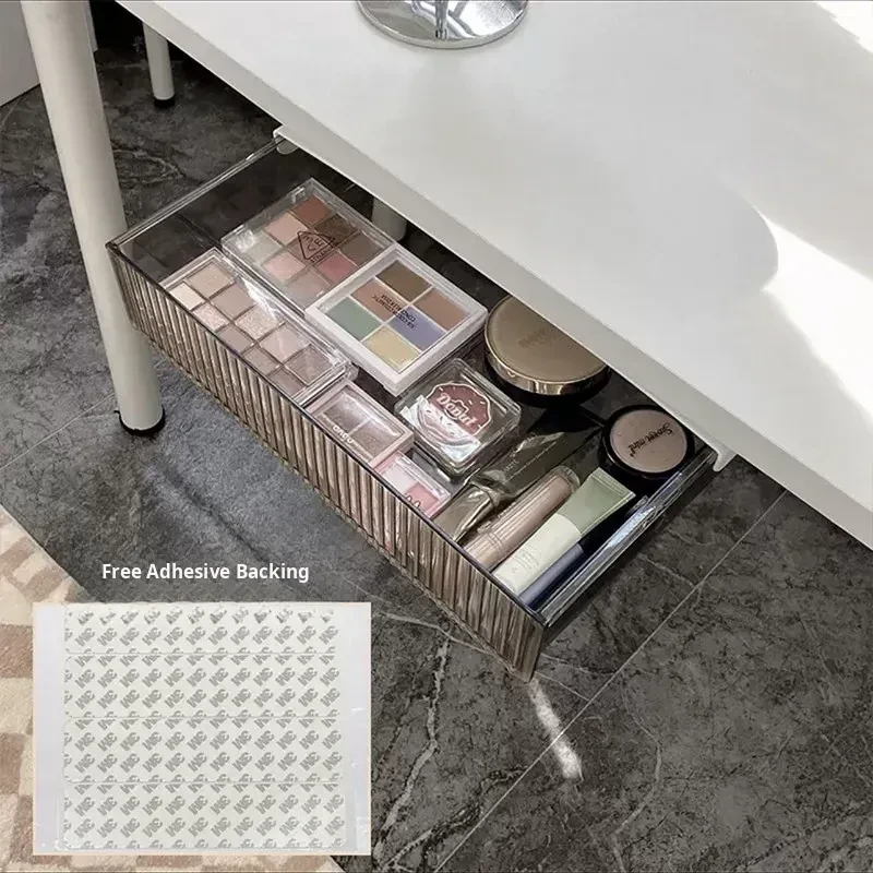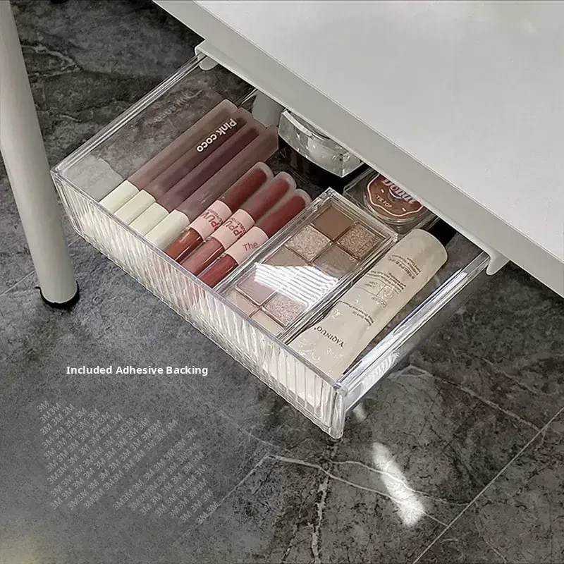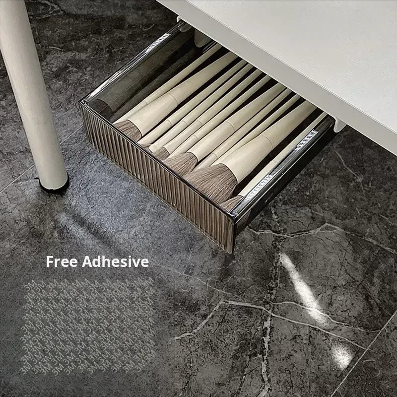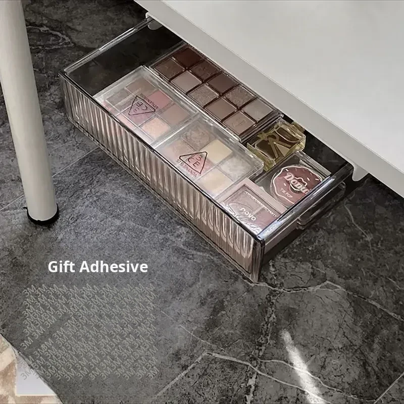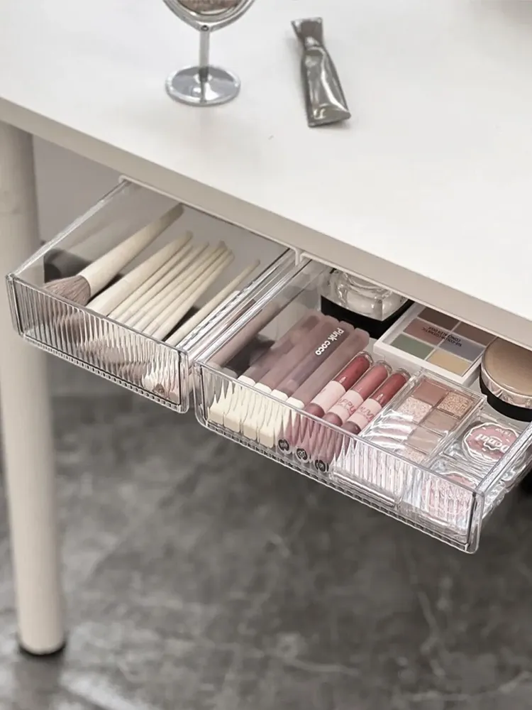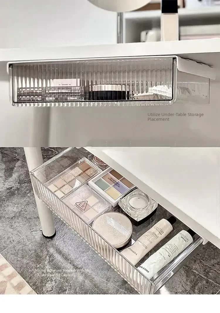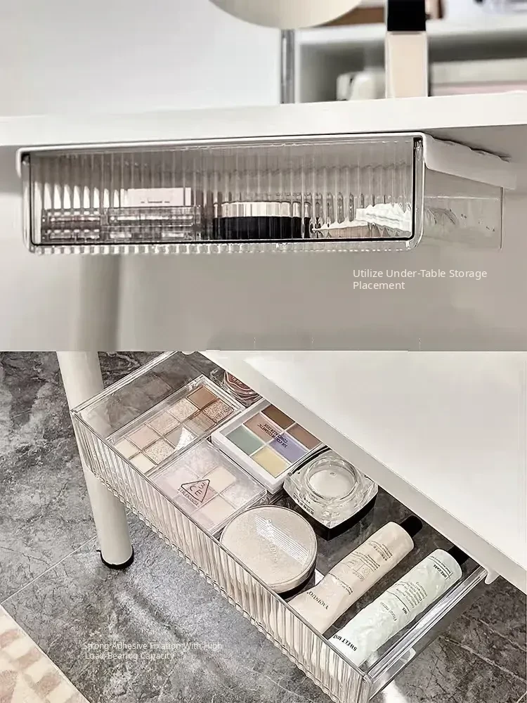 Invisible Under-Desk Storage Drawer with Adhesive Sliding Rails - Large Capacity Organizer for Dorms, Perfect for Cosmetics, Lipsticks, and Makeup Brushes