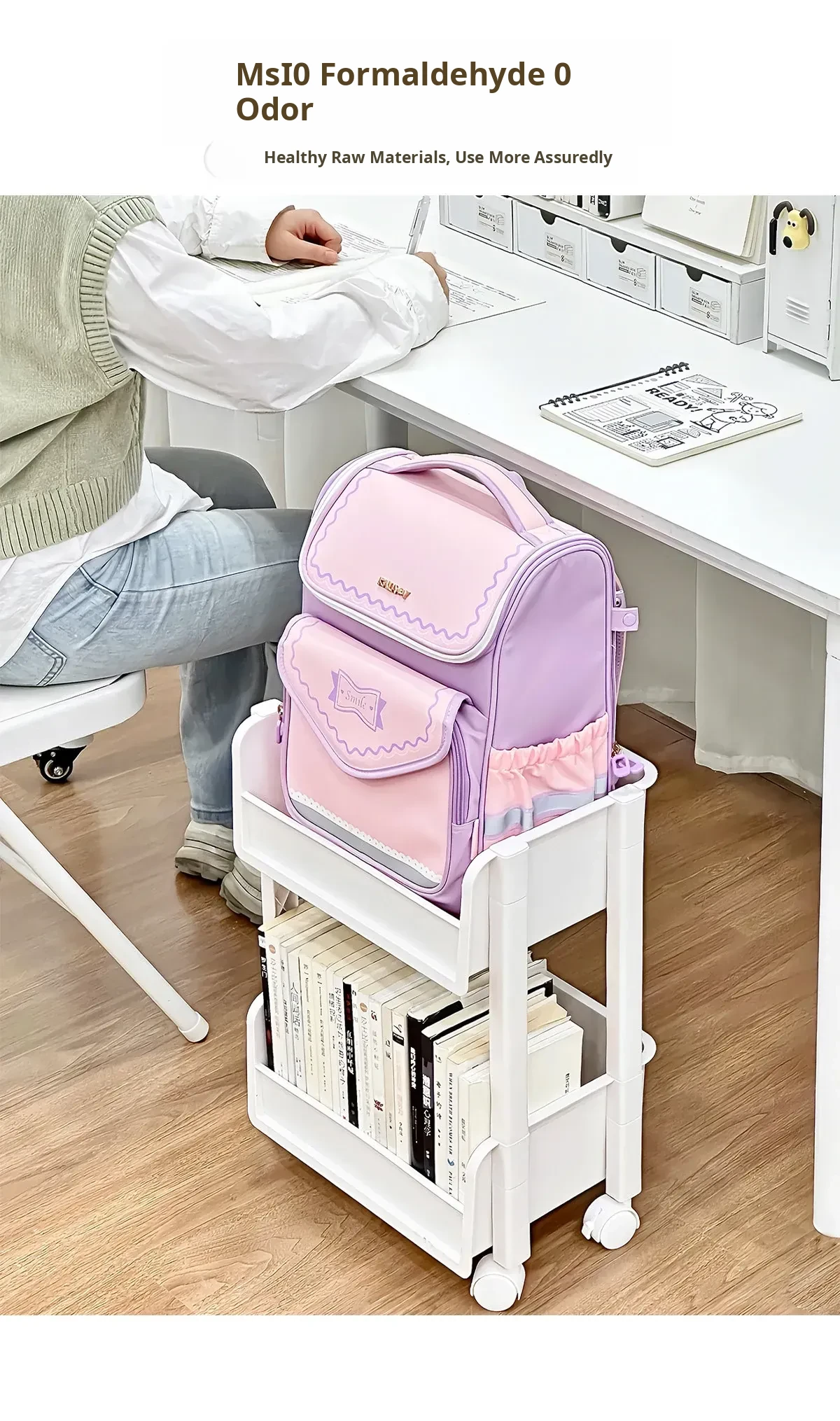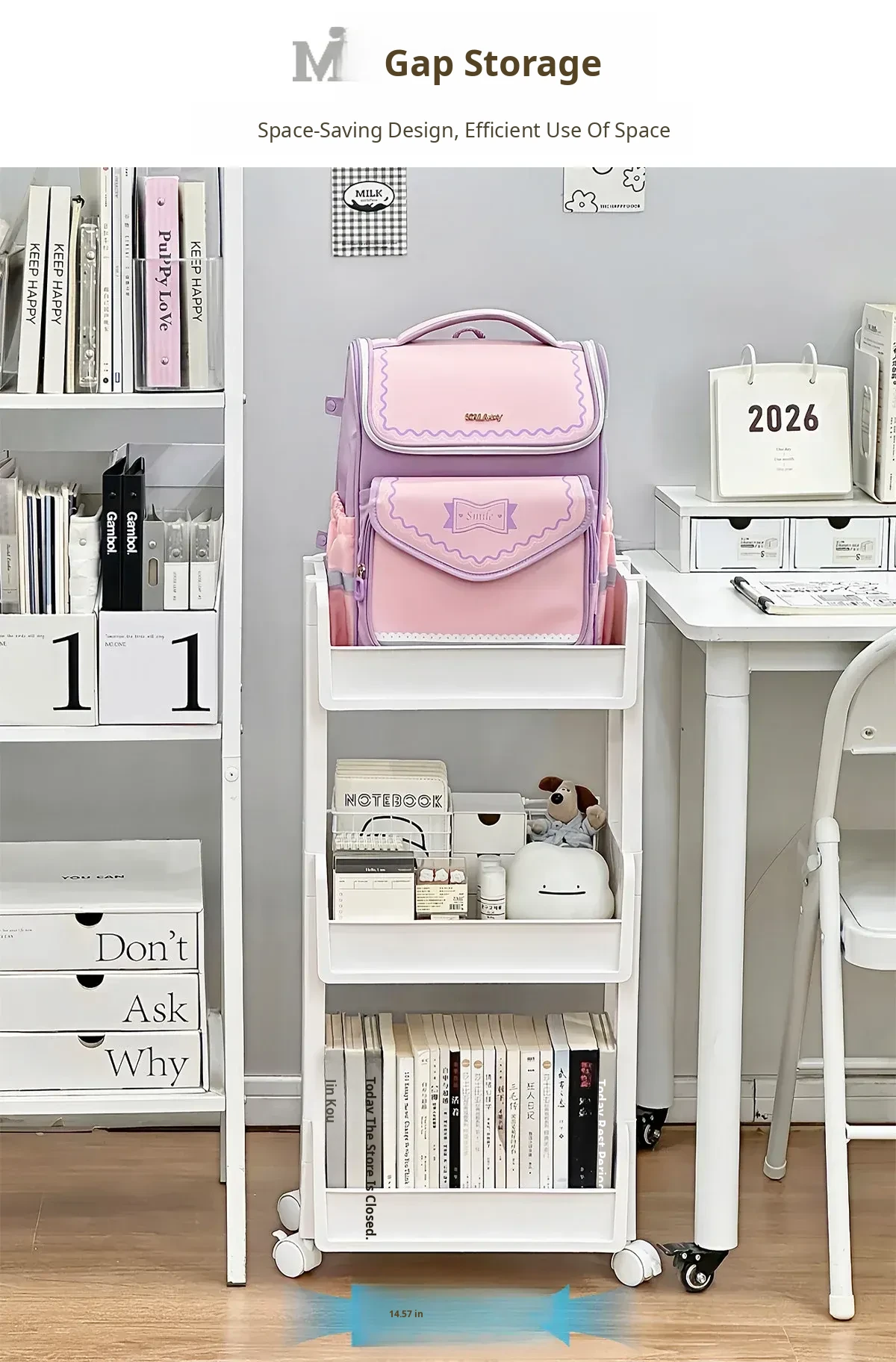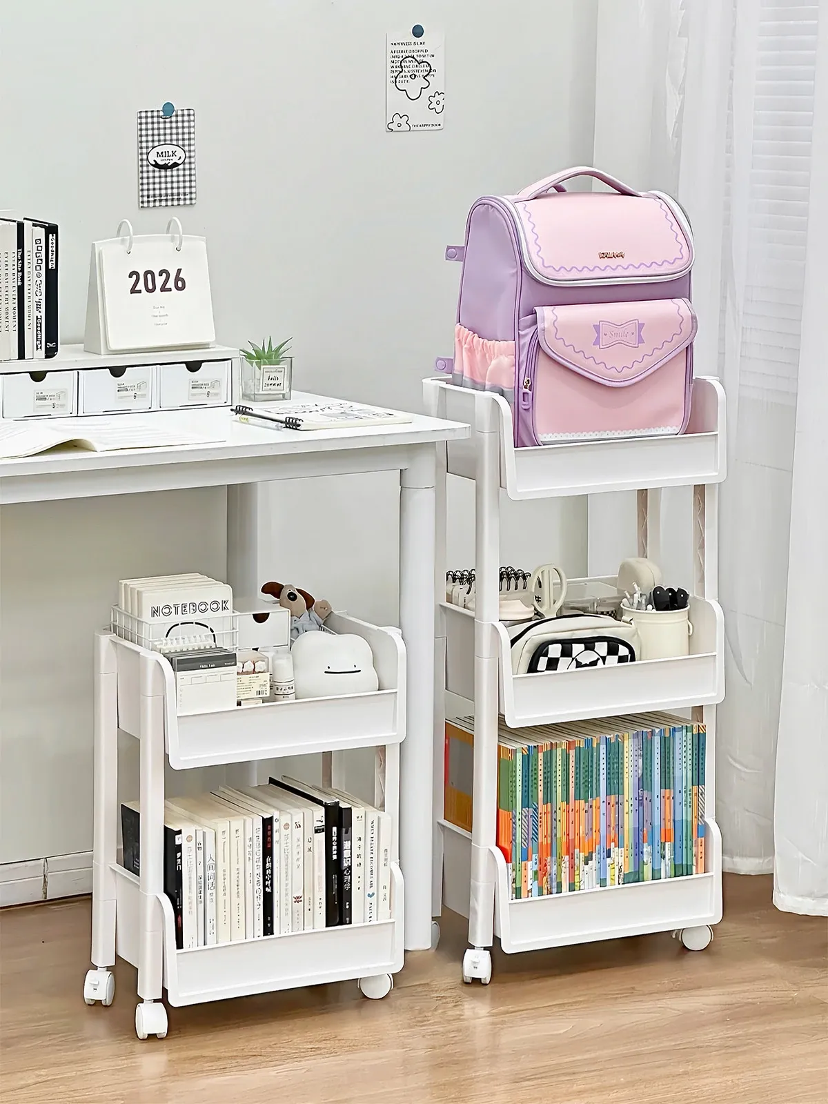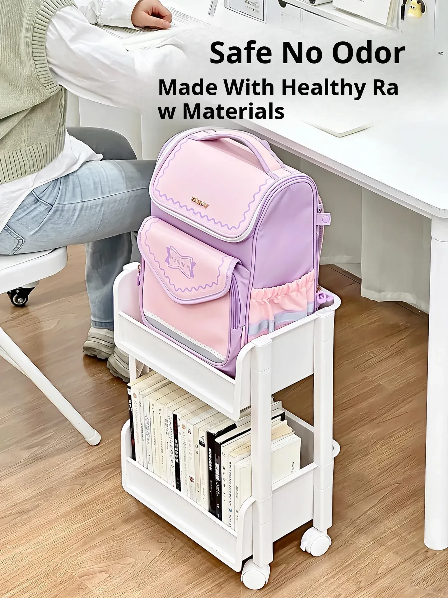 Multi-Tiered Moveable Bookshelf - Stylish Floor Storage Rack for Home, Perfect for Organizing Books, Student Backpacks, and Stationery Items. Ideal for Living Rooms, Offices, and Study Areas.