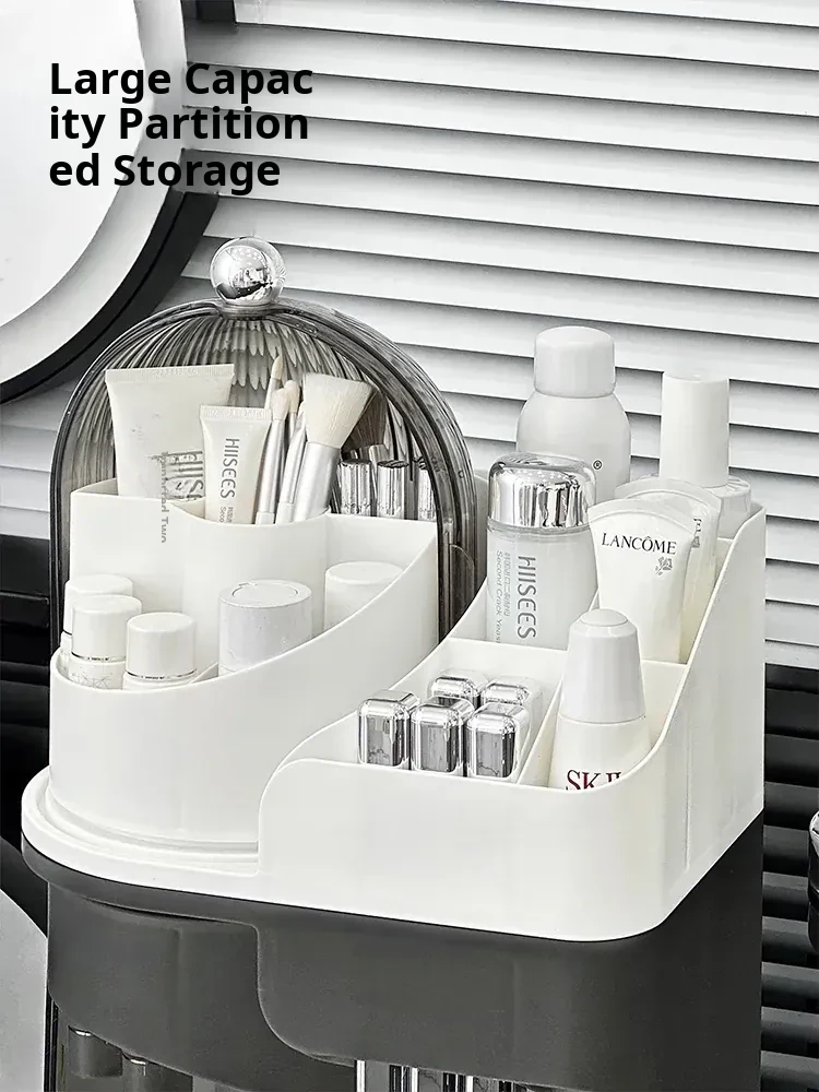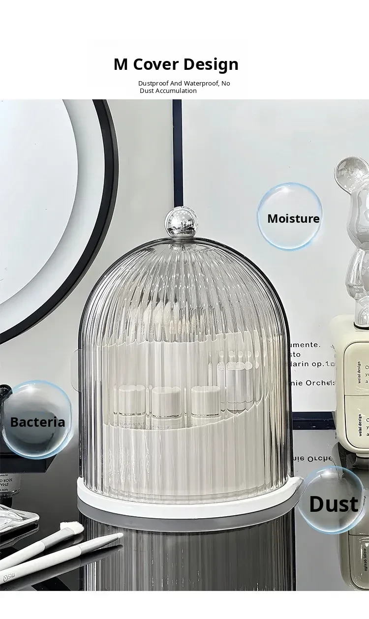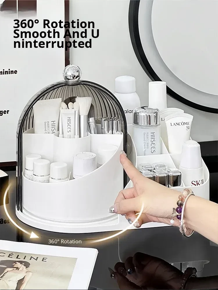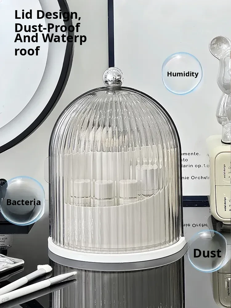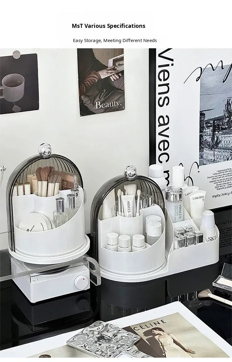 Rotating Makeup Brush Organizer and Cosmetic Storage Box - Dustproof Makeup Station for Skincare Products and Brushes, Perfect for Your Vanity!