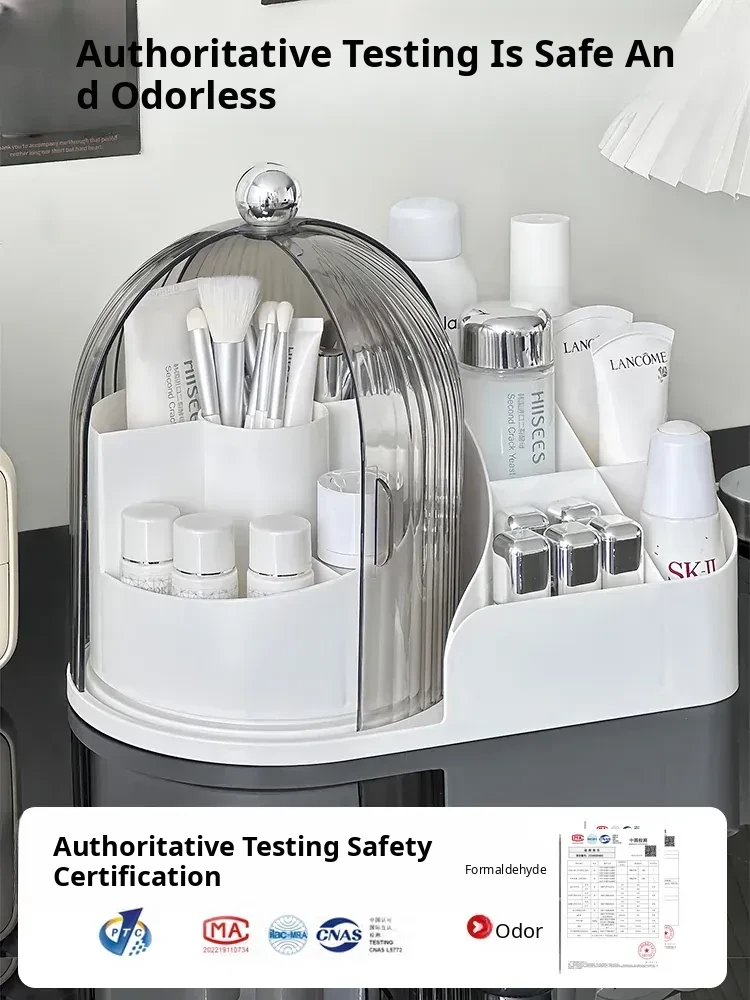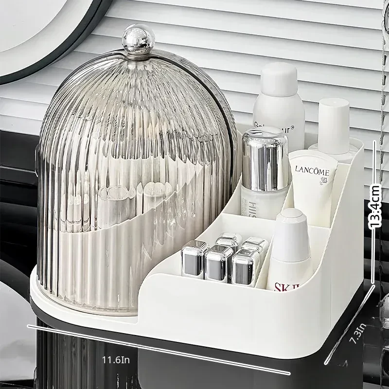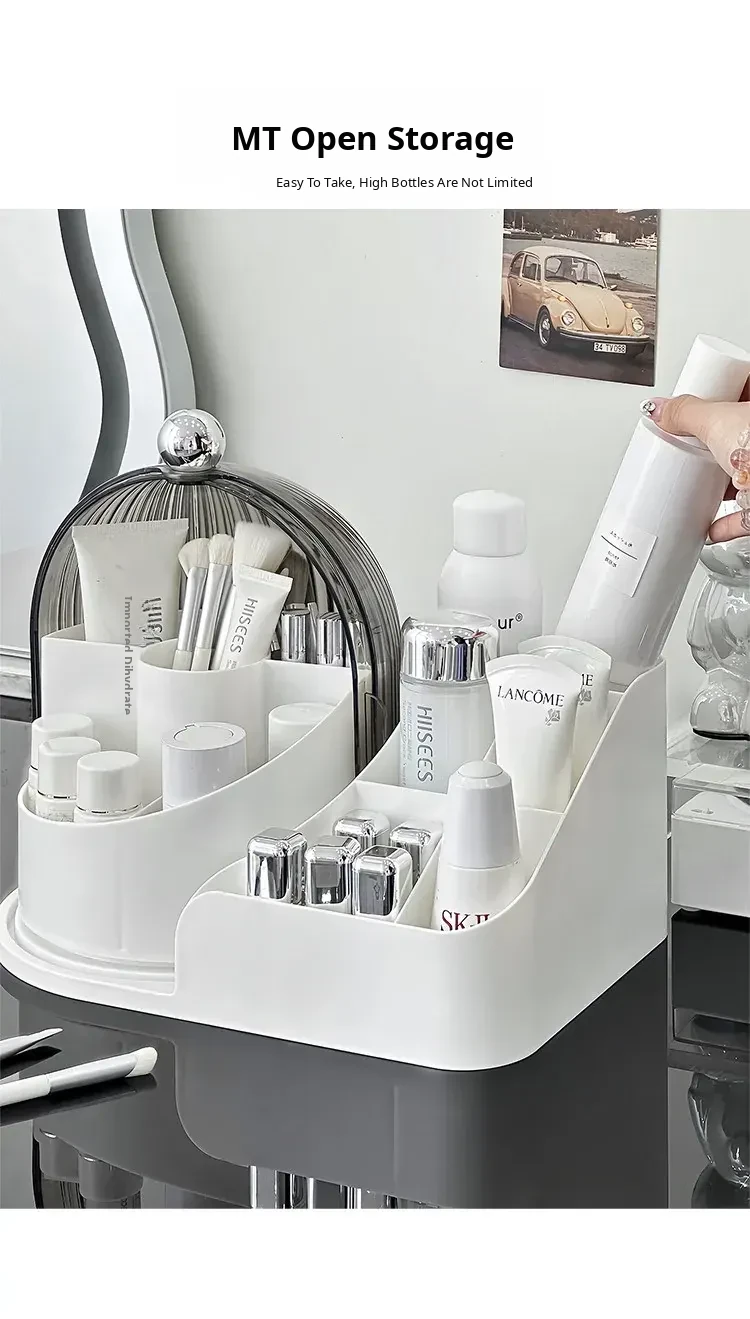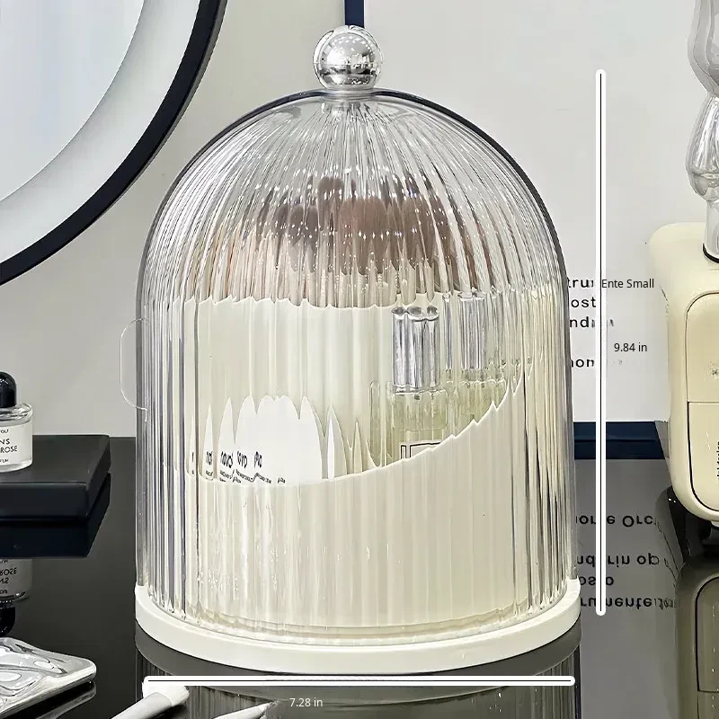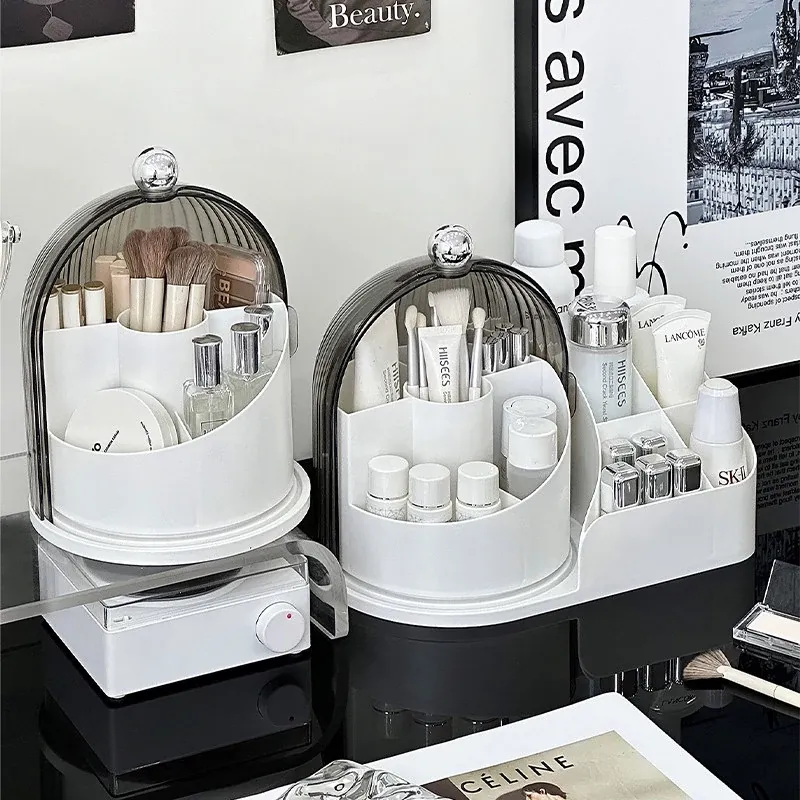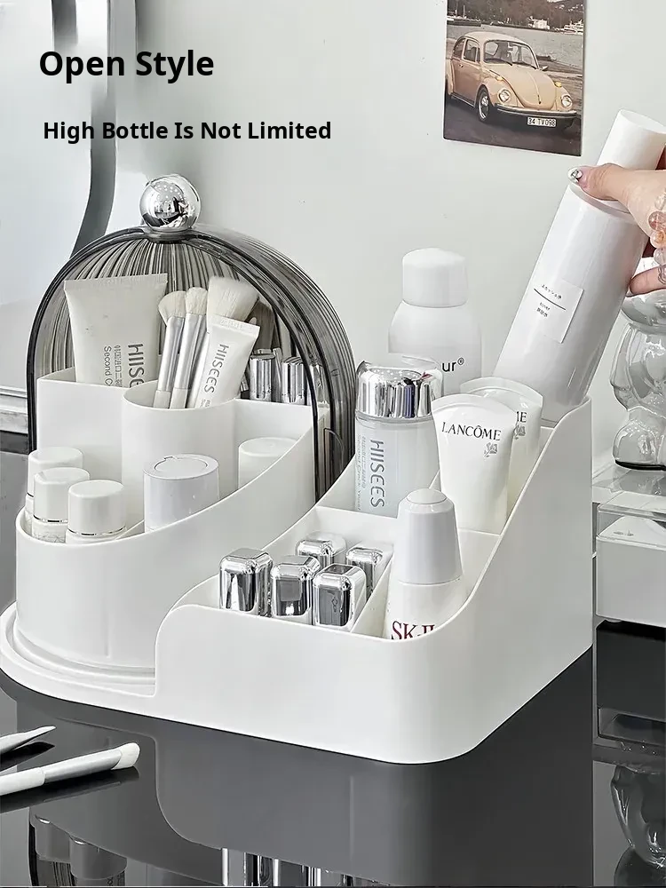 Rotating Makeup Brush Organizer and Cosmetic Storage Box - Dustproof Makeup Station for Skincare Products and Brushes, Perfect for Your Vanity!
