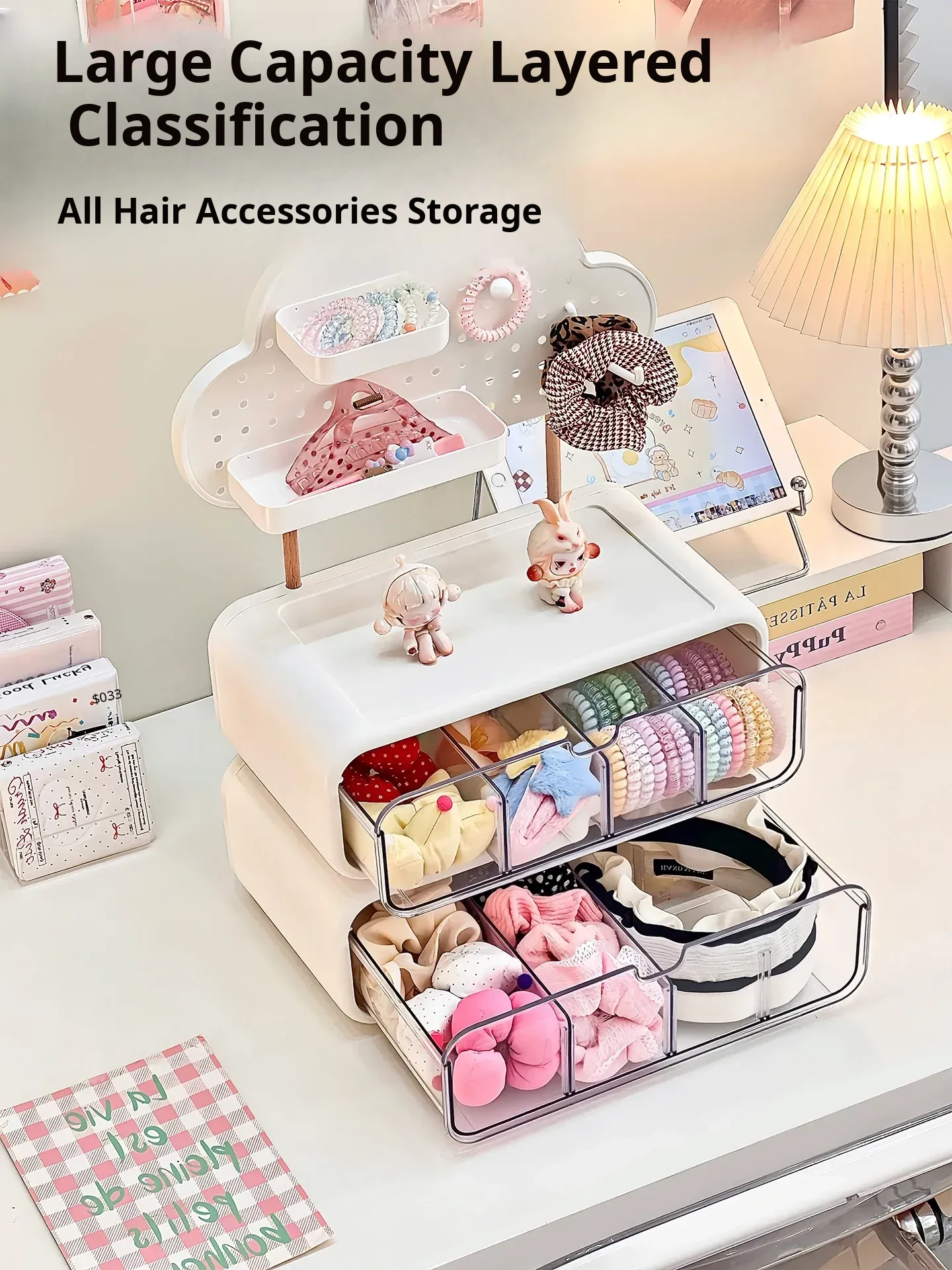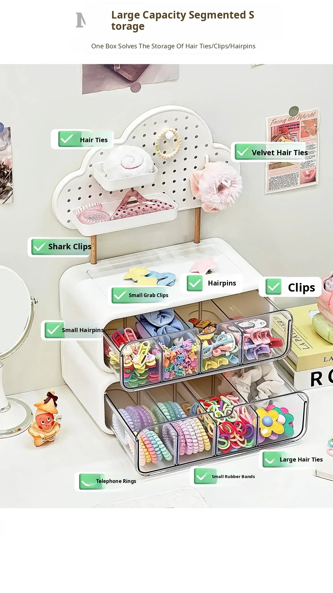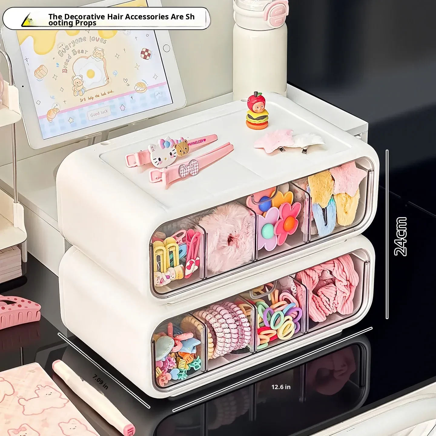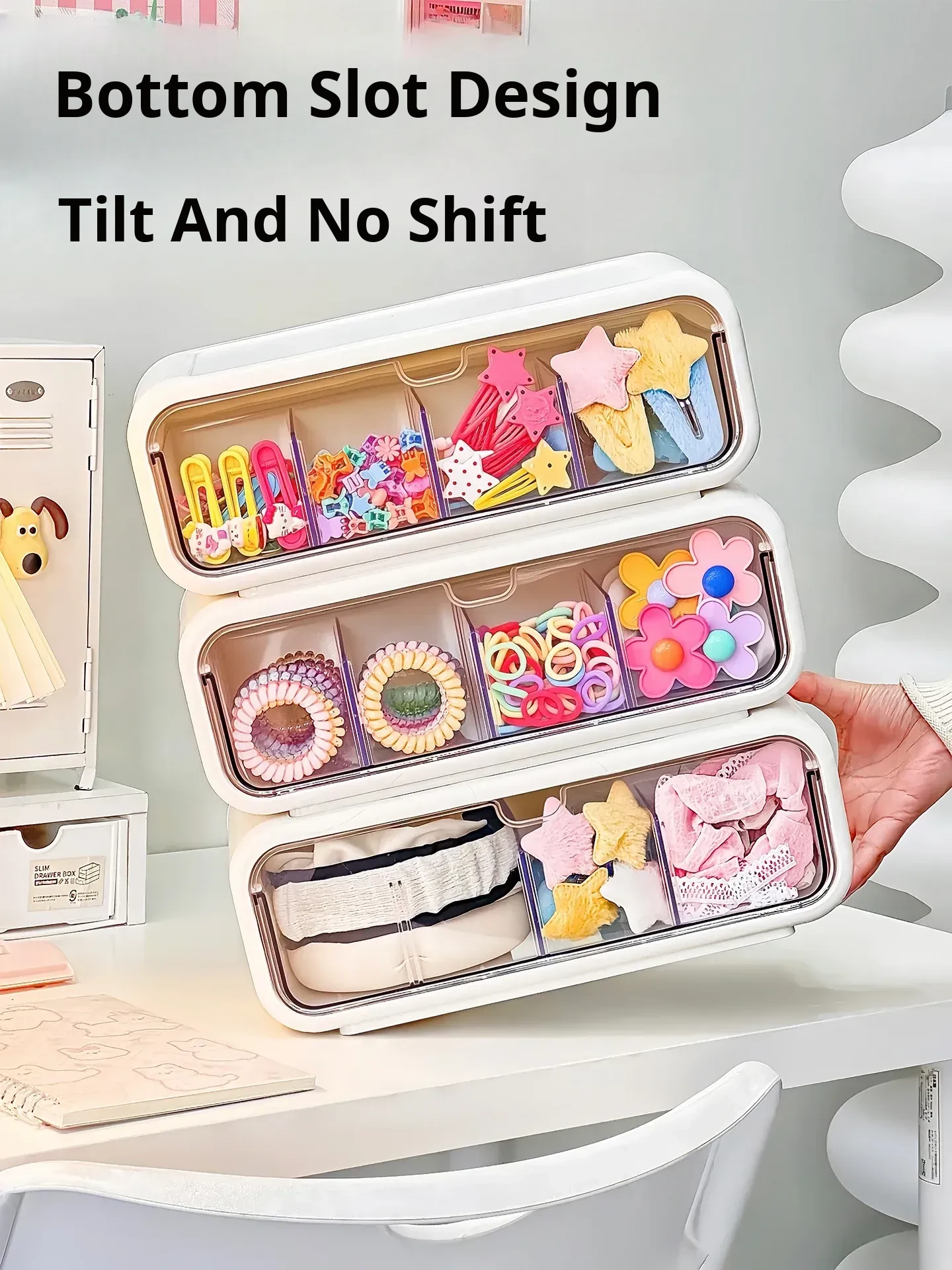 Stylish Drawer Organizer for Girls' Hair Accessories – Multi-Compartment Storage Box for Clips, Hair Ties, and Elastics – Perfect Jewelry and Desktop Organizer
