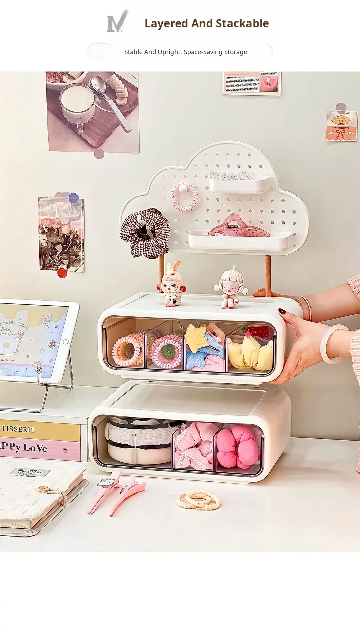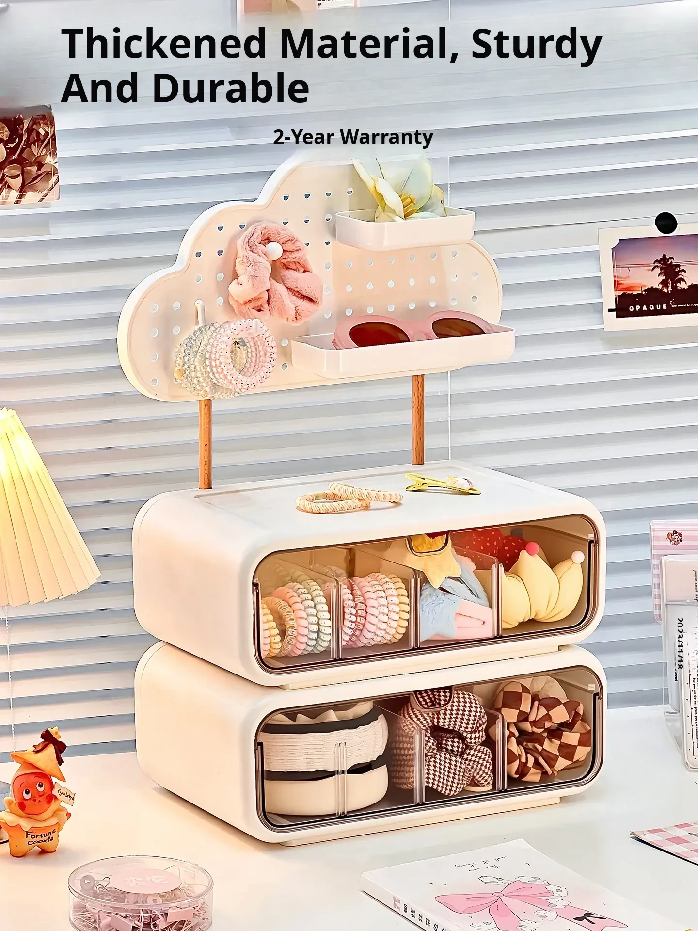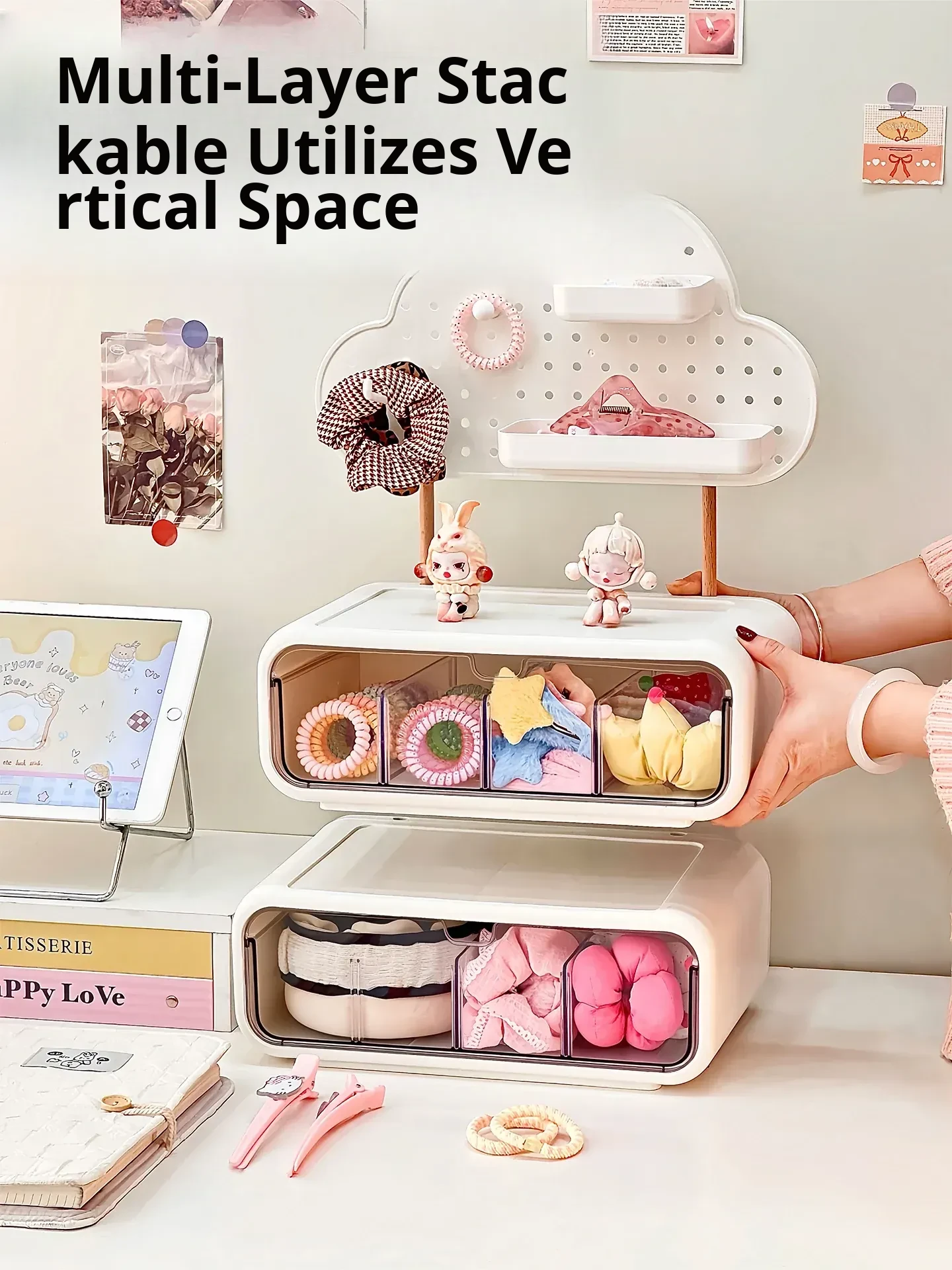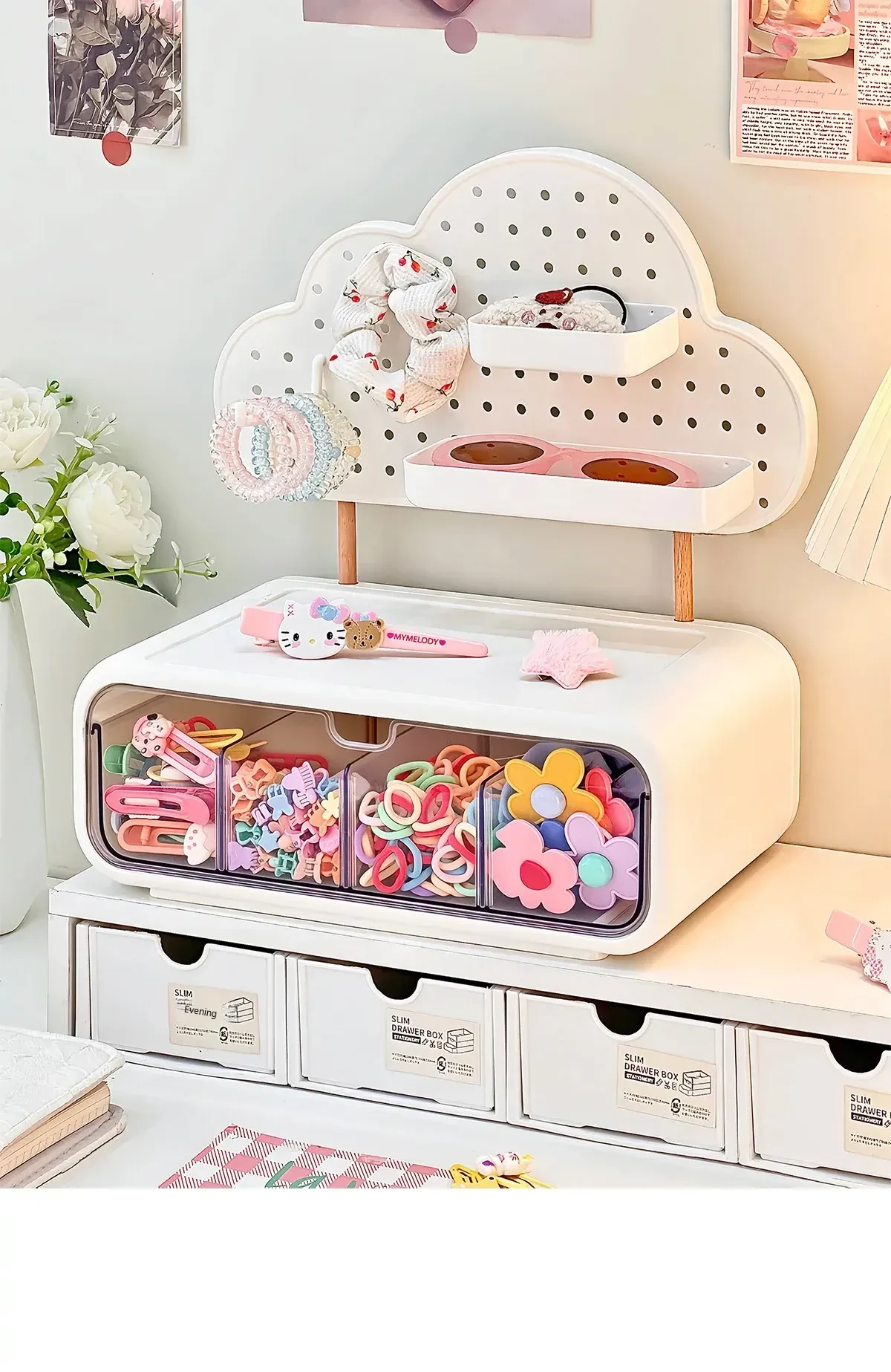Stylish Drawer Organizer for Girls' Hair Accessories – Multi-Compartment Storage Box for Clips, Hair Ties, and Elastics – Perfect Jewelry and Desktop Organizer