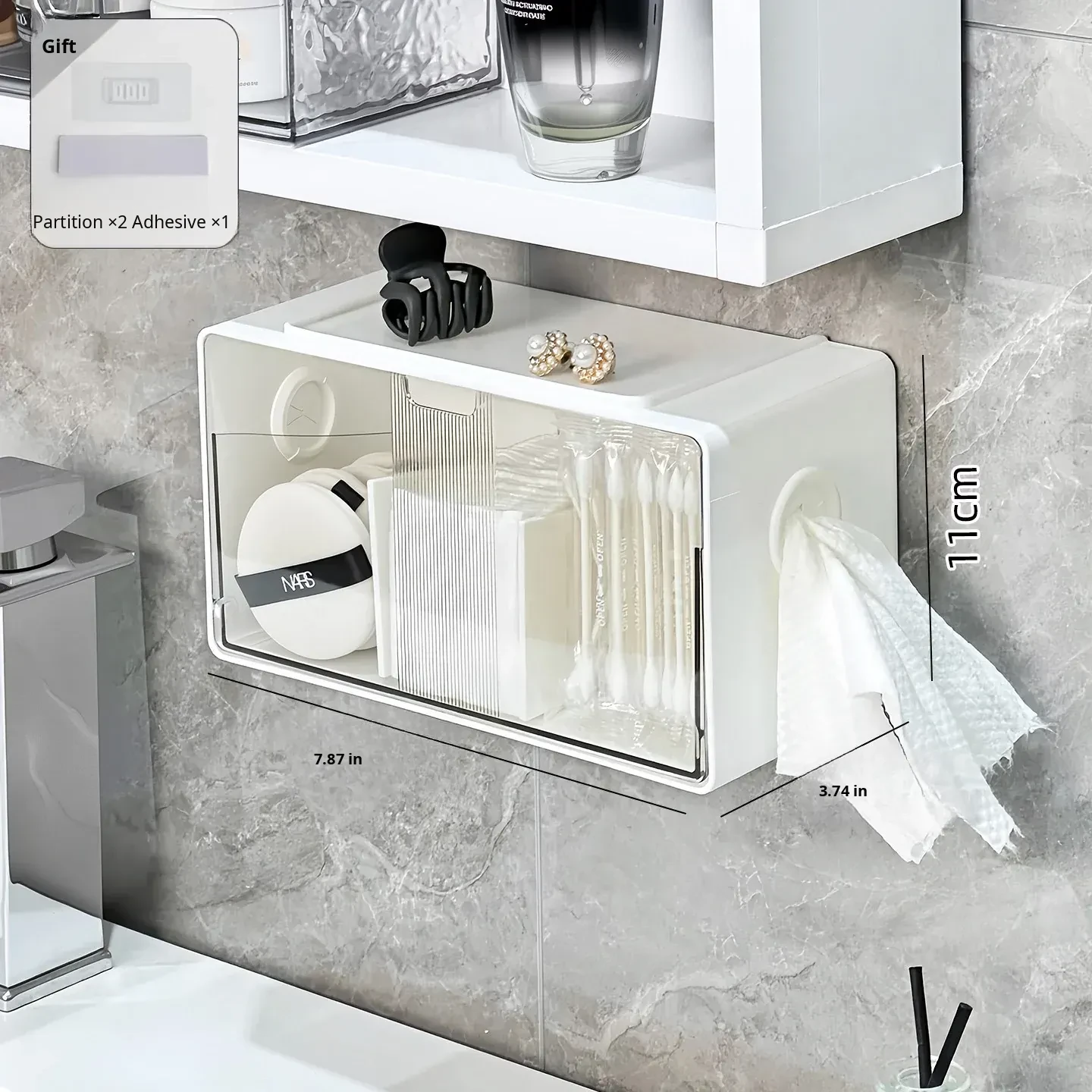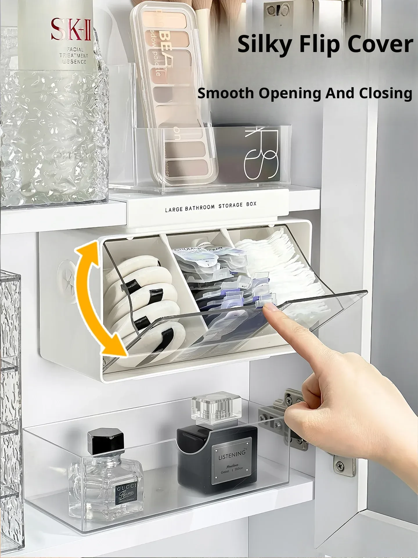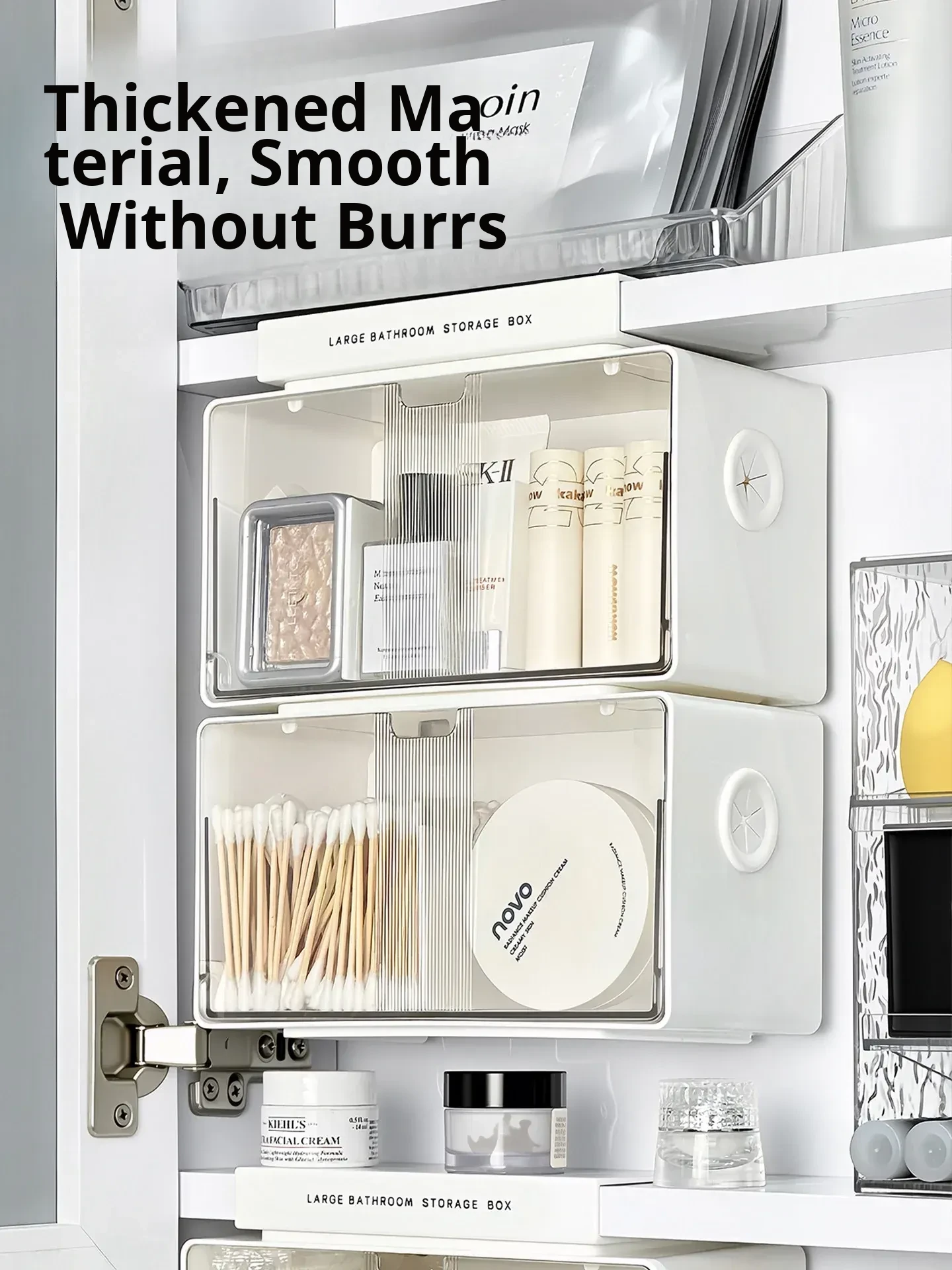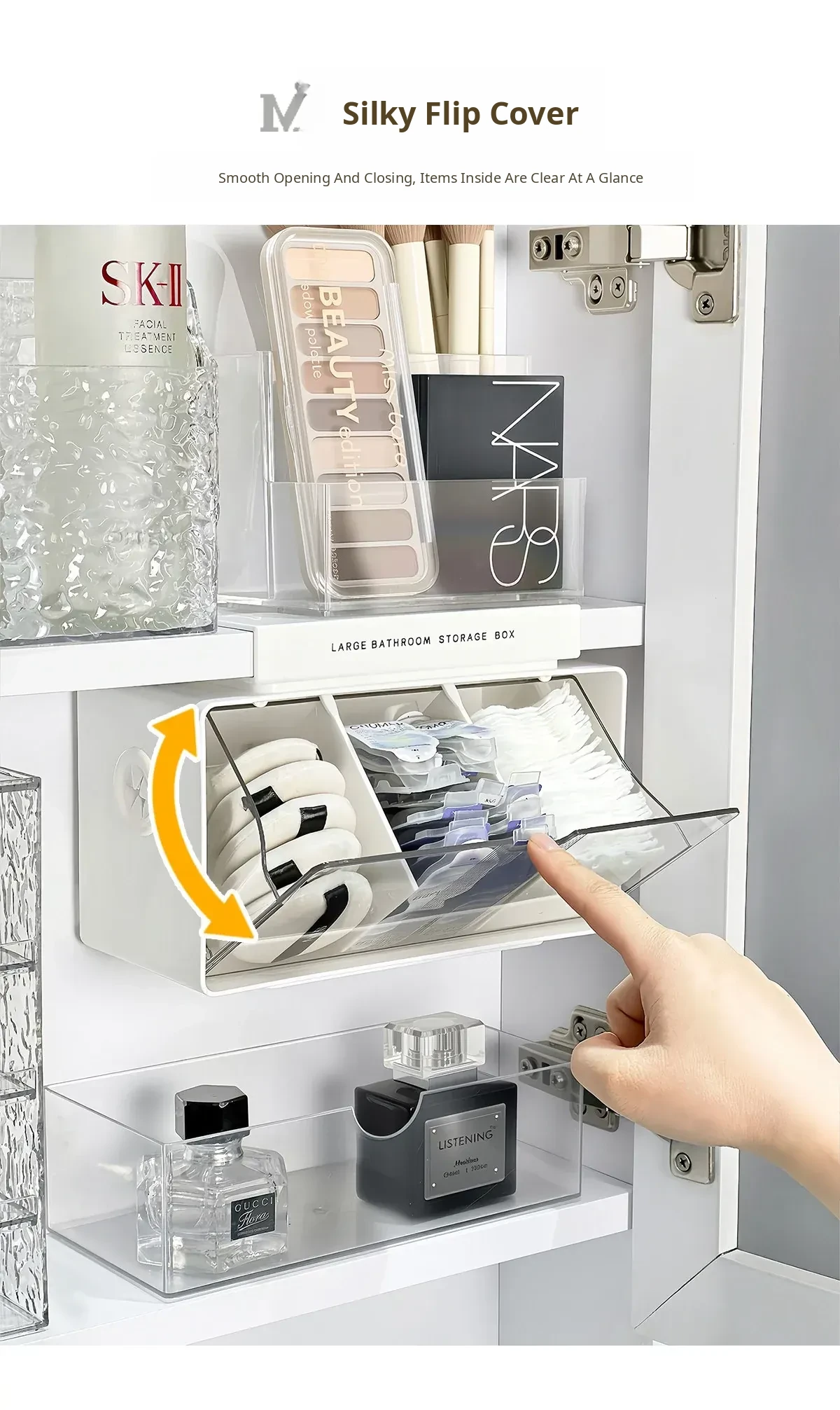 Transparent Makeup Organizer Box - Essential Storage Solution for Skincare Products, Cotton Pads, and Swabs in Your Bathroom - Keep Your Vanity Neat and Tidy!