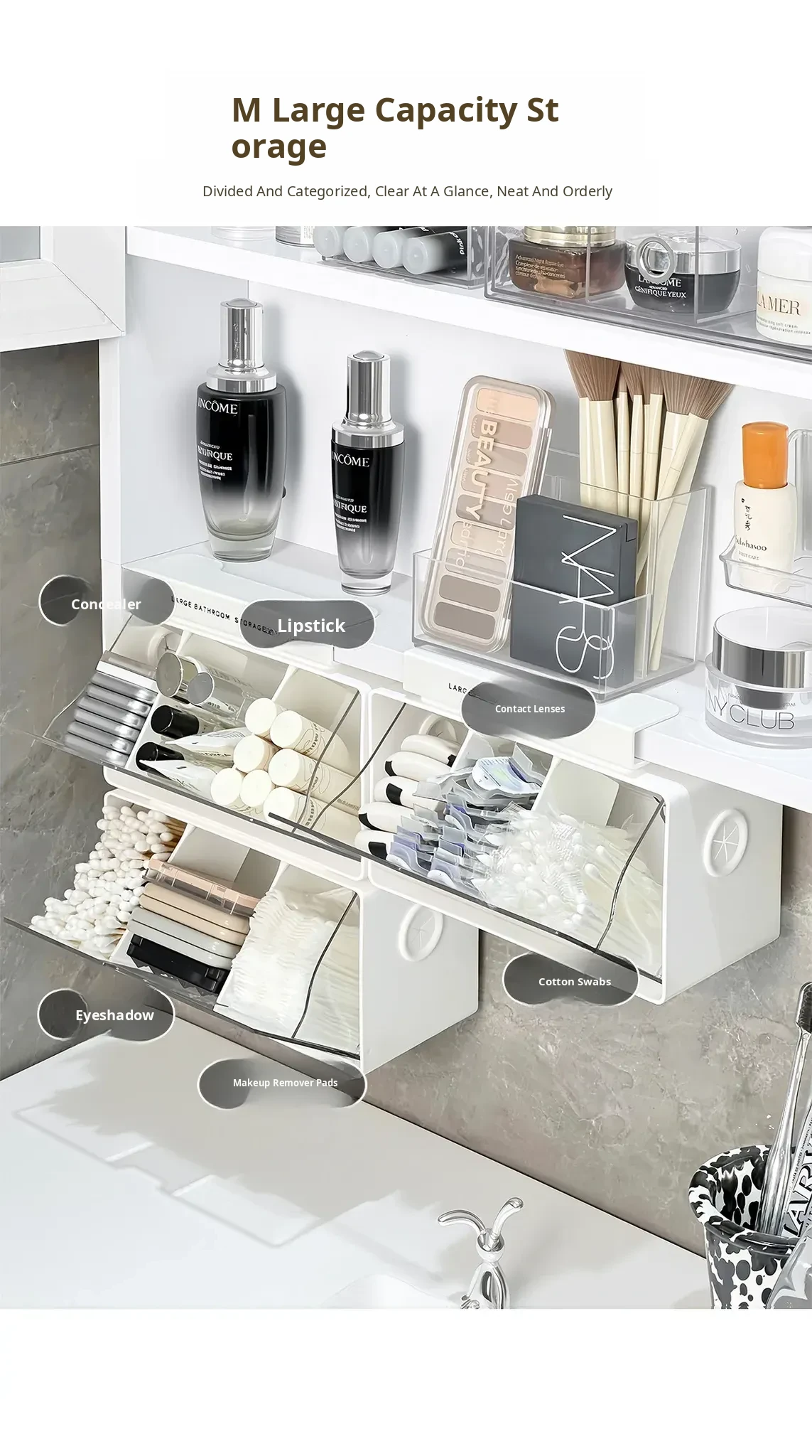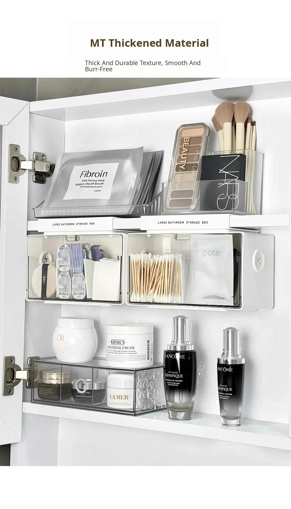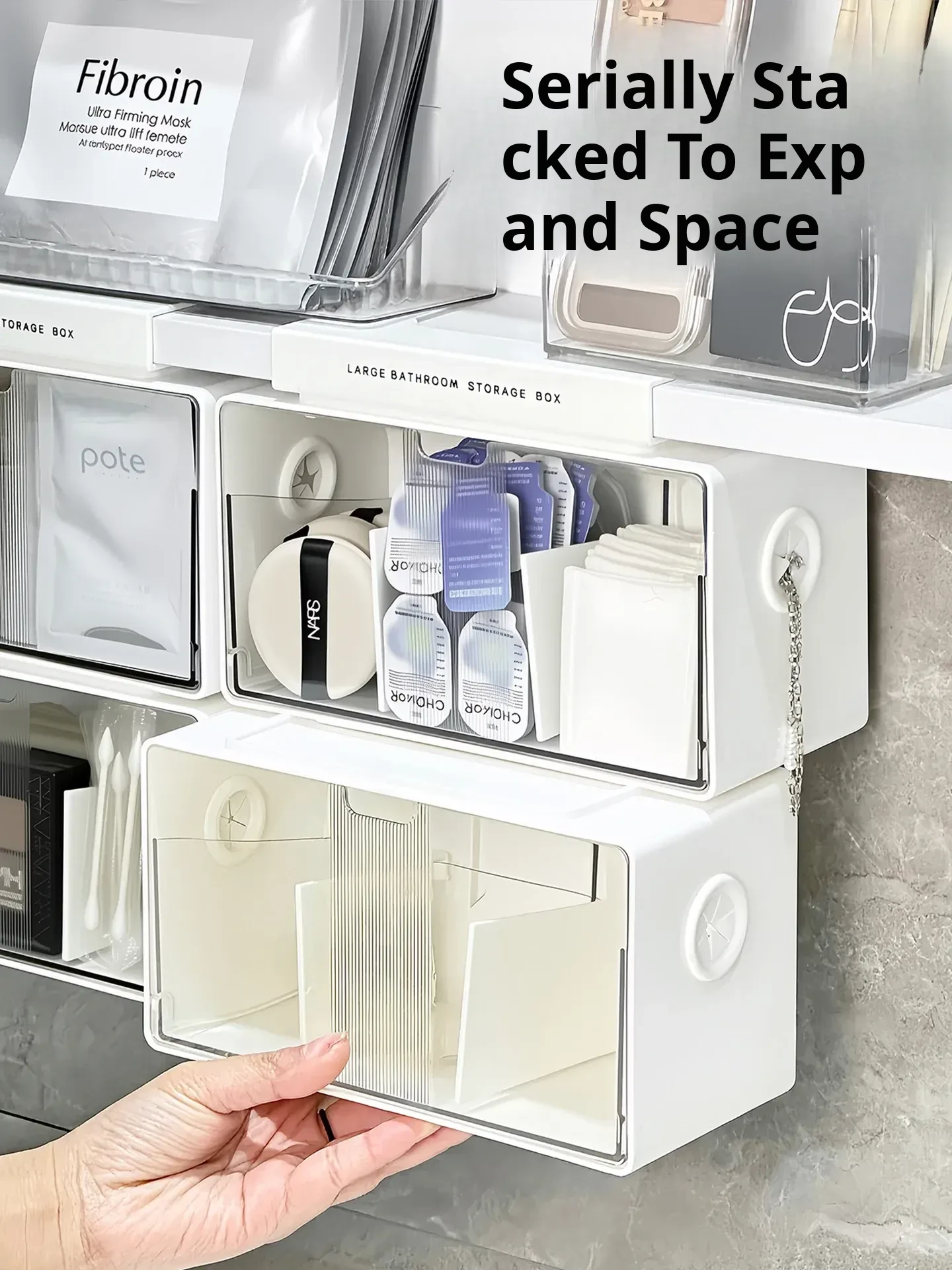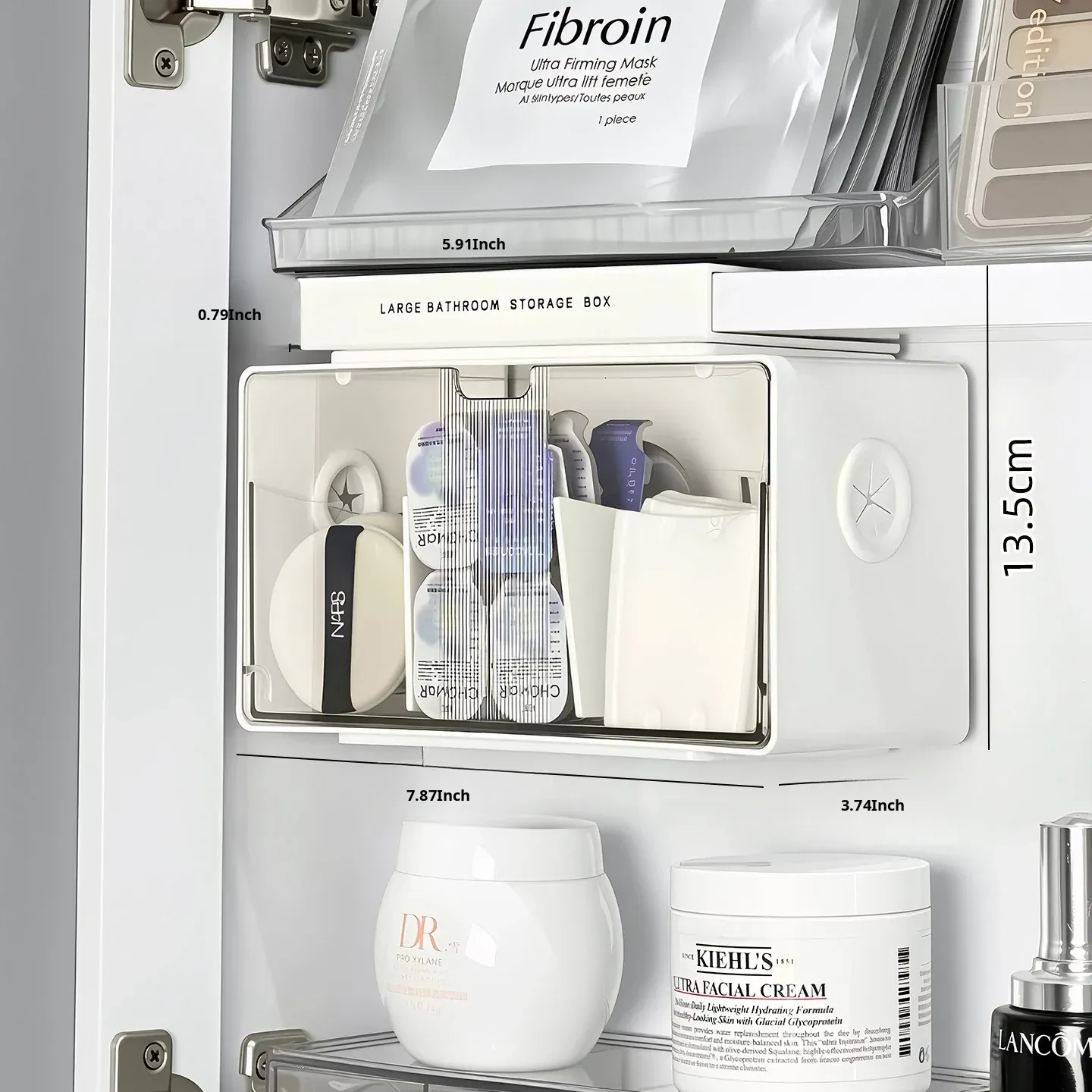 Transparent Makeup Organizer Box - Essential Storage Solution for Skincare Products, Cotton Pads, and Swabs in Your Bathroom - Keep Your Vanity Neat and Tidy!