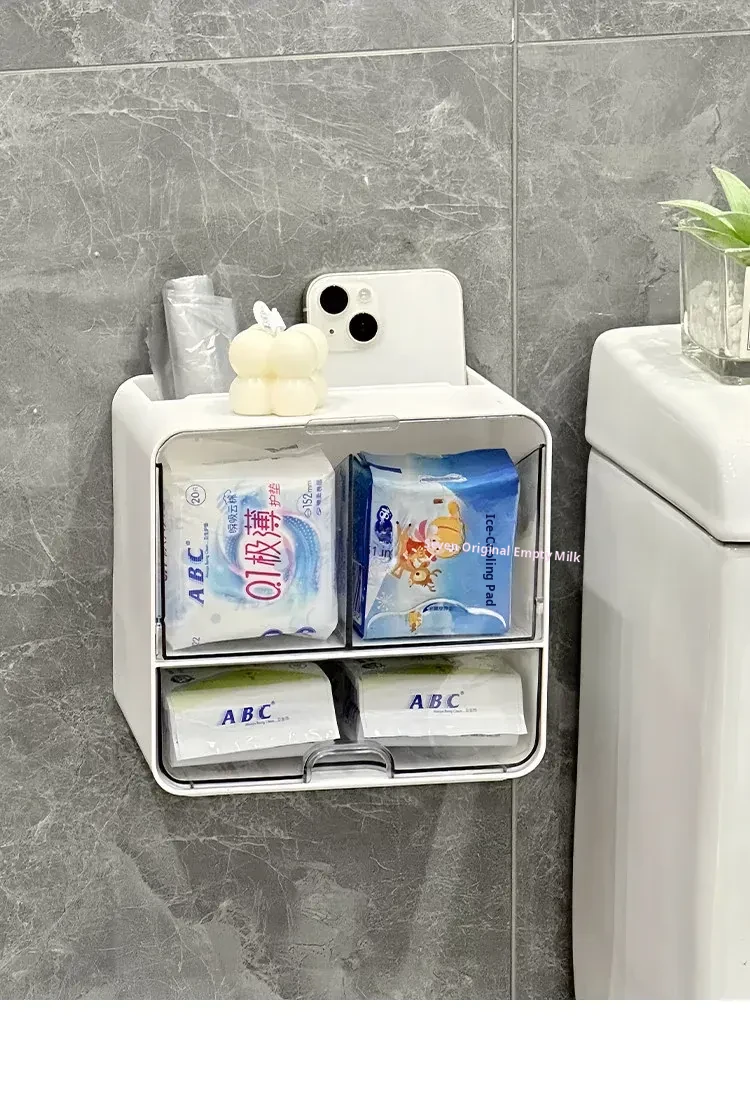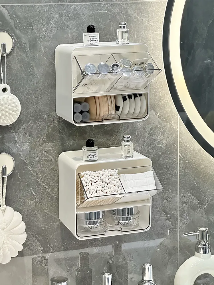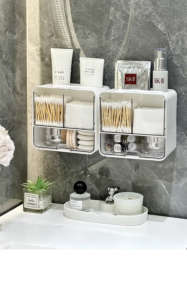 2 White Drawer Wall-Mounted Cotton Swab Boxes