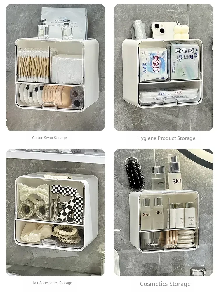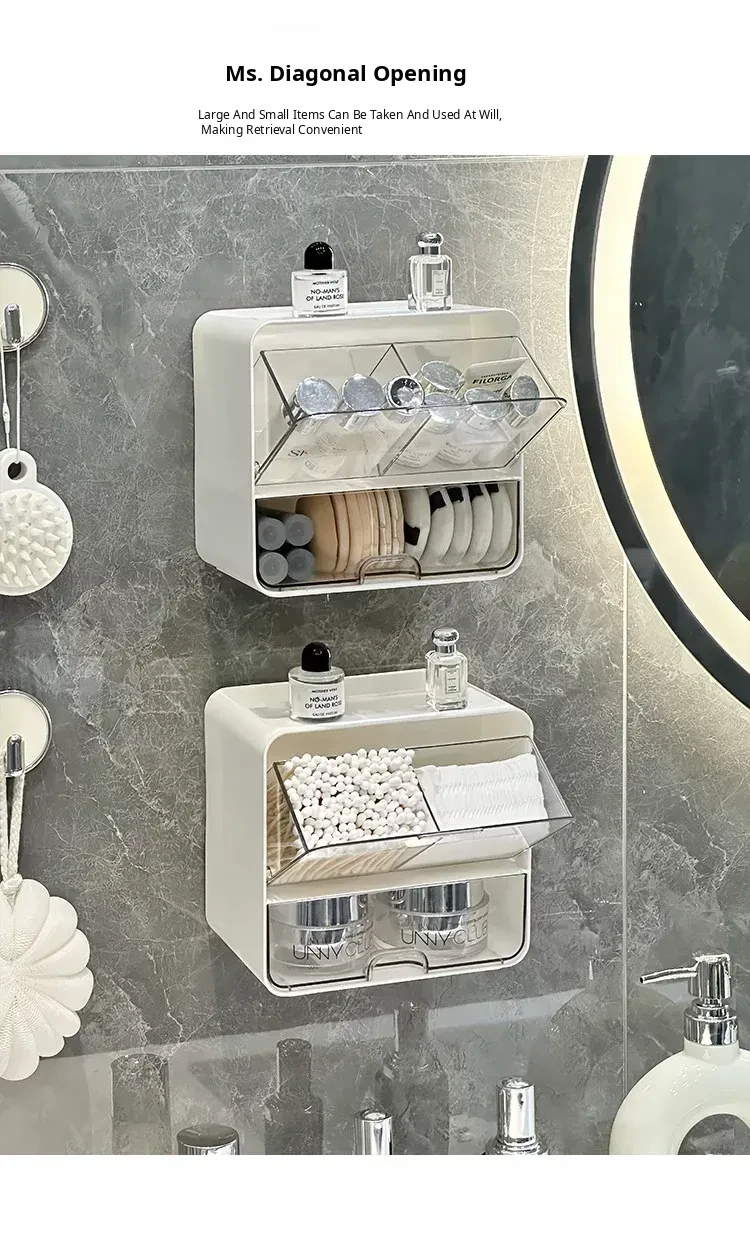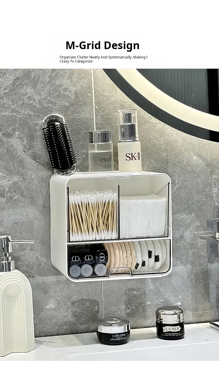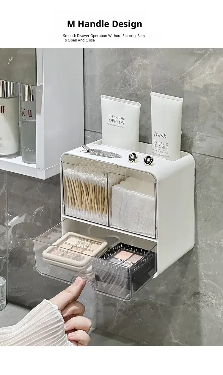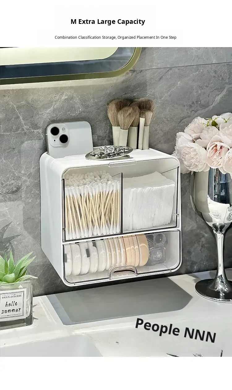 Wall-Mounted Cotton Swab Organizer - Makeup Cotton Pads, Puff Storage Box for Bathroom Mirror Cabinet, Stylish Brush and Lipstick Holder for Neat Vanity Spaces