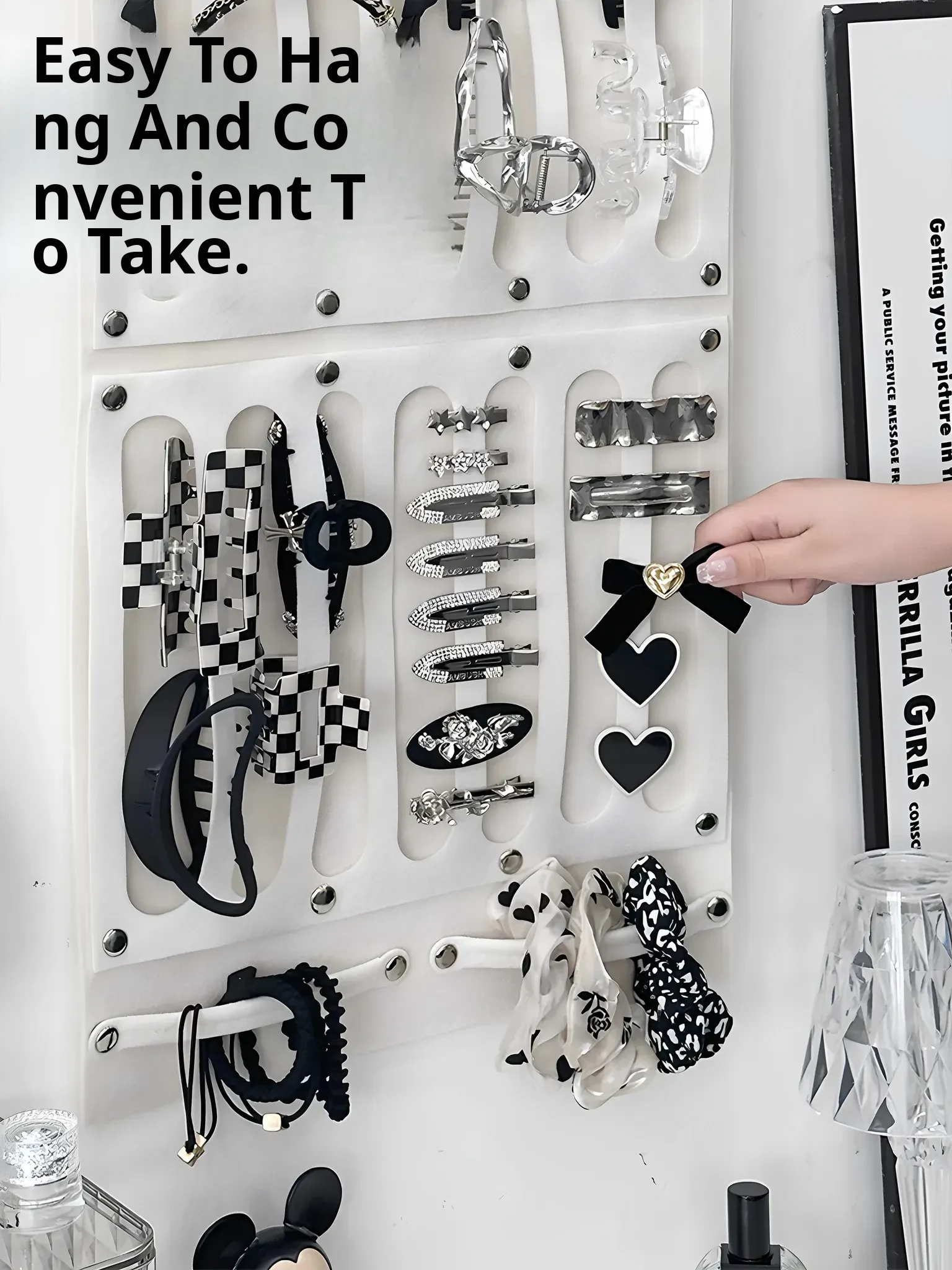 Wall-Mounted Hair Accessory Organizer - Stylish Storage for Hairpins, Headbands, Hair Ties, and Clips - The Ultimate Space-Saving Solution for Your Hair Accessories!