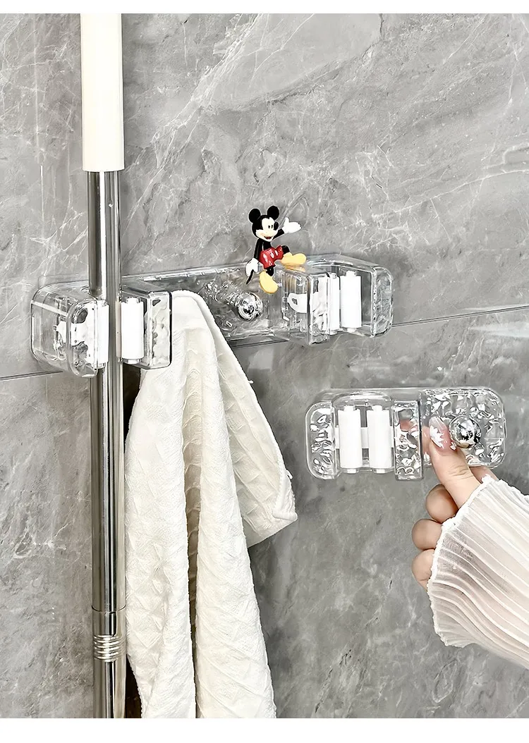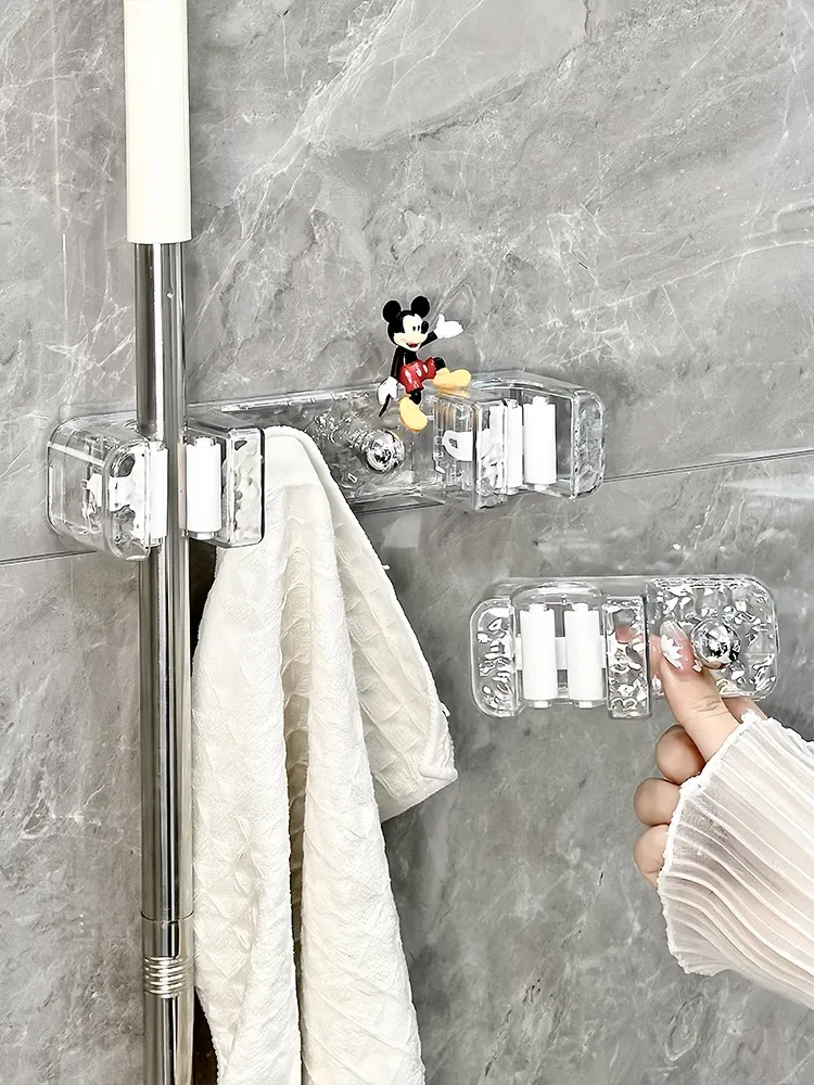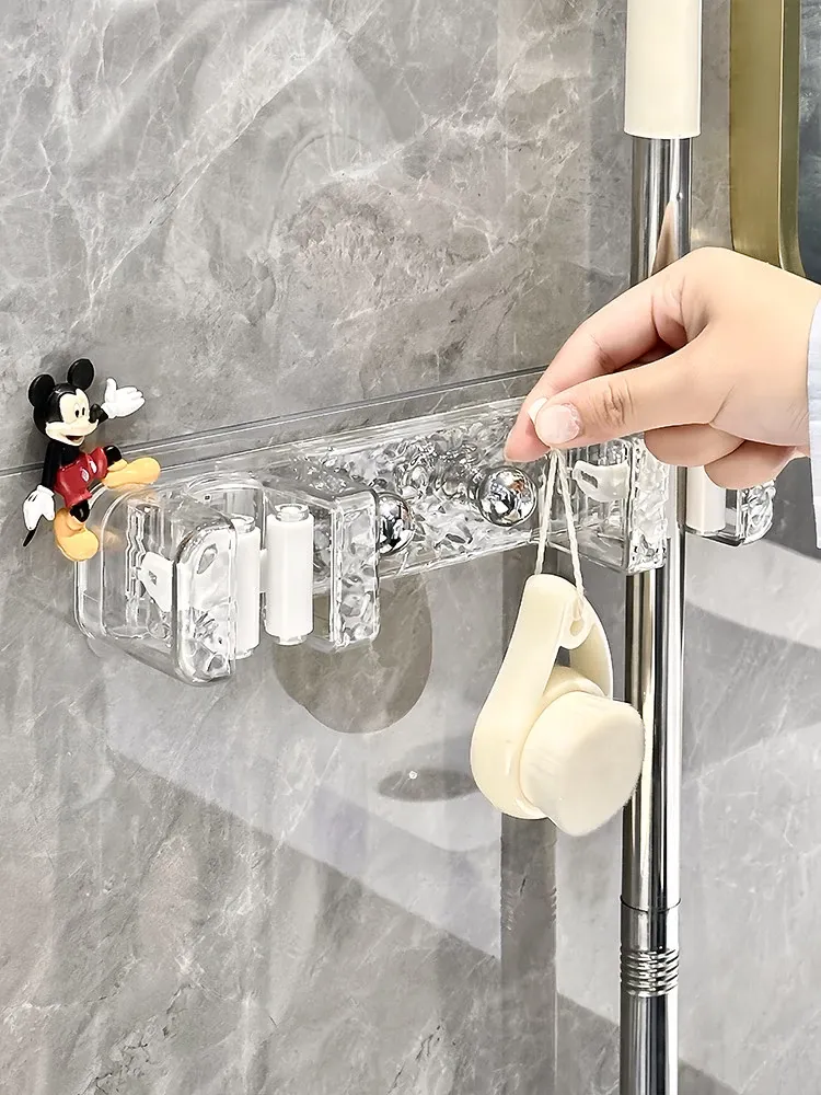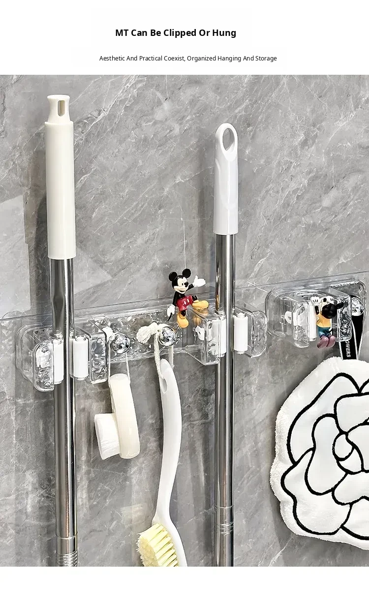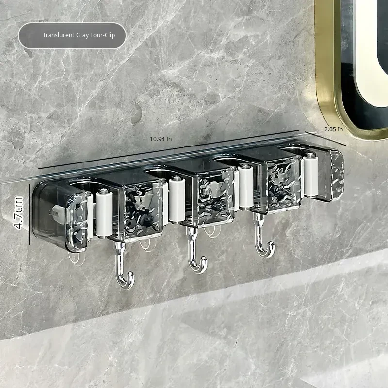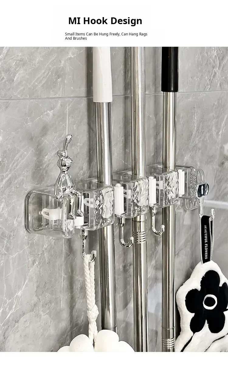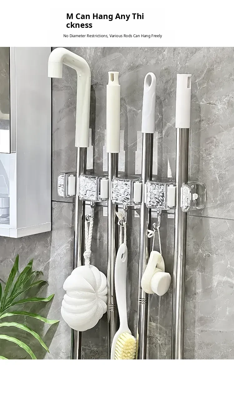 Wall-Mounted Mop Holder with No Drilling - Perfect for Home, Bathroom, and Behind Doors - Space-Saving and No Trace Broom and Mop Storage Rack