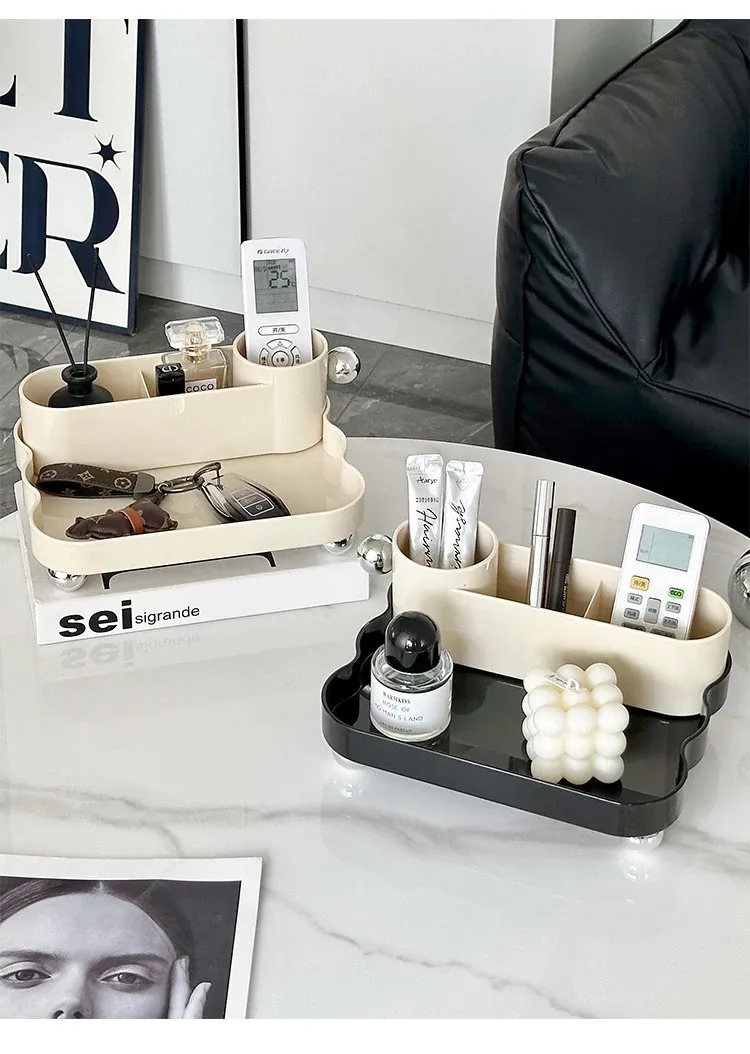 リモコン収納ボックス - 創造的な家庭用リビングテーブルオーガナイザー!多機能仕切り付き、ベッドサイド整理ボックスで、生活空間をスッキリ整頓!あなたの暮らしをもっと快適にするアイテムです。