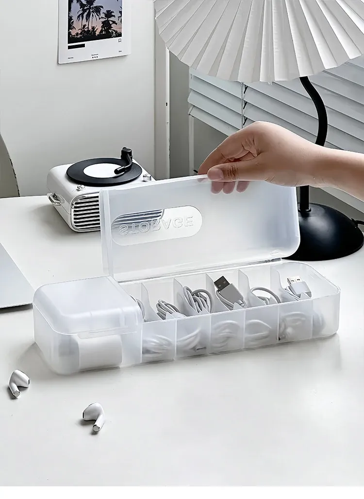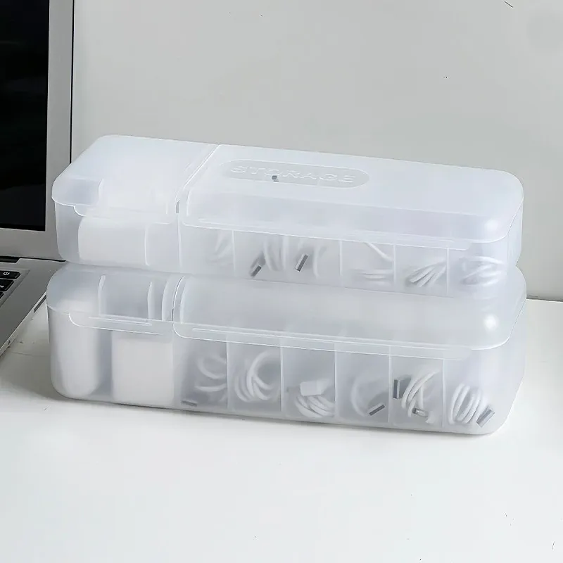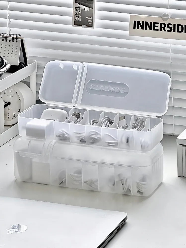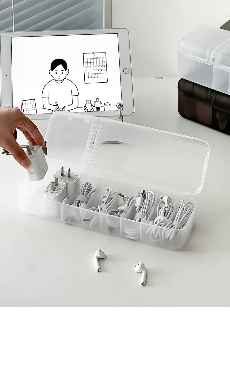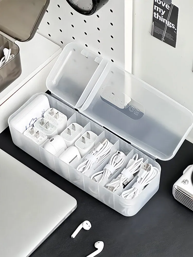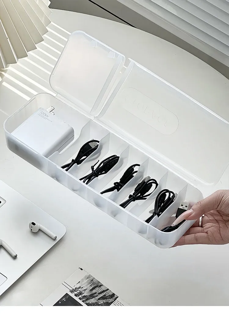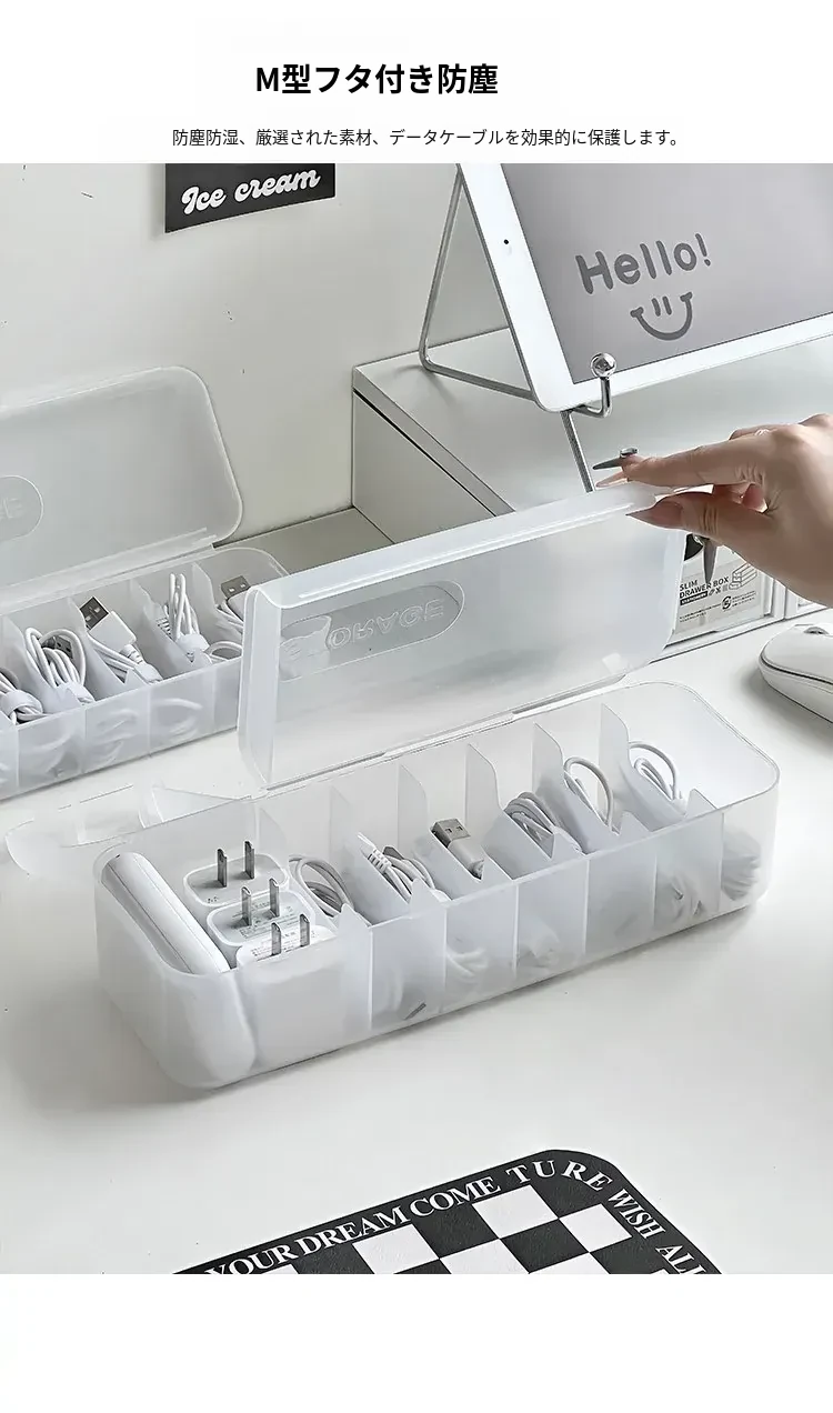 デスク用ケーブル収納ボックス 蓋付き 防塵 充電器整理ボックス 寮用デスクのスマホ充電ケーブル整理に最適!シンプルでスタイリッシュ、すっきりとしたデスク環境を実現します。