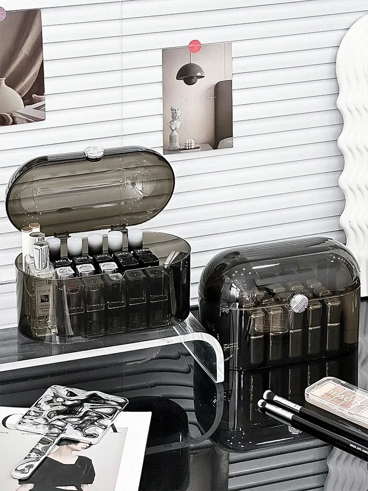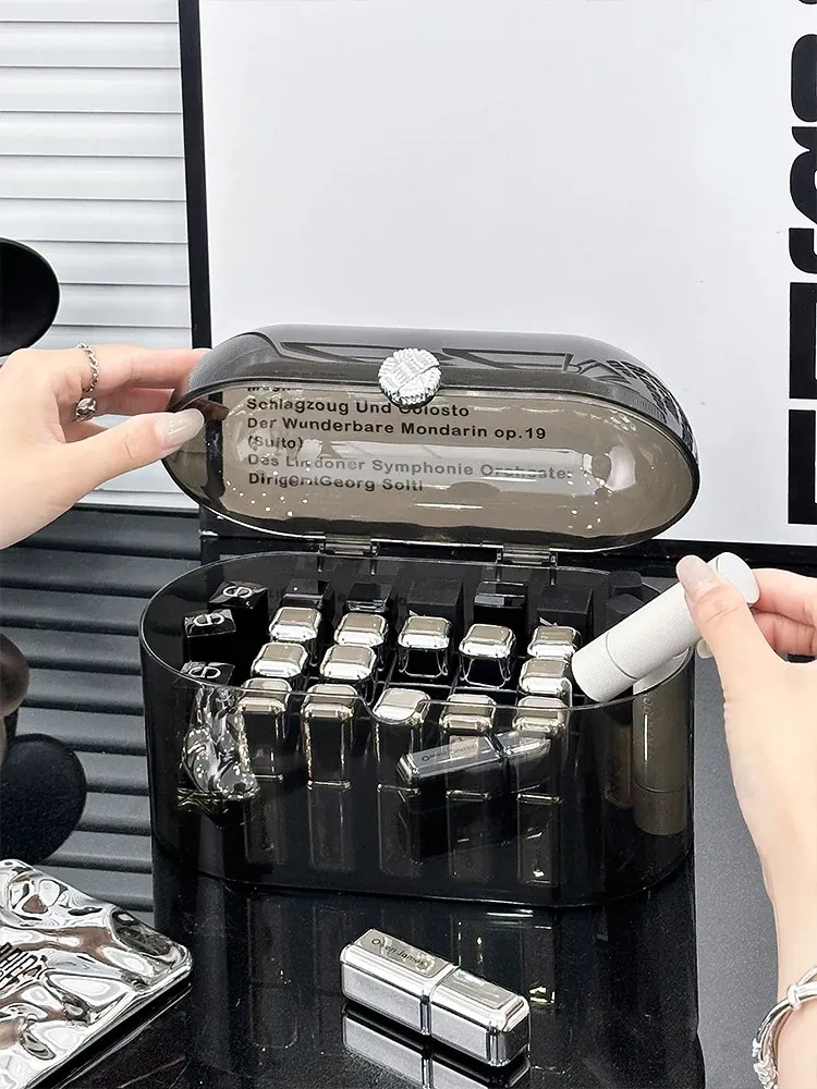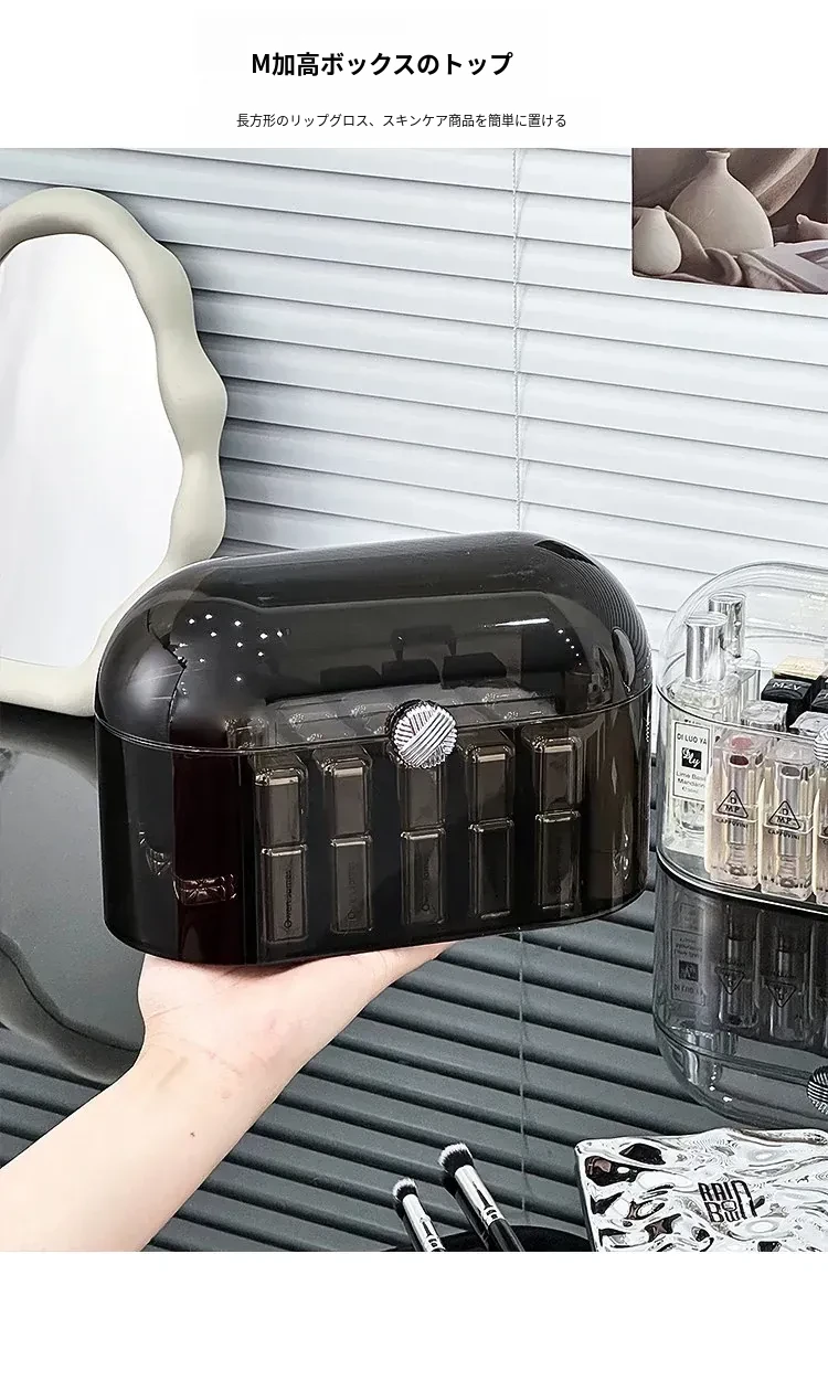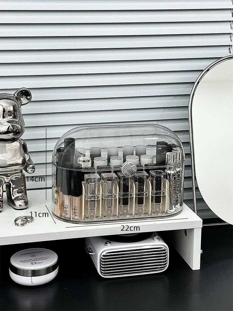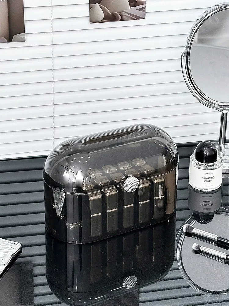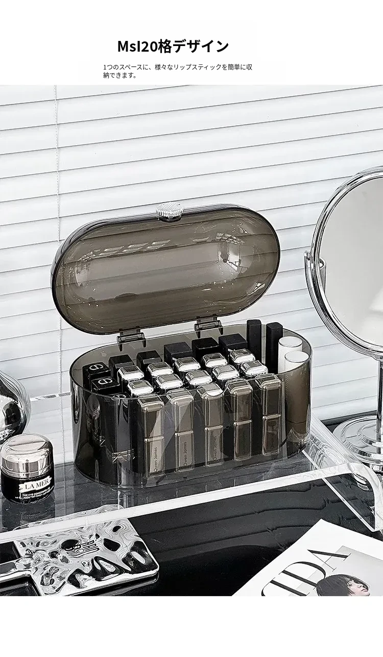 高級感あふれる防塵口紅収納ボックス!デスクトップ化粧台に最適な化粧品・香水・リップグロス用の分格整理ボックス。美しい空間を演出し、使いやすさも追求した置物棚です。