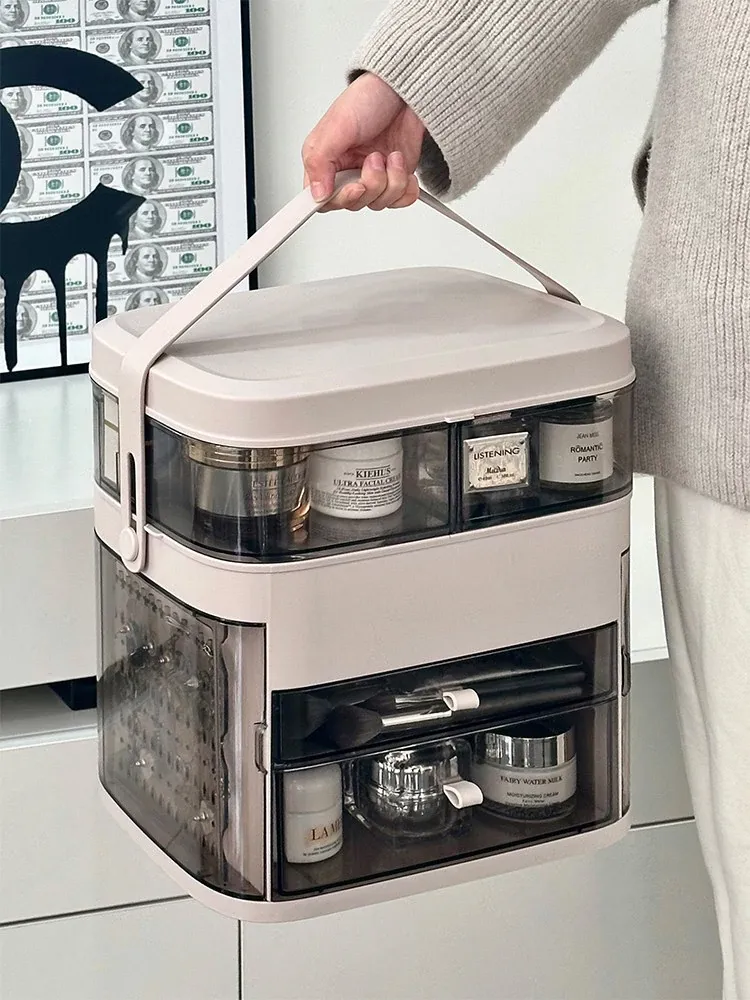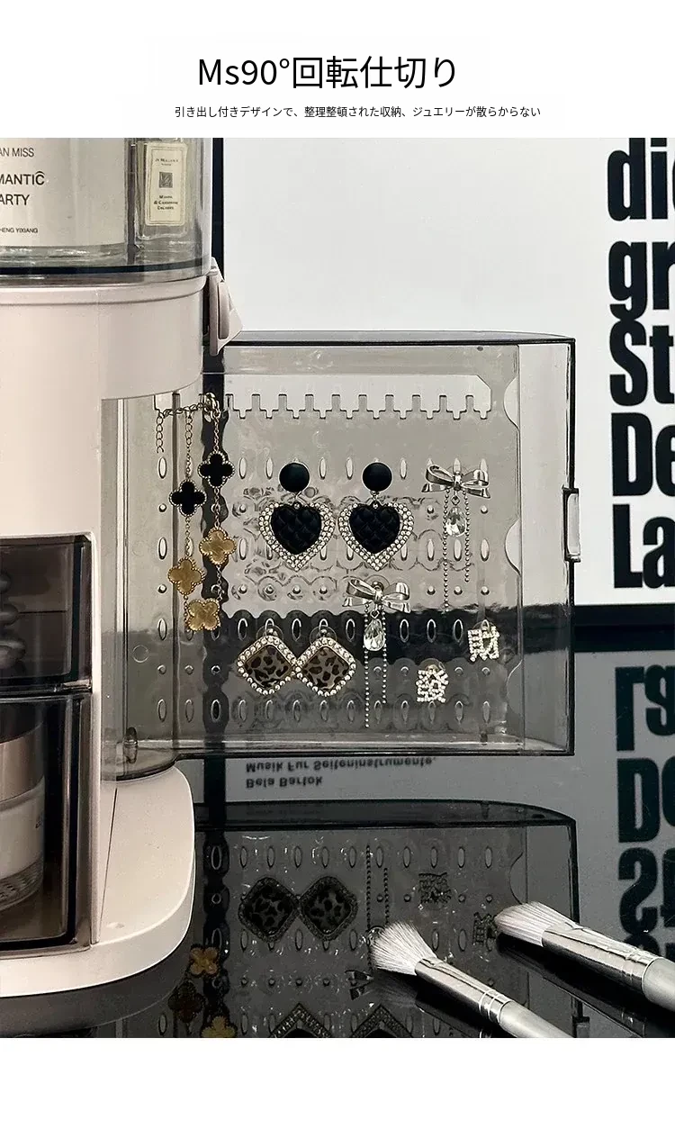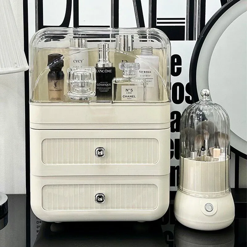 透明三層+ブラシ筒 - 防塵化粧品収納ボックス