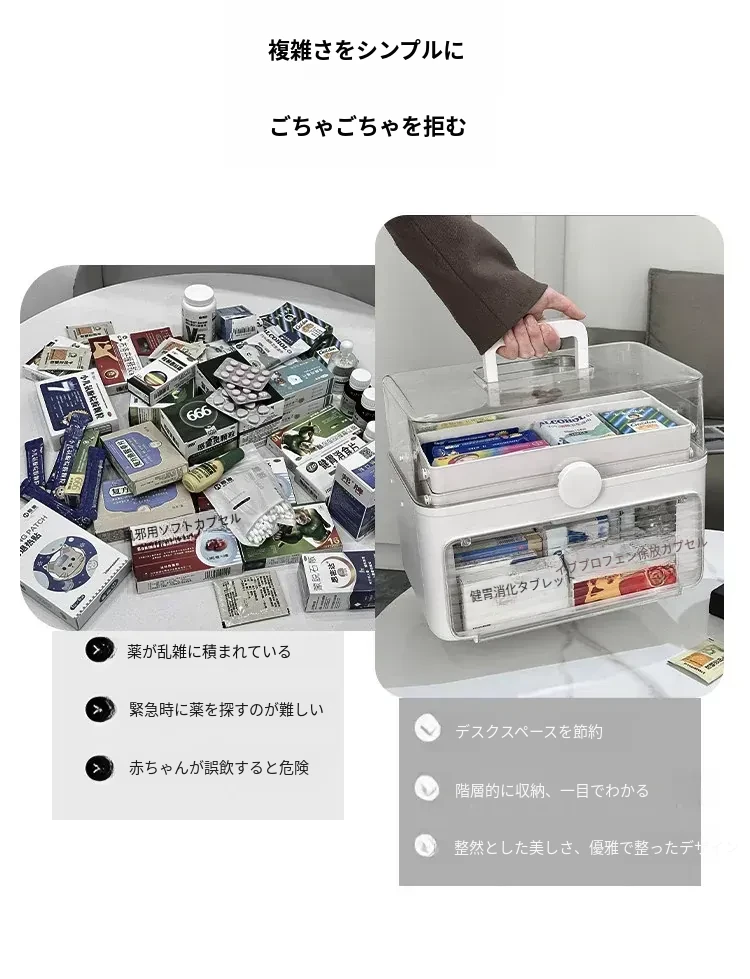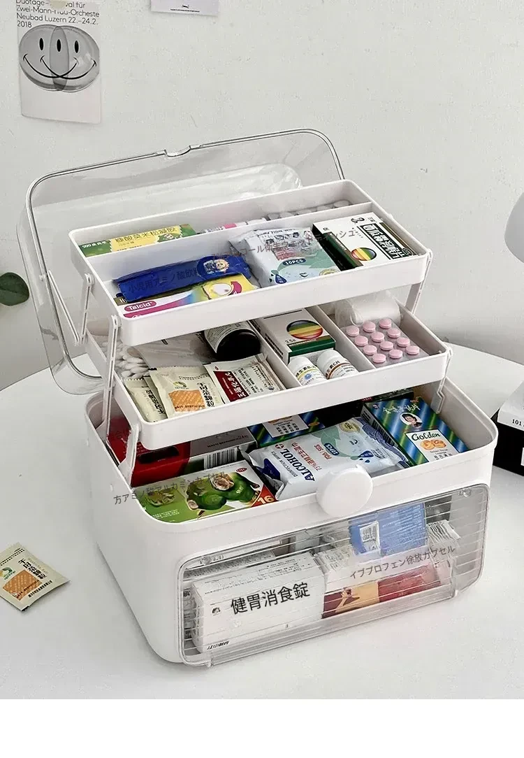 特大号家庭用医薬品収納ボックス|多層大容量で急なトラブルにも安心!整理整頓が簡単な薬箱で、家族の健康を守ります。