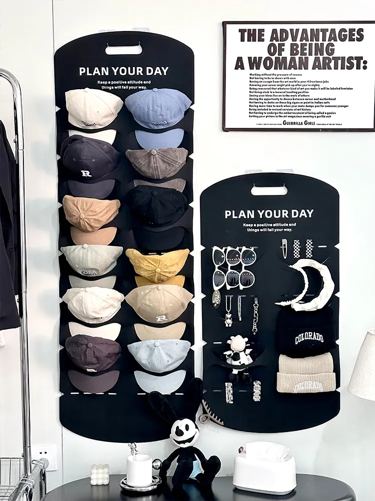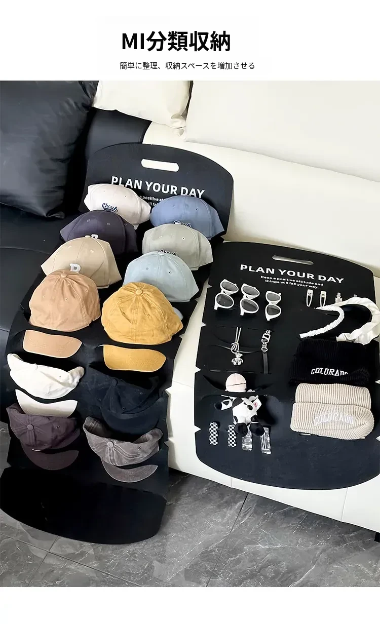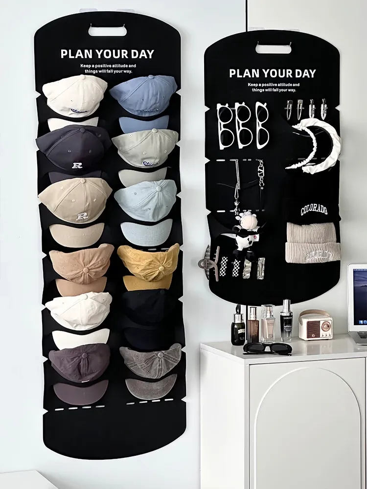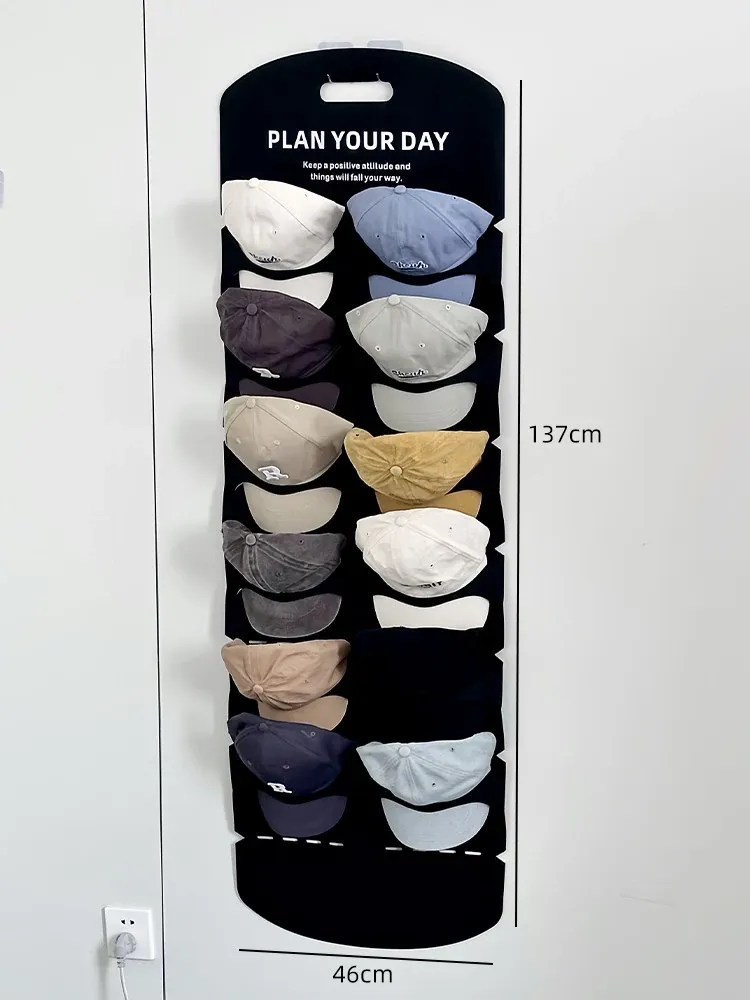 帽子収納の魔法!穴を開けずに使えるクローゼットドア裏の便利なキャップハンガー。ダックビルキャップや野球帽もすっきり整理!学生寮にも最適なフェルト製の帽子ラックで、収納スペースを有効活用!