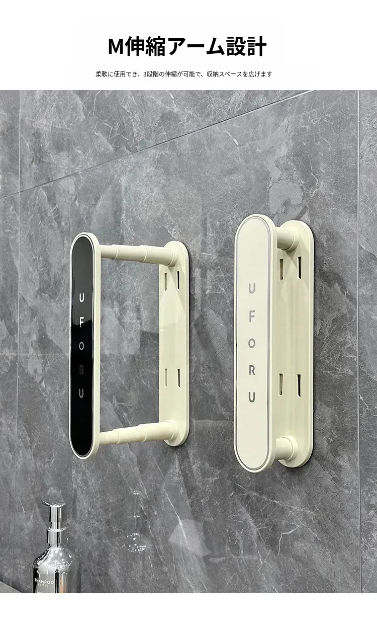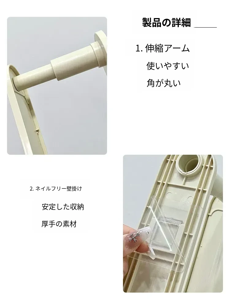 バルコニー用多機能伸縮ハンガー!穴を開けずに壁掛け可能な収納ラック、衣類整理が簡単に!家中どこでも使える便利グッズで、スッキリとした空間を実現します!