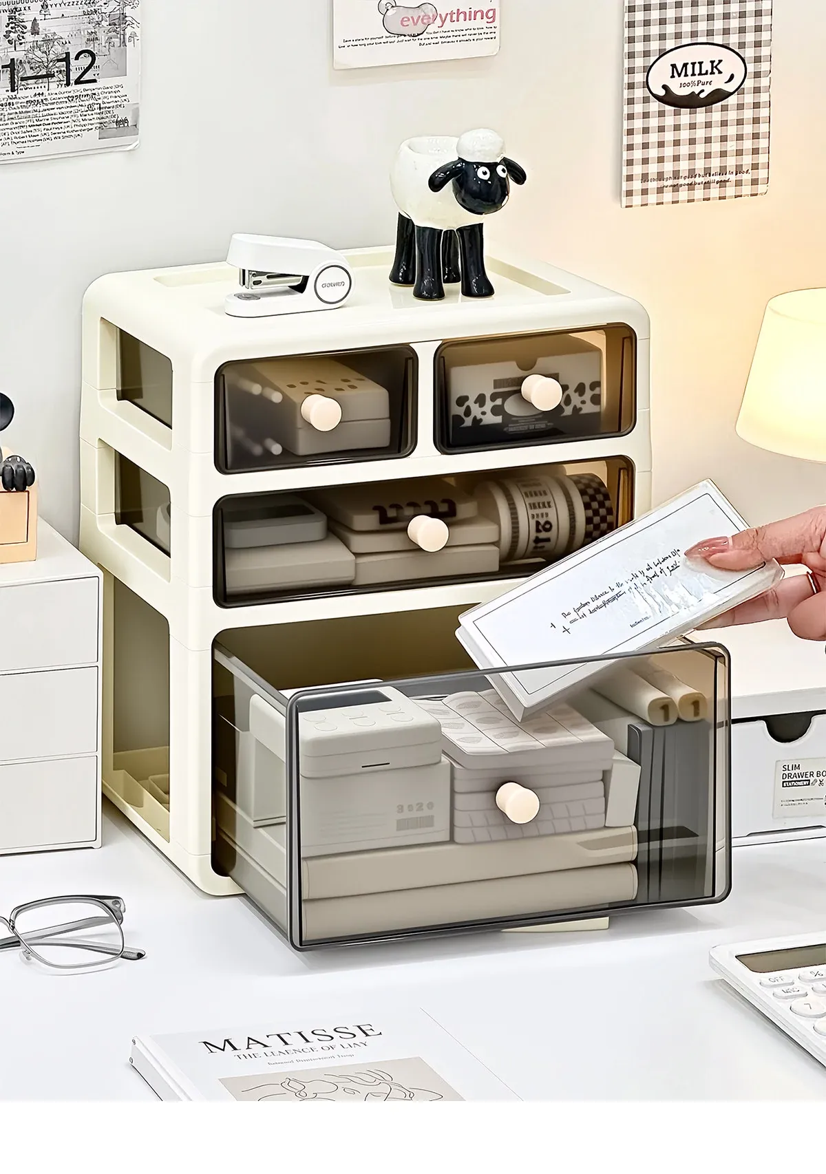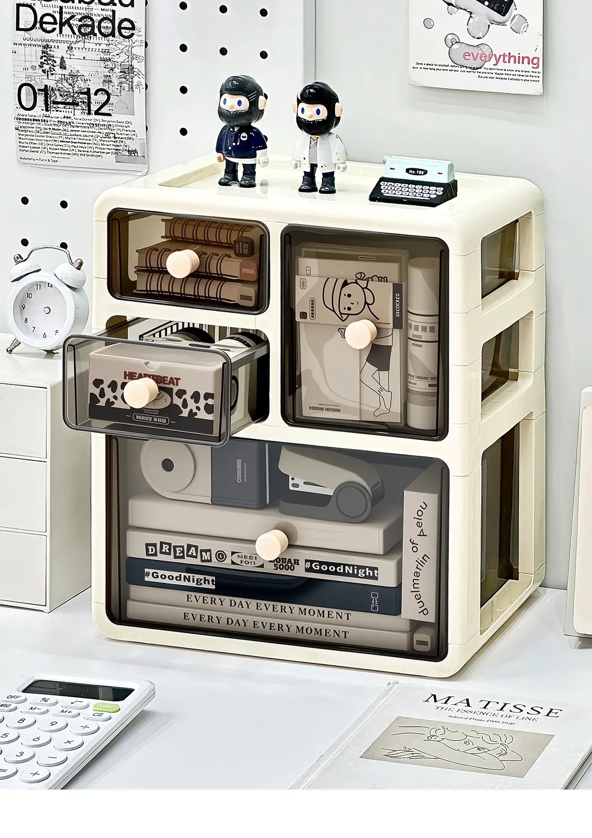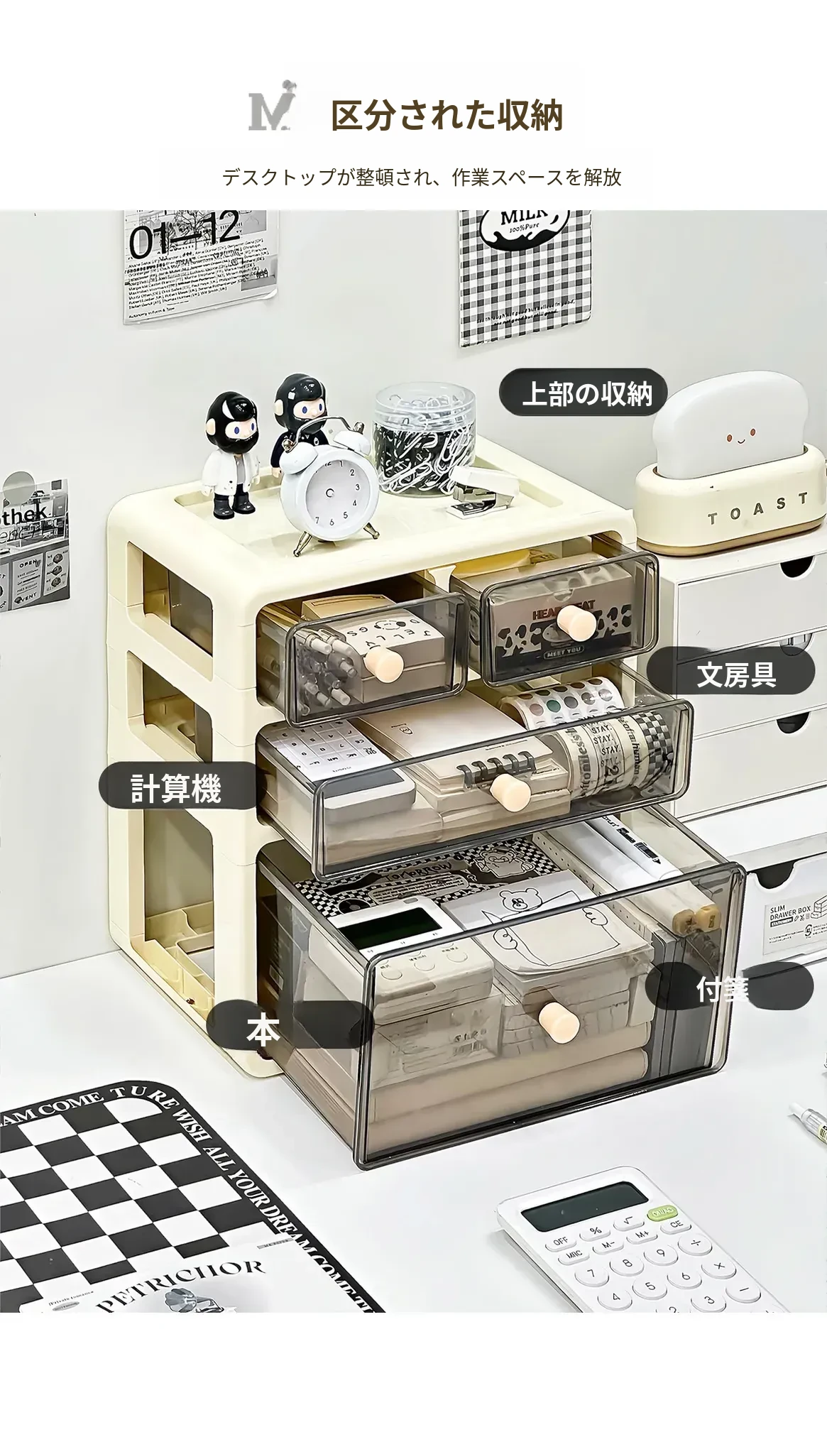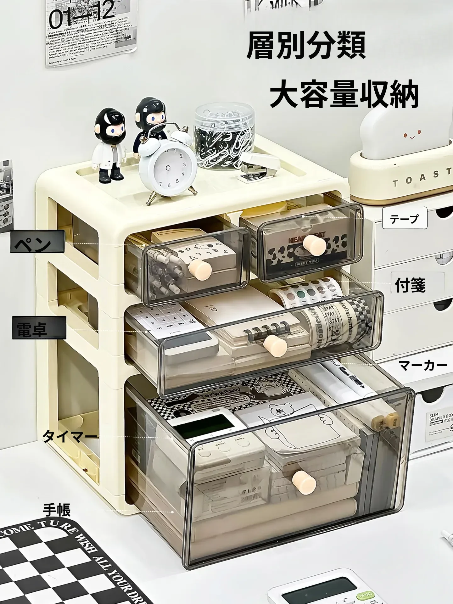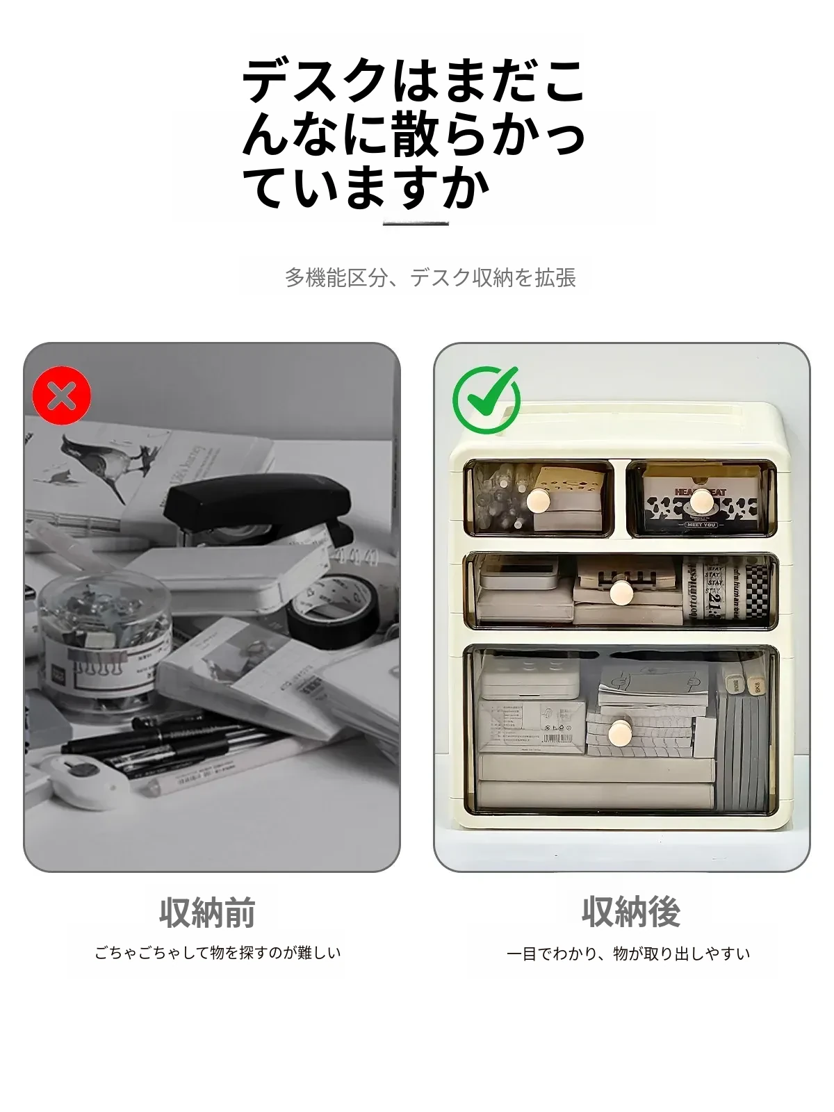 デスク用引き出し式整理ボックス - 文房具や小物をすっきり整理!多層仕切りで使いやすさ抜群の収納ボックス。あなたの作業スペースを美しく整え、効率的に!
