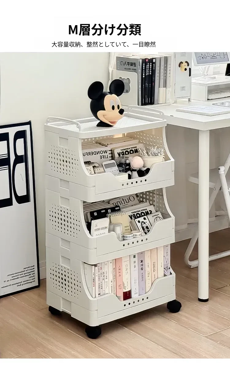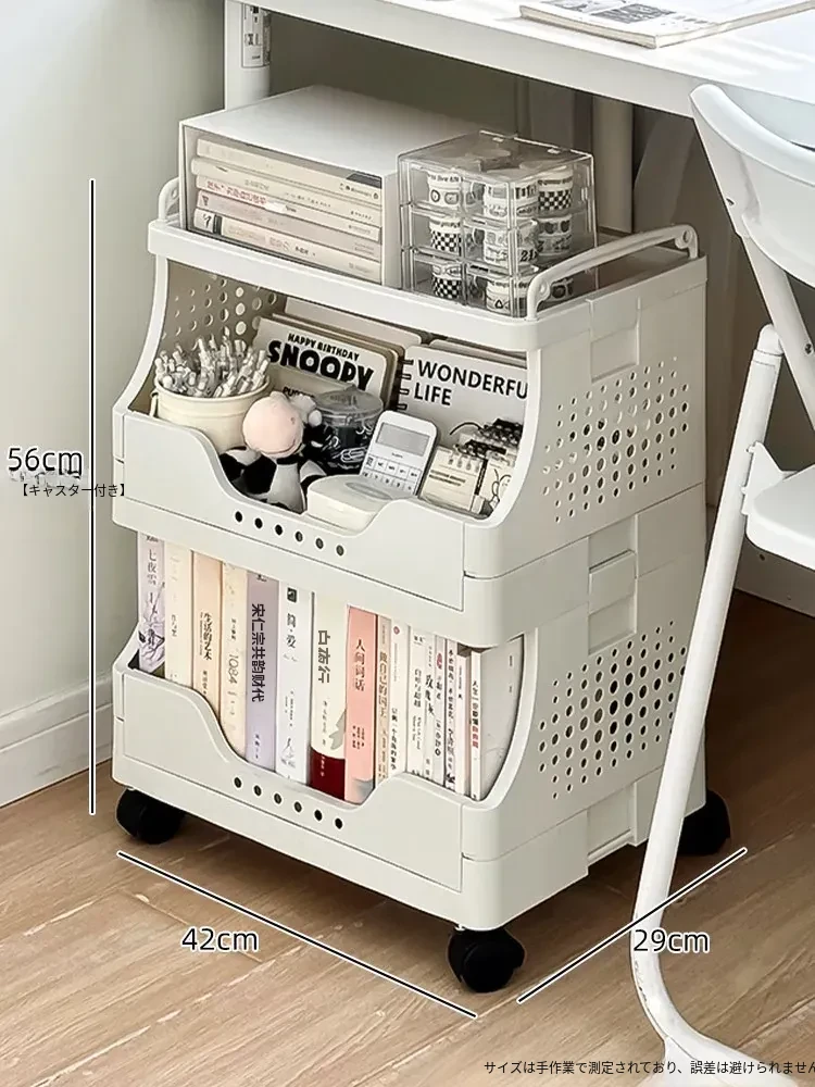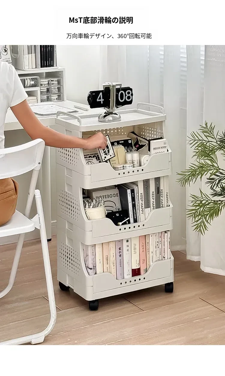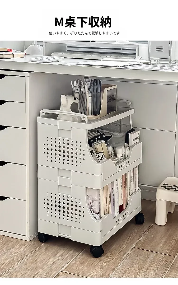 オフィスデスク下収納ラック|多段式キャスター付き移動可能な小型ワゴン|バッグや小物をすっきり整理!作業スペースを有効活用する便利アイテム!