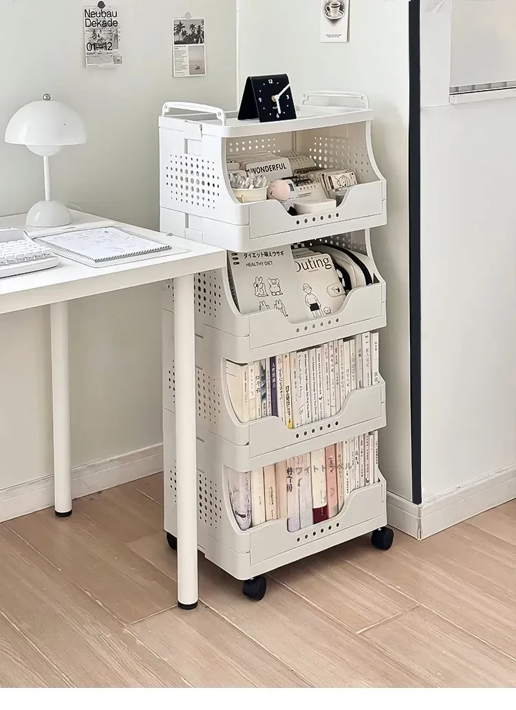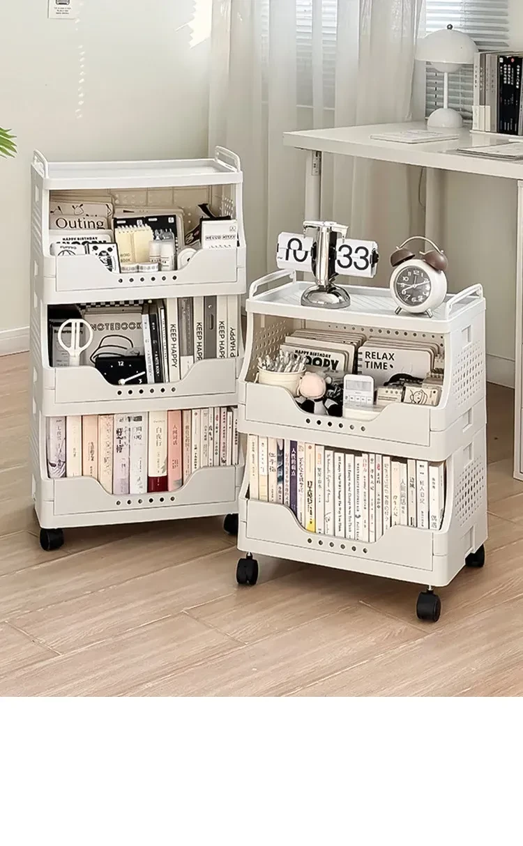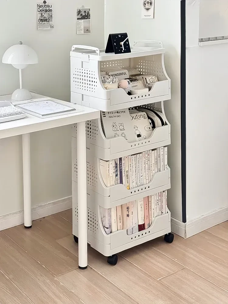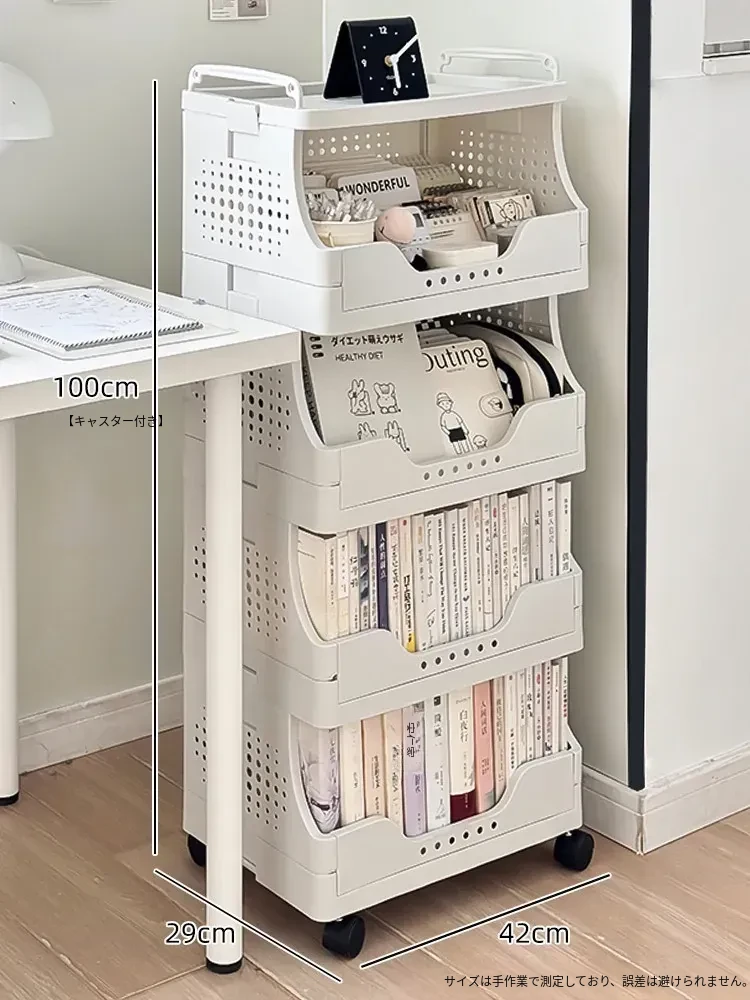 オフィスデスク下収納ラック|多段式キャスター付き移動可能な小型ワゴン|バッグや小物をすっきり整理!作業スペースを有効活用する便利アイテム!