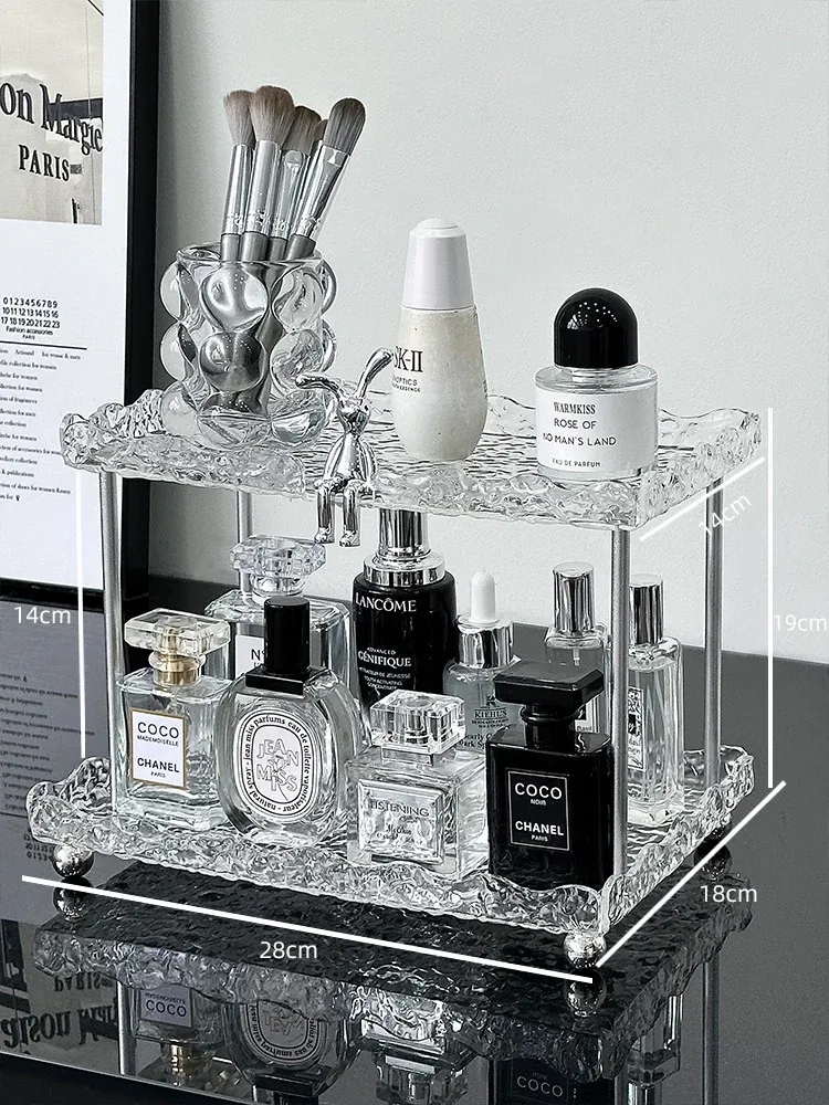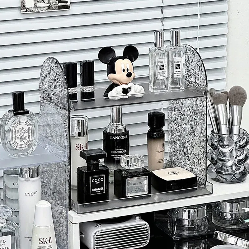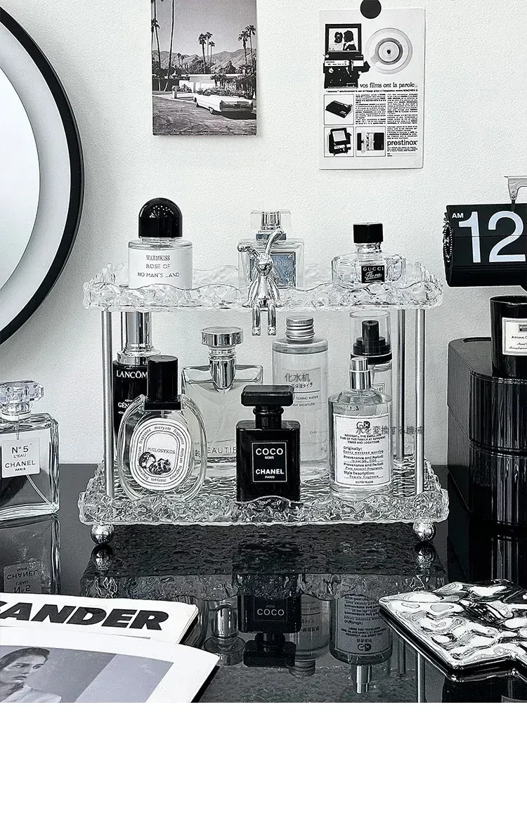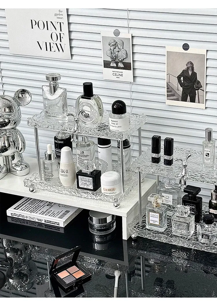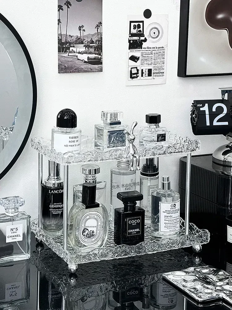 透明アクリル製メイクアップ収納ラック - 化粧品・スキンケア・香水を美しく整理!デスク上のスペースを有効活用し、あなたのビューティーアイテムをスタイリッシュにディスプレイします。多層設計で使いやすさ抜群!