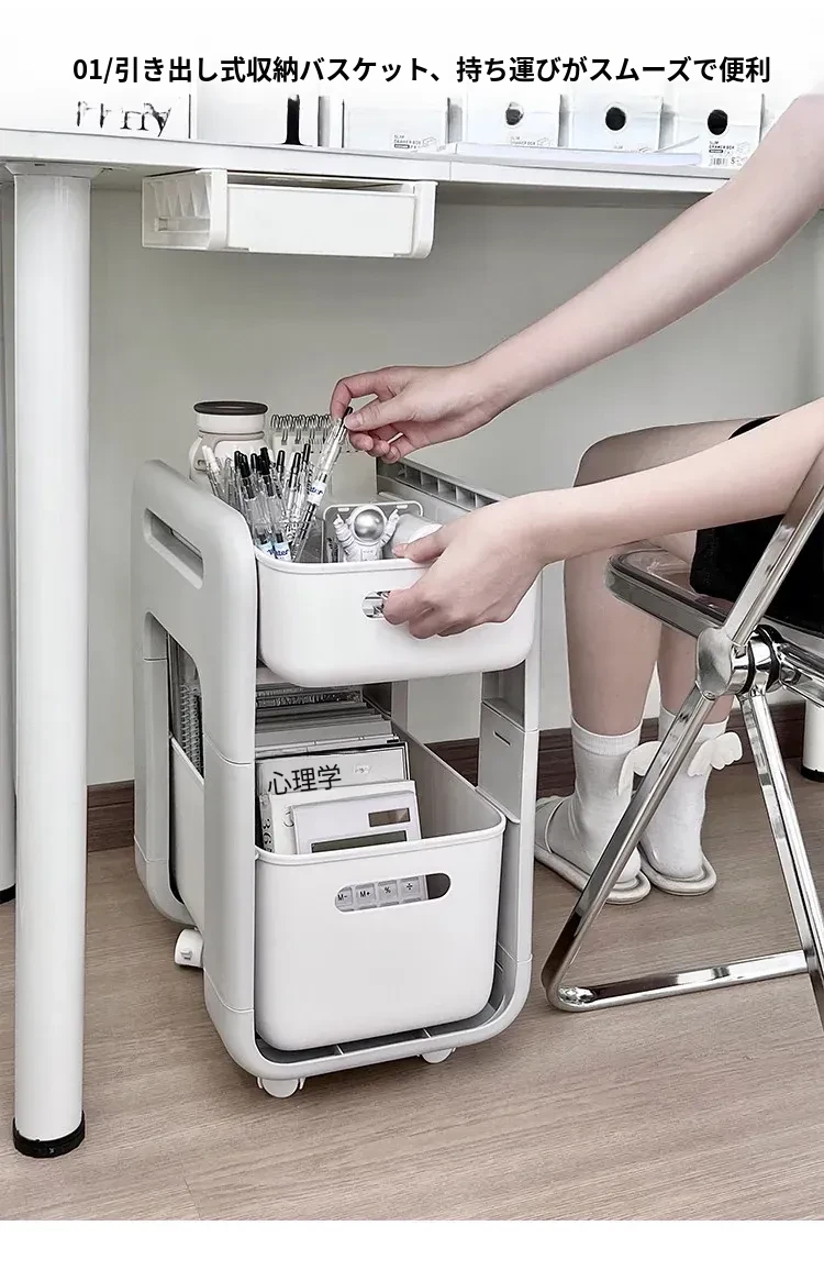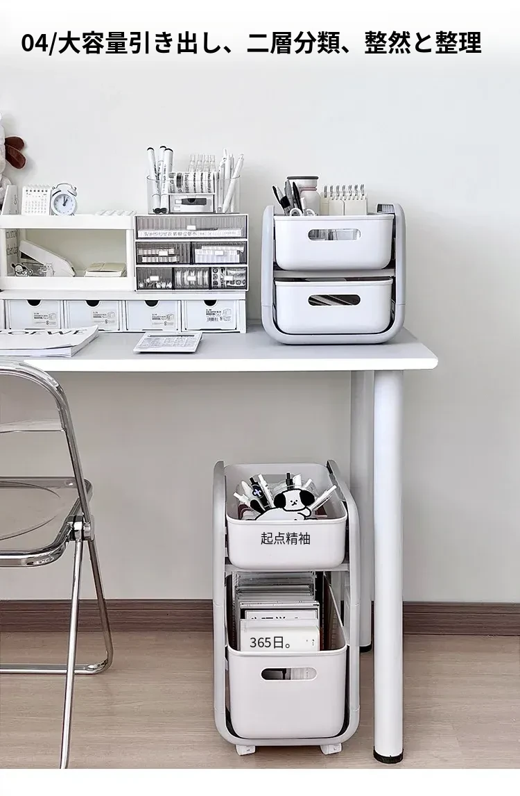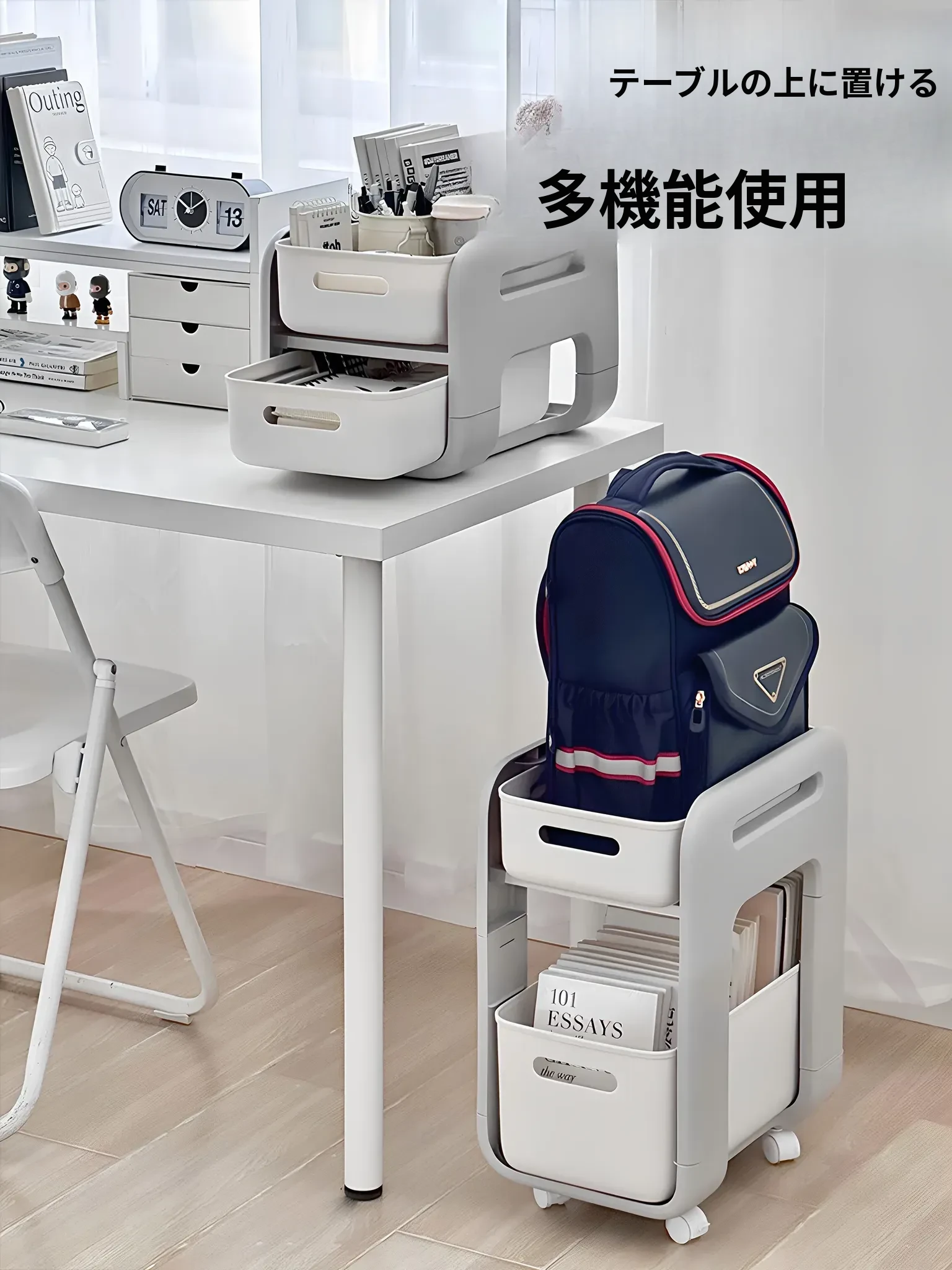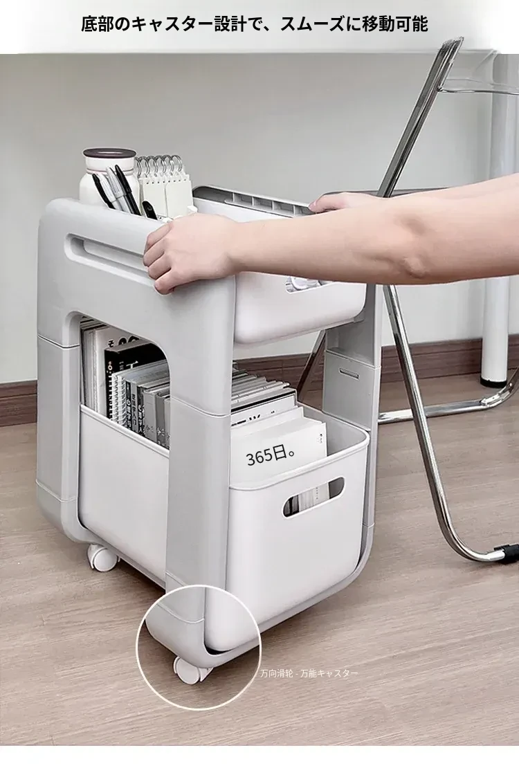 デスク下移動式収納カート - 宿舎やオフィスに最適!荷物や本をスッキリ整理できる便利アイテム。デスク周りをスッキリさせ、作業効率をアップ!