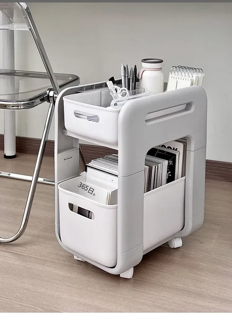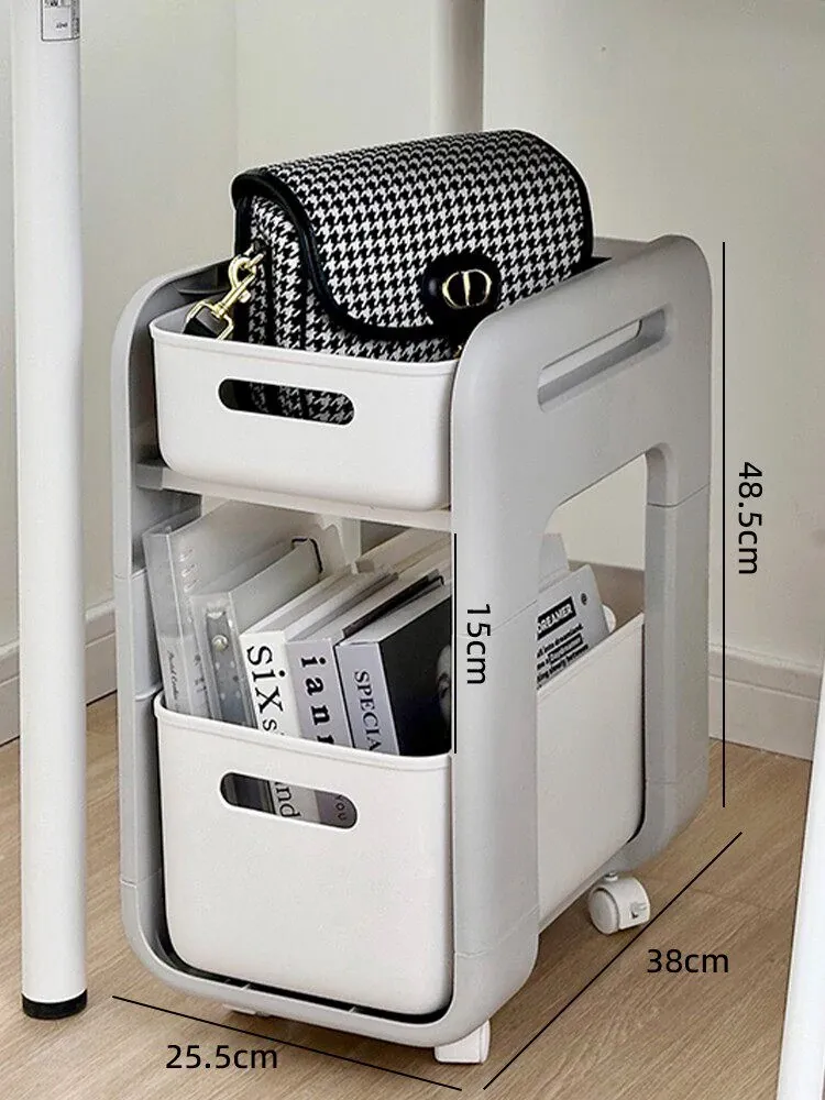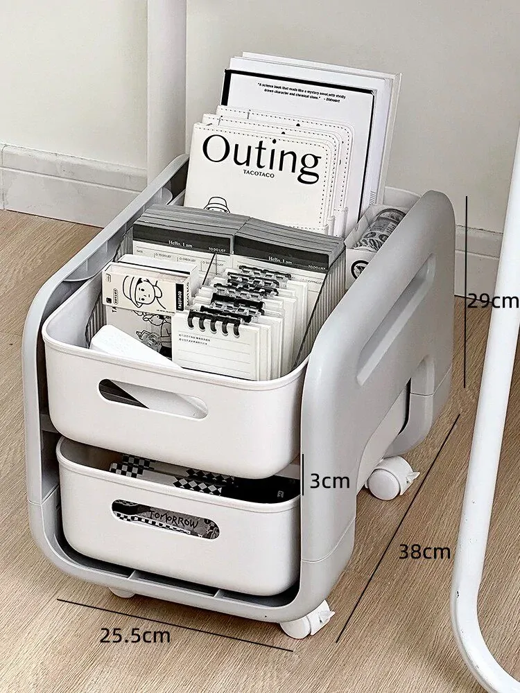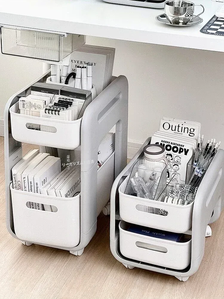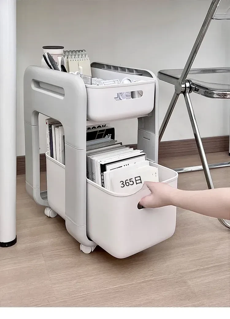 デスク下移動式収納カート - 宿舎やオフィスに最適!荷物や本をスッキリ整理できる便利アイテム。デスク周りをスッキリさせ、作業効率をアップ!